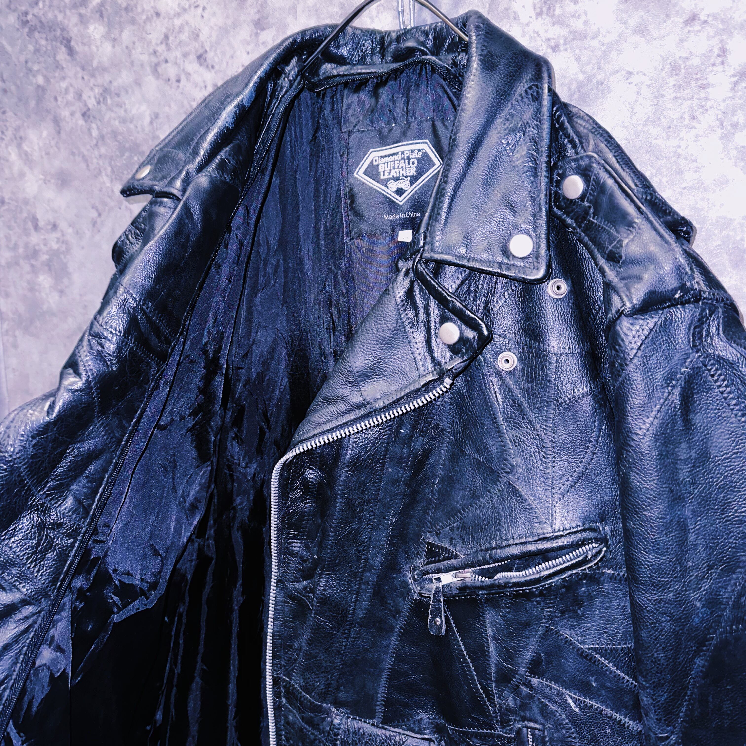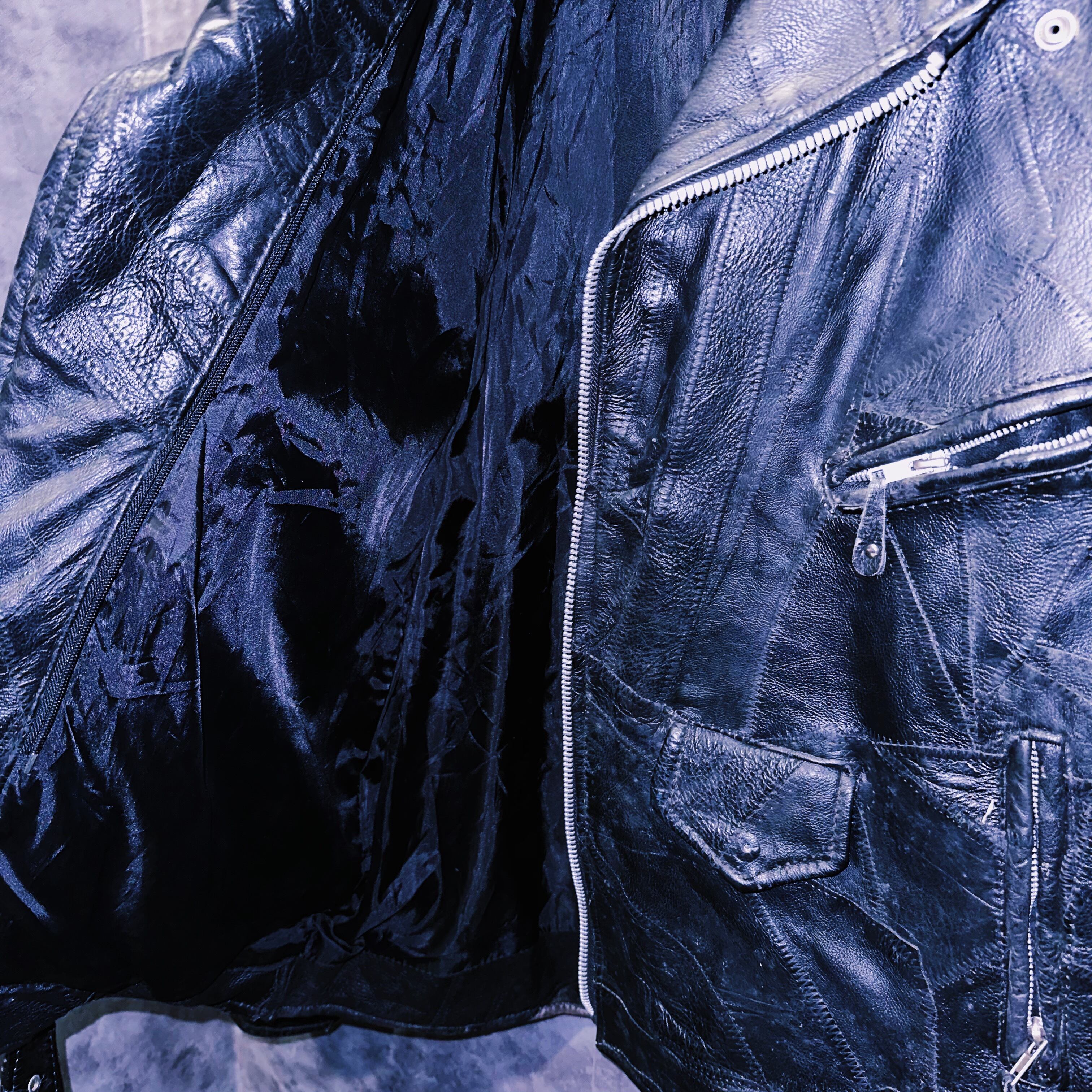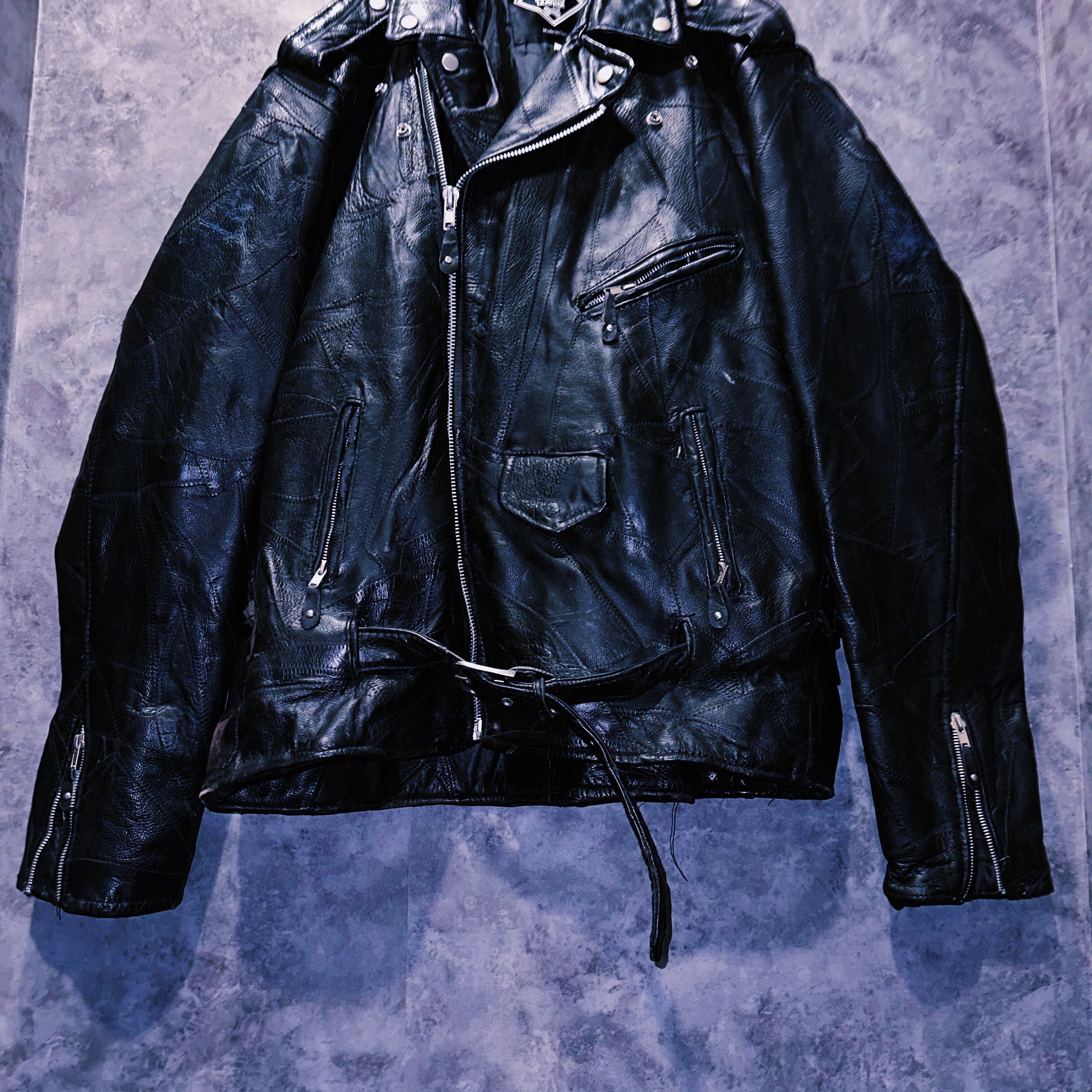 型押しでツギハギのようなトータルステッチデザインが採用されており、2XLというUSヴィンテージの特徴的なオーバーサイズシルエット。近年オーバーサイズが流行の中ここまでルーズでオーバーなシルエットのライダース他にない唯一無二のシルエット感。