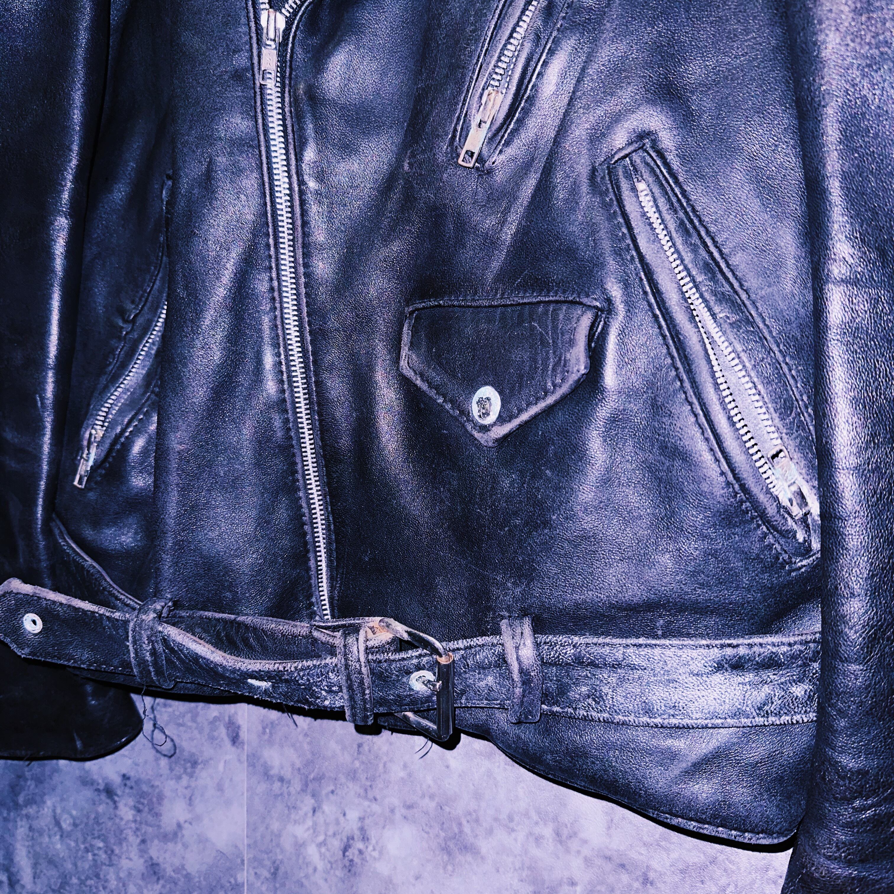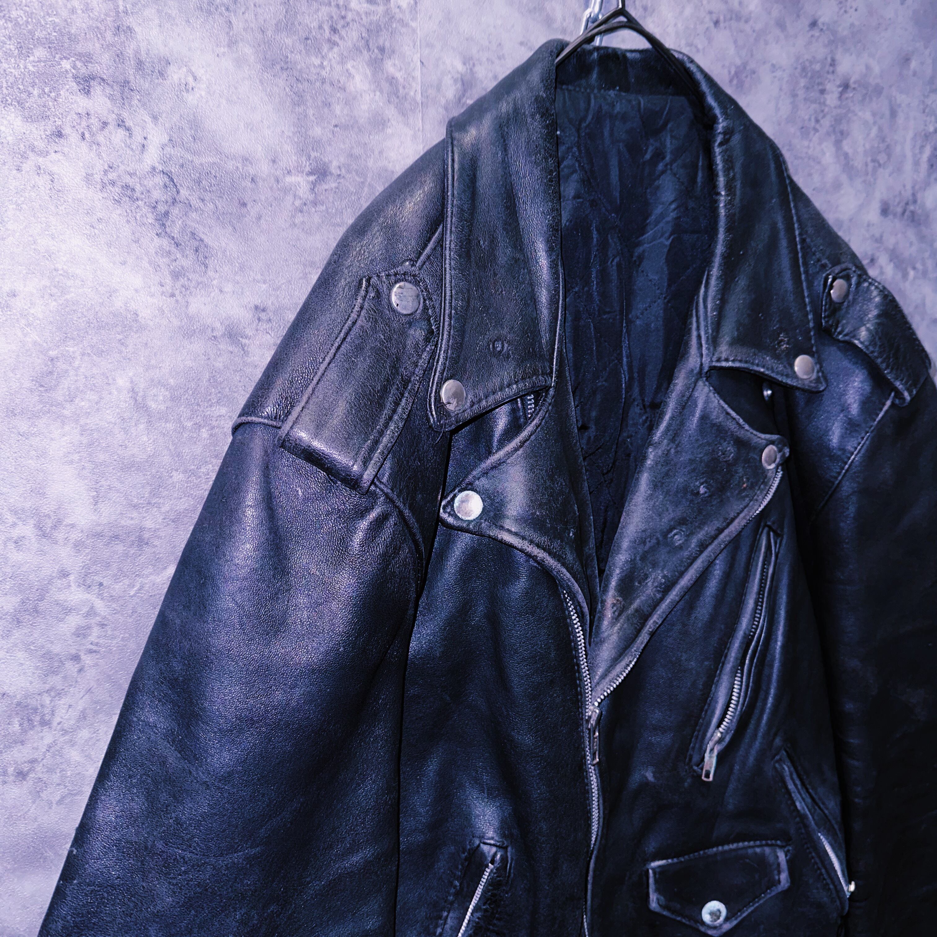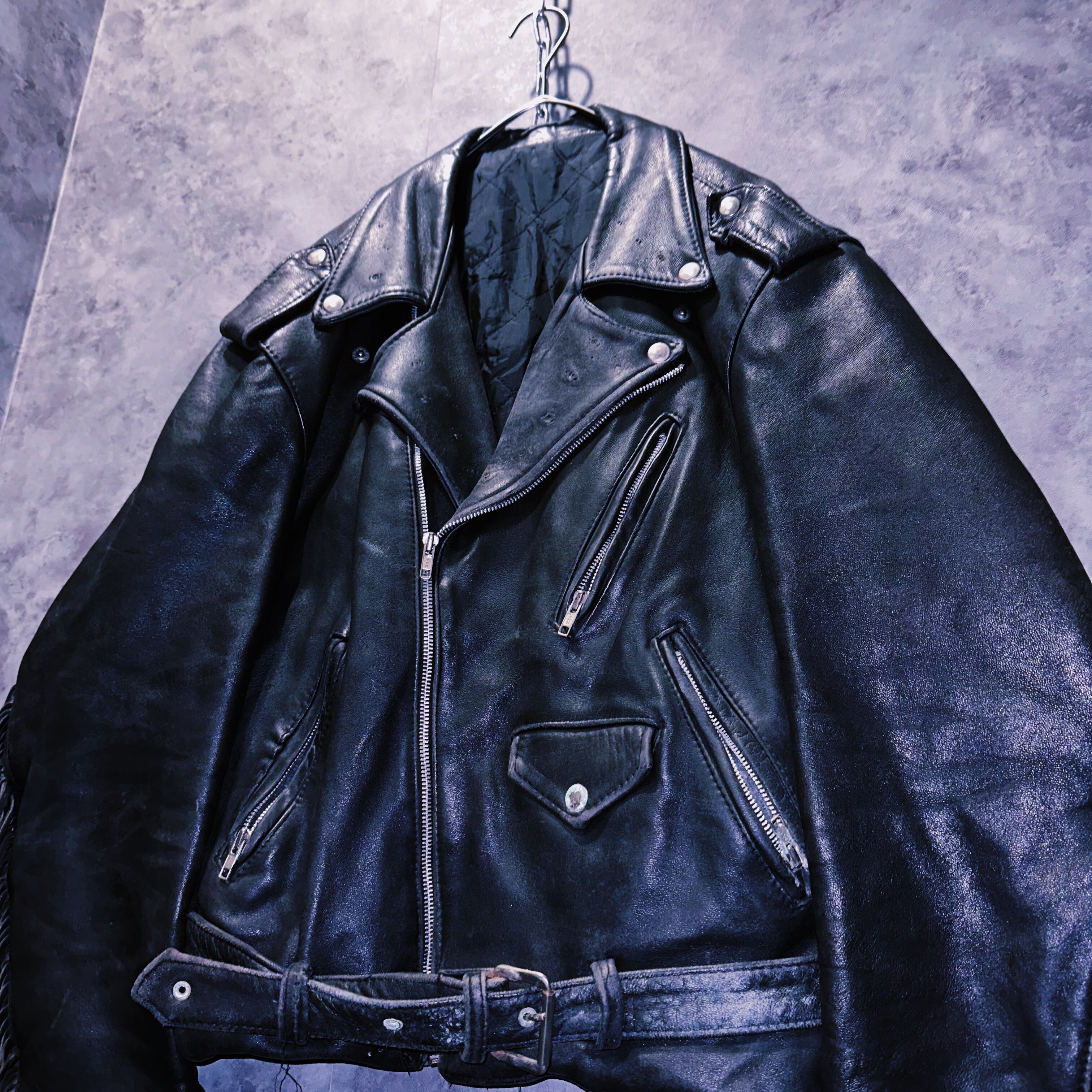 こてこての"ヴィンテージ"の風合いたっぷりのボディにフロントにはライダースらしいシルバージップデザインやフラップポケット、エポーレットが付属しており圧巻…