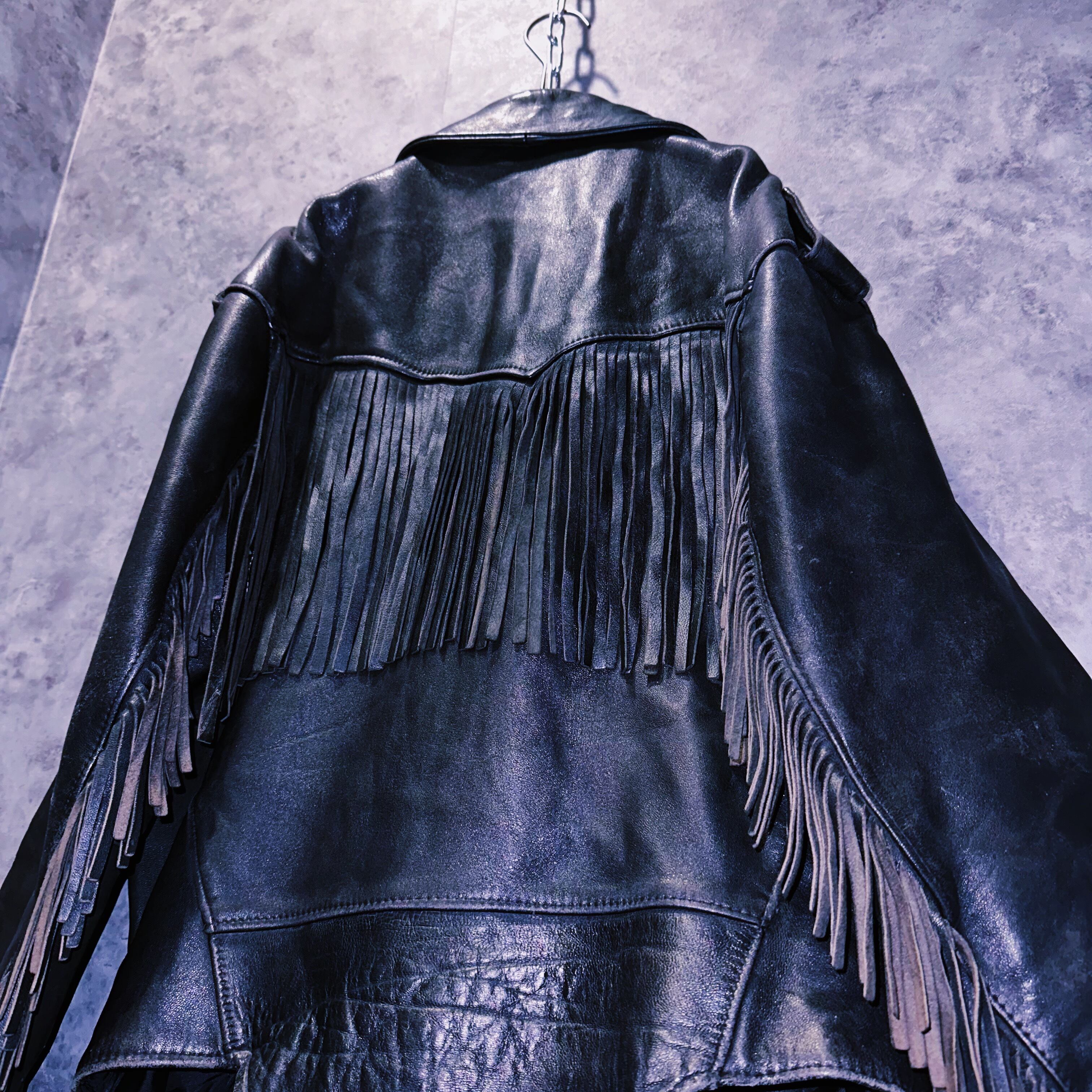 張りとコシがあり、レザー特有の光沢感を放つ上質な牛革を採用した、フリンジにカスタムされたライダースジャケット。状態や細かいディティールの作り込み等含めAyneが今冬力を入れているレザーの中でもかなりの逸品。
