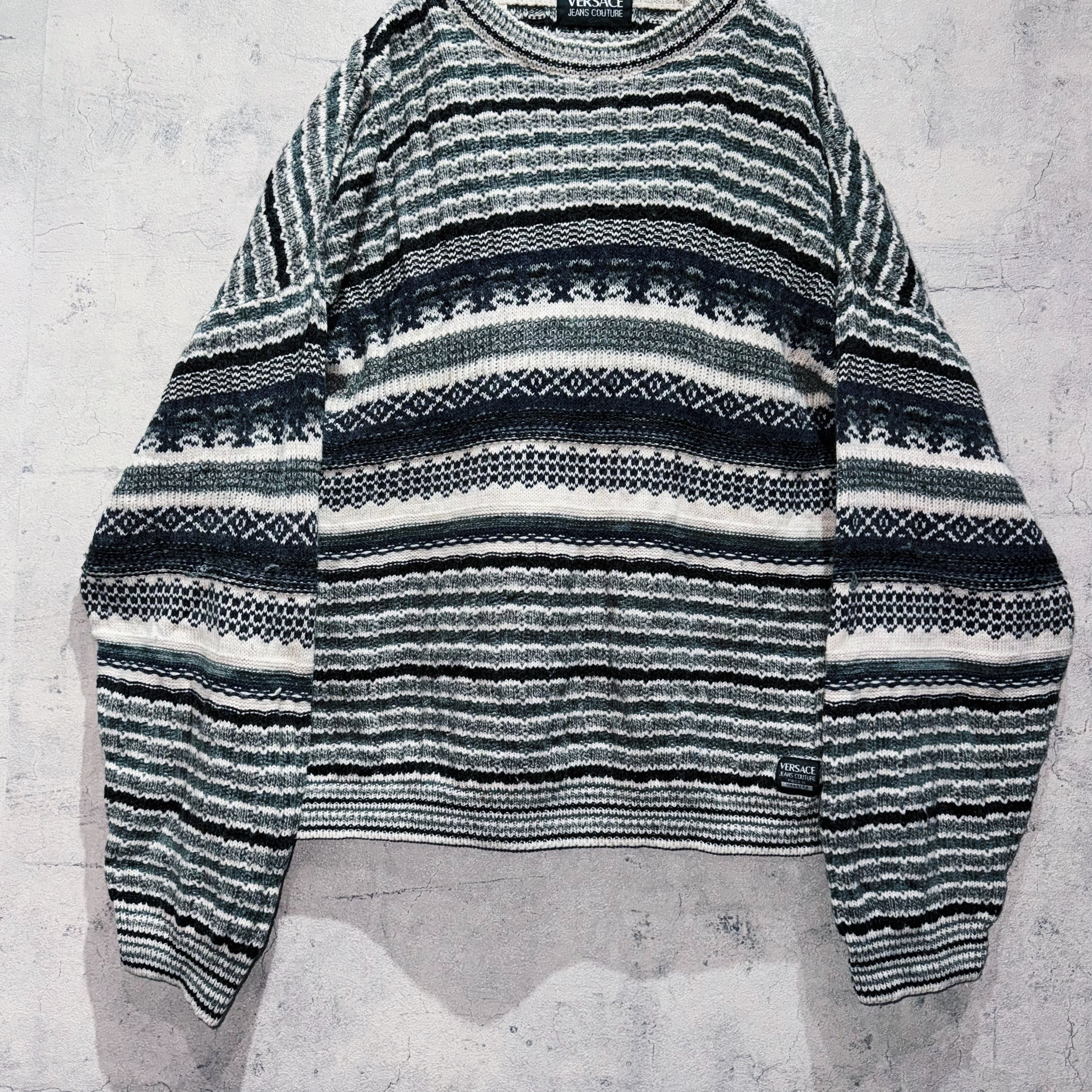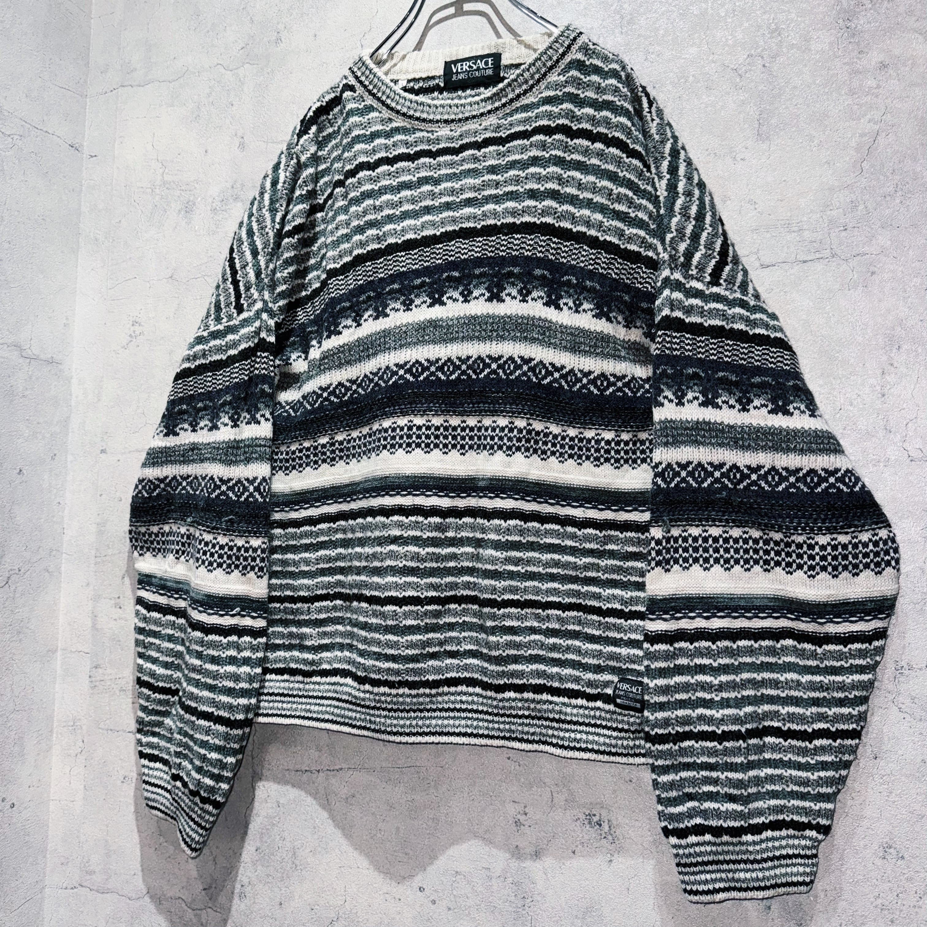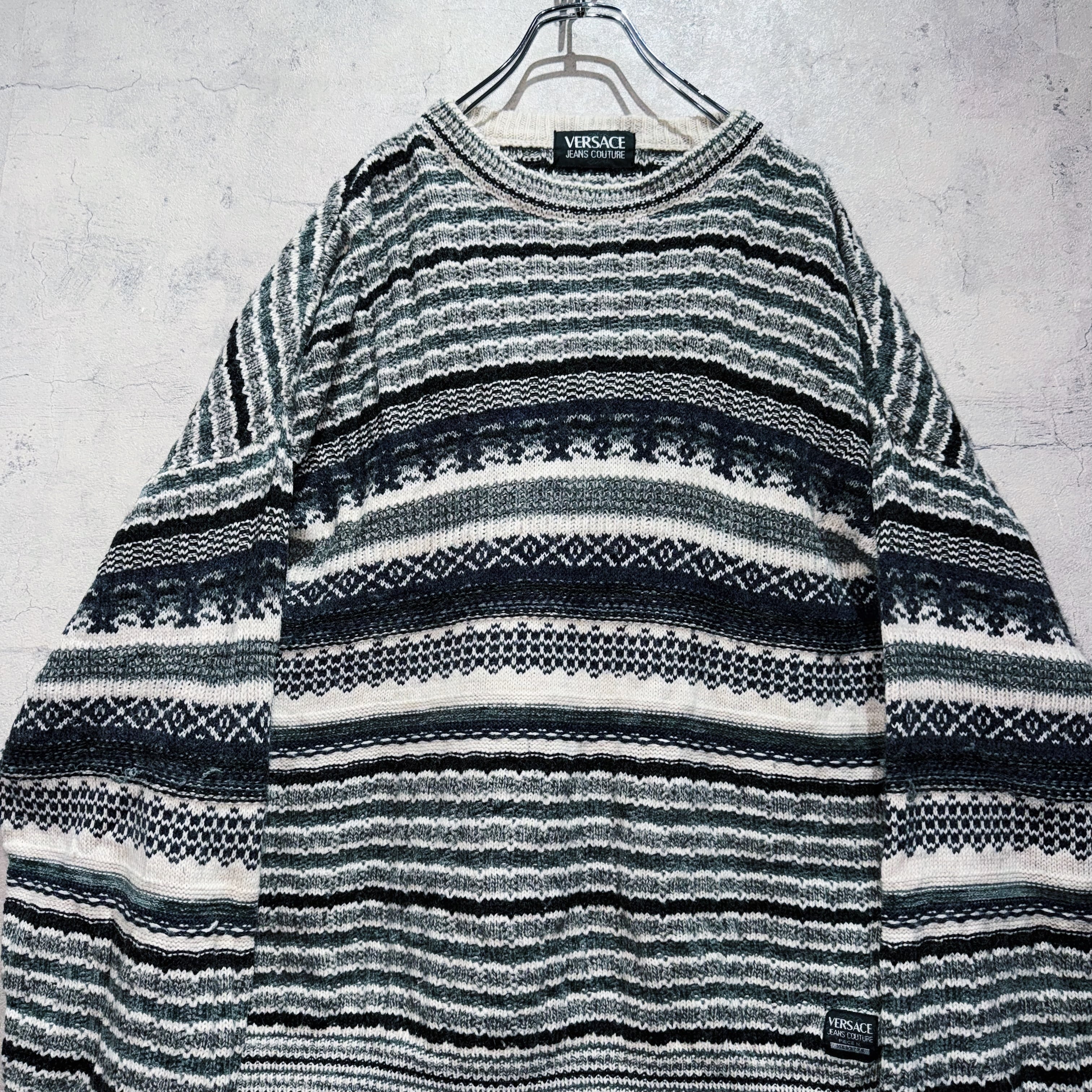 ”ヴェルサーチ”エスニックオールオーバーパターンデザインプルオーバーニット