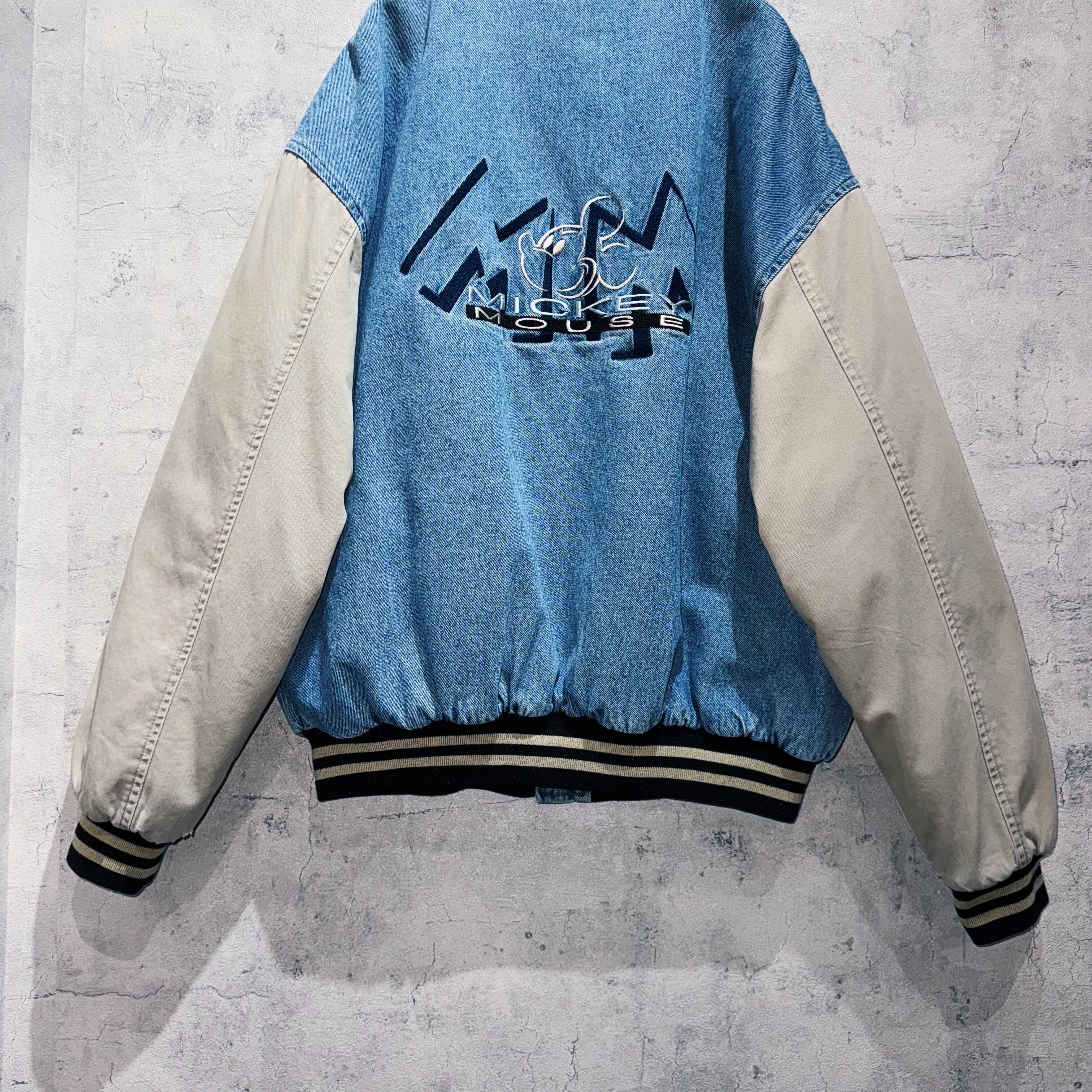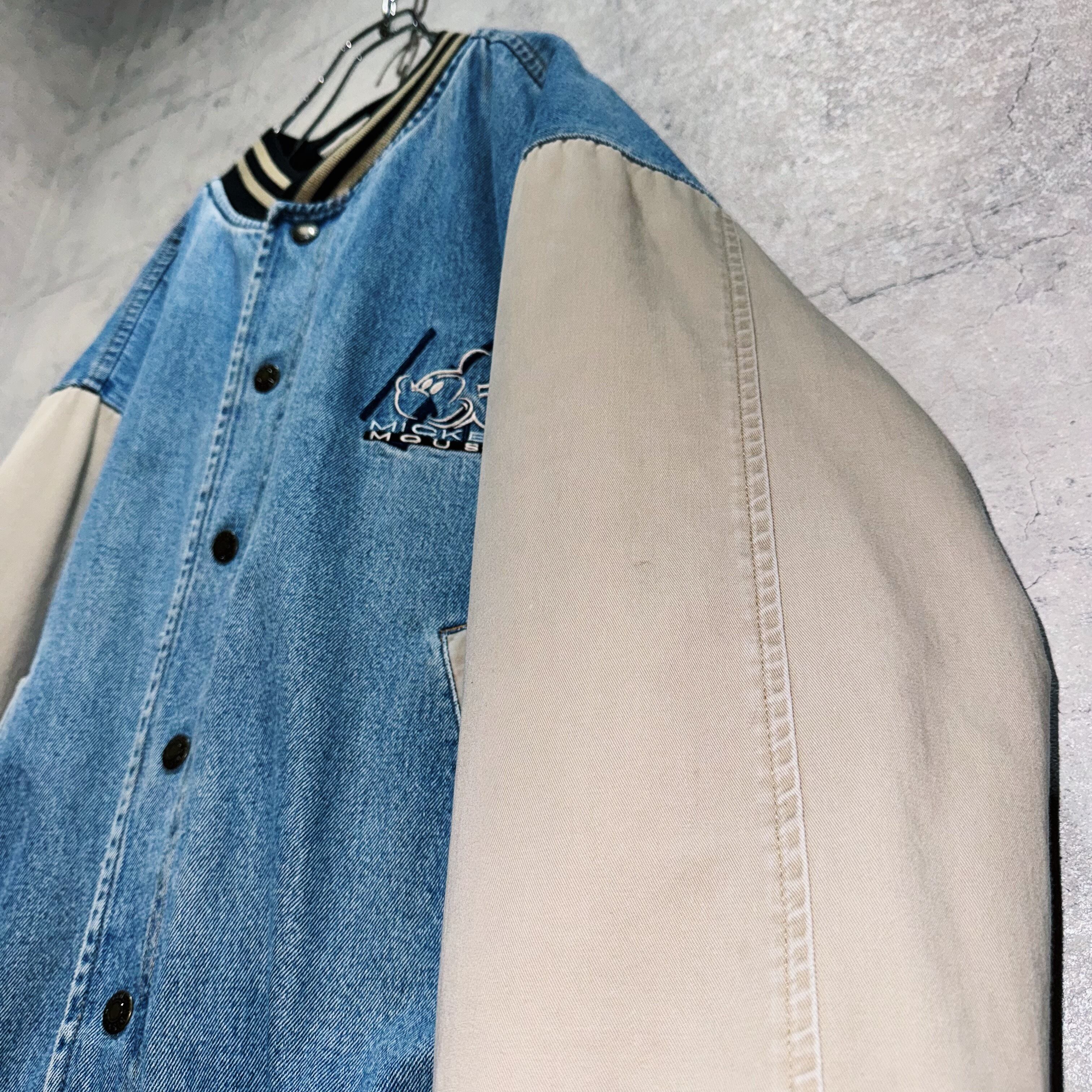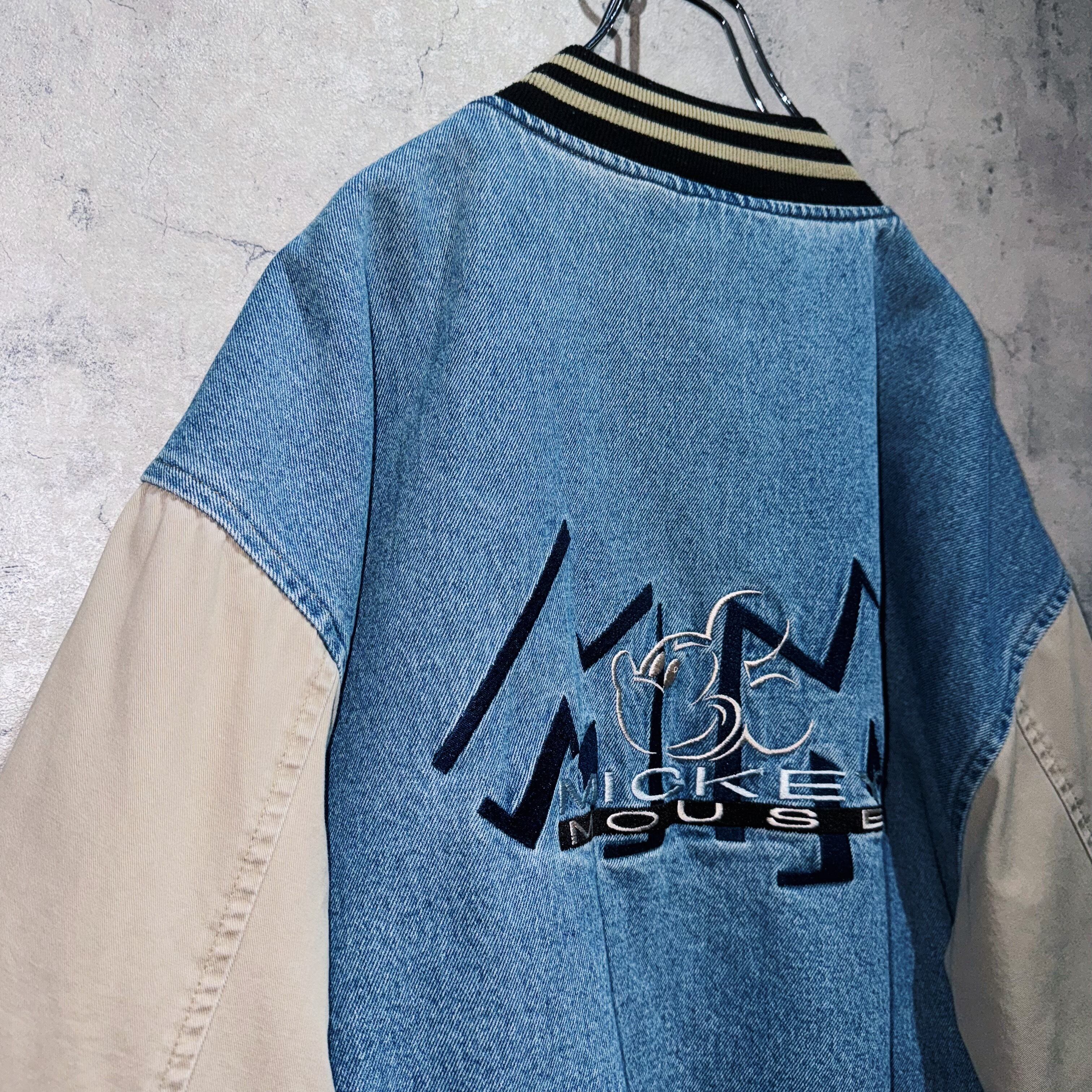 00年代”ディズニー”ミッキーマウスエンブロイダリーデニムヴァーシティジャケット