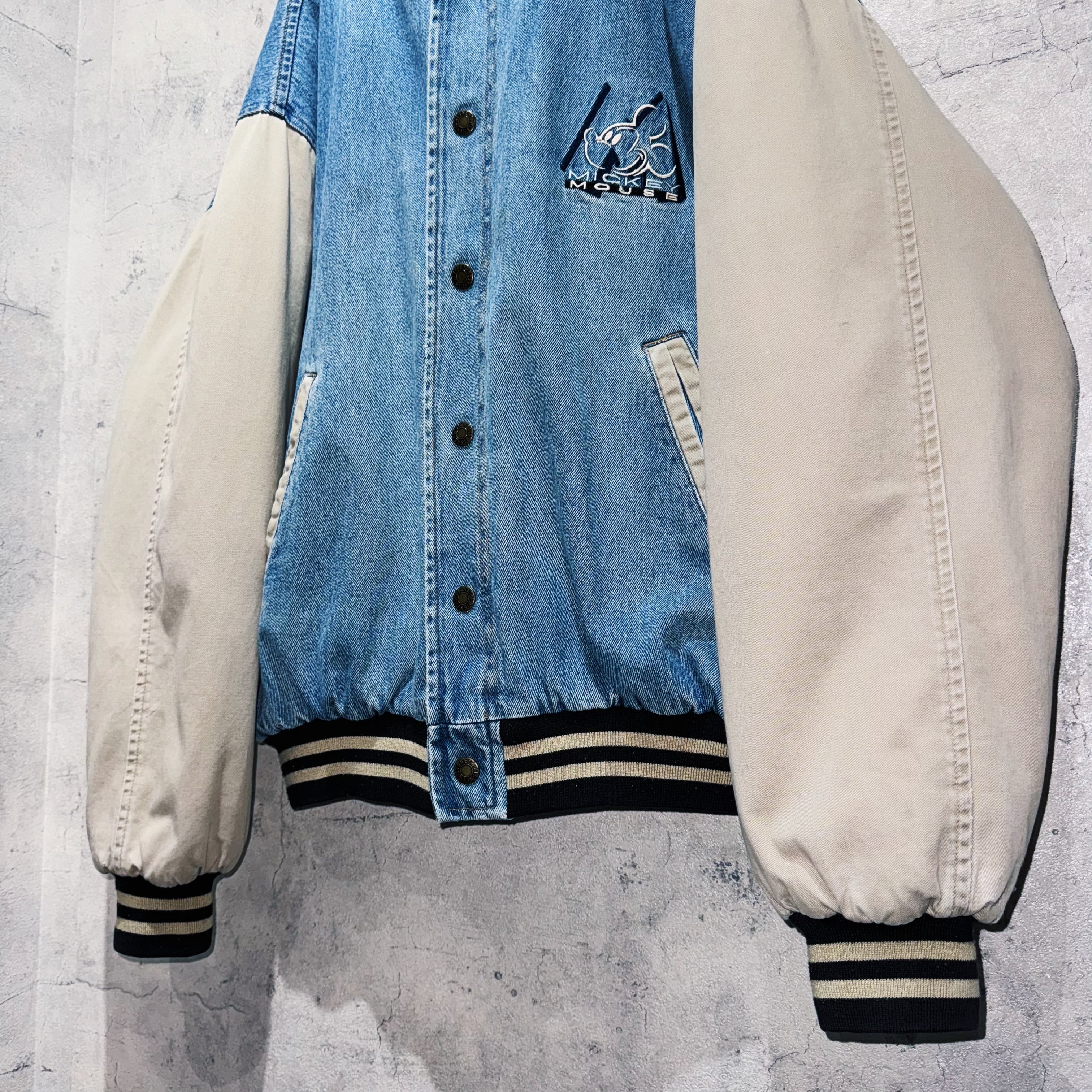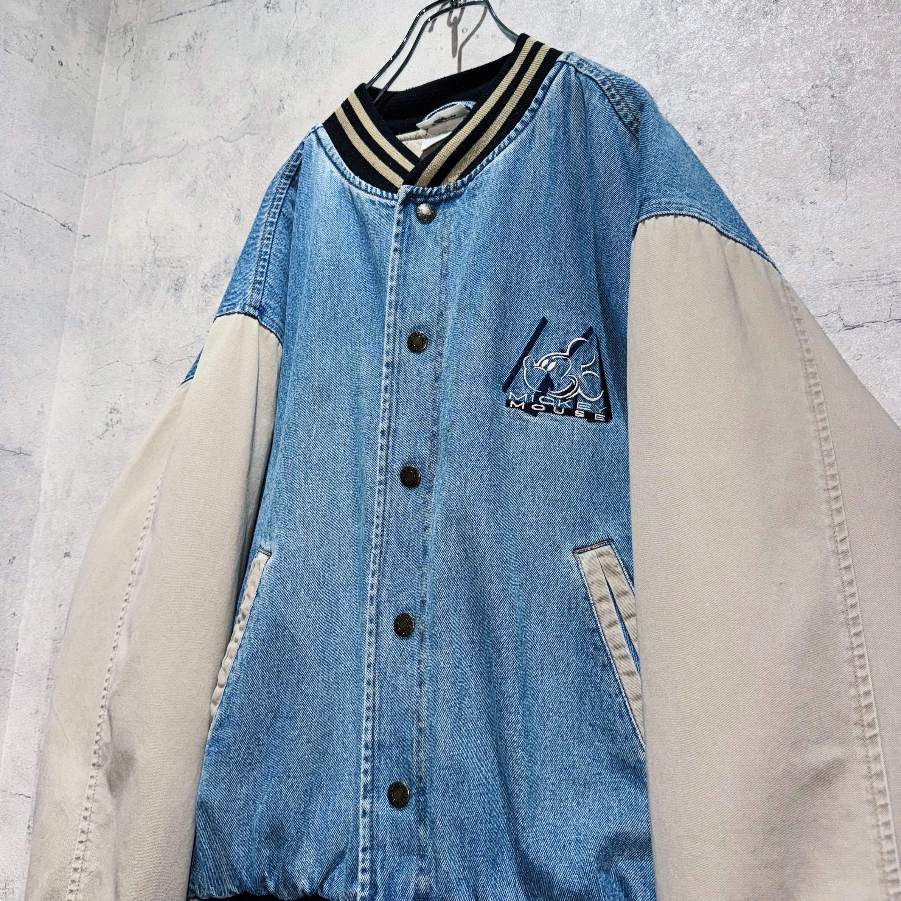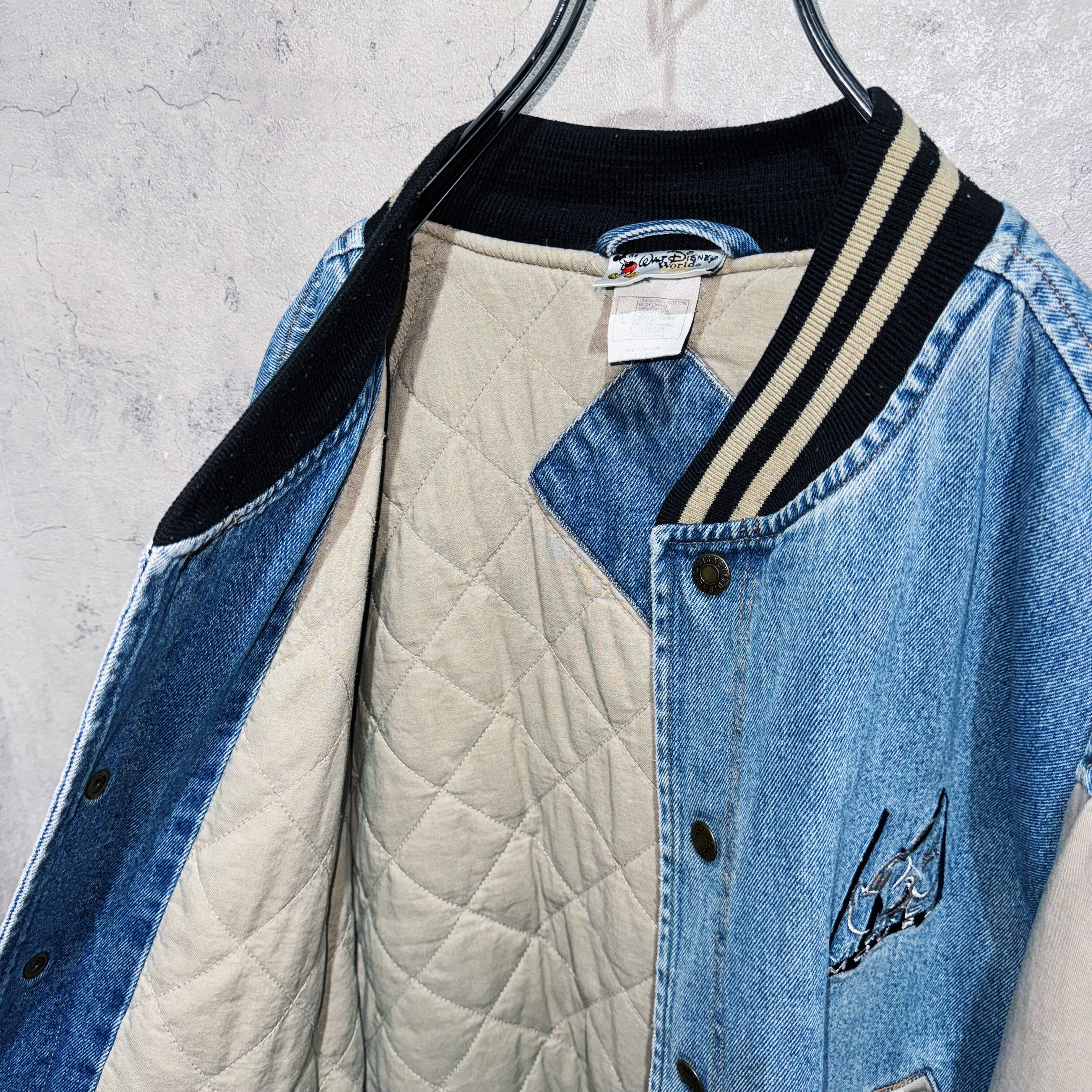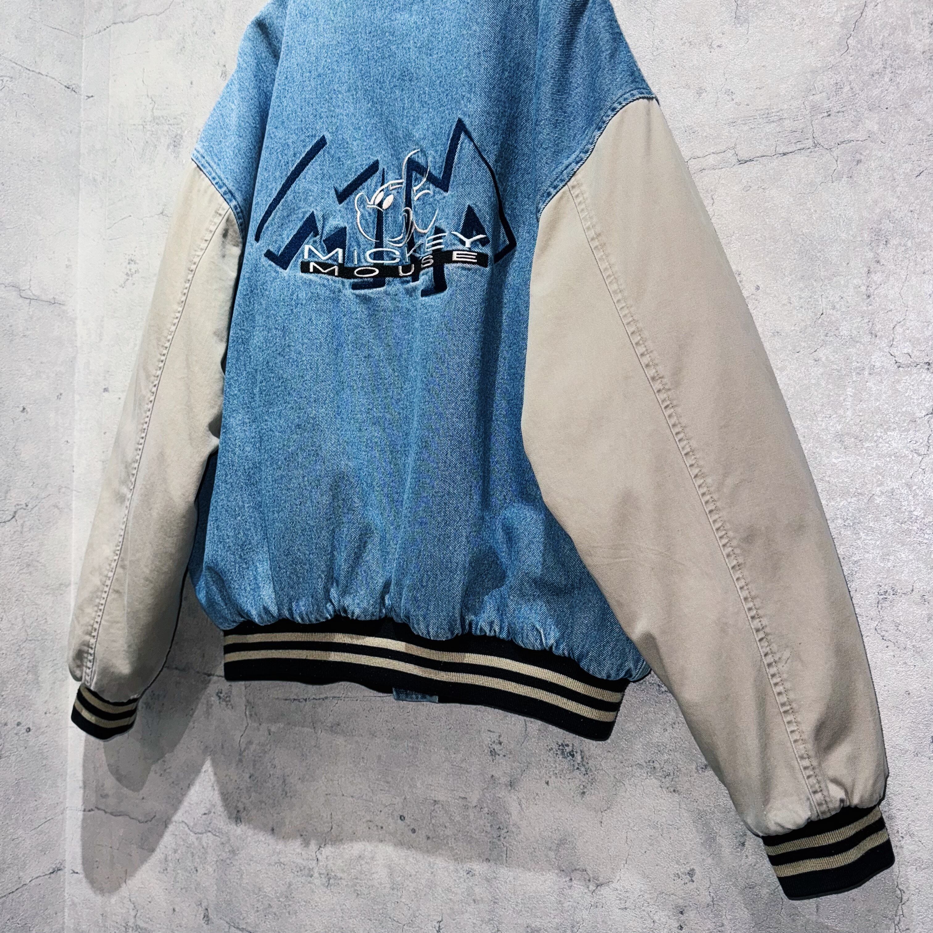 00年代”ディズニー”ミッキーマウスエンブロイダリーデニムヴァーシティジャケット