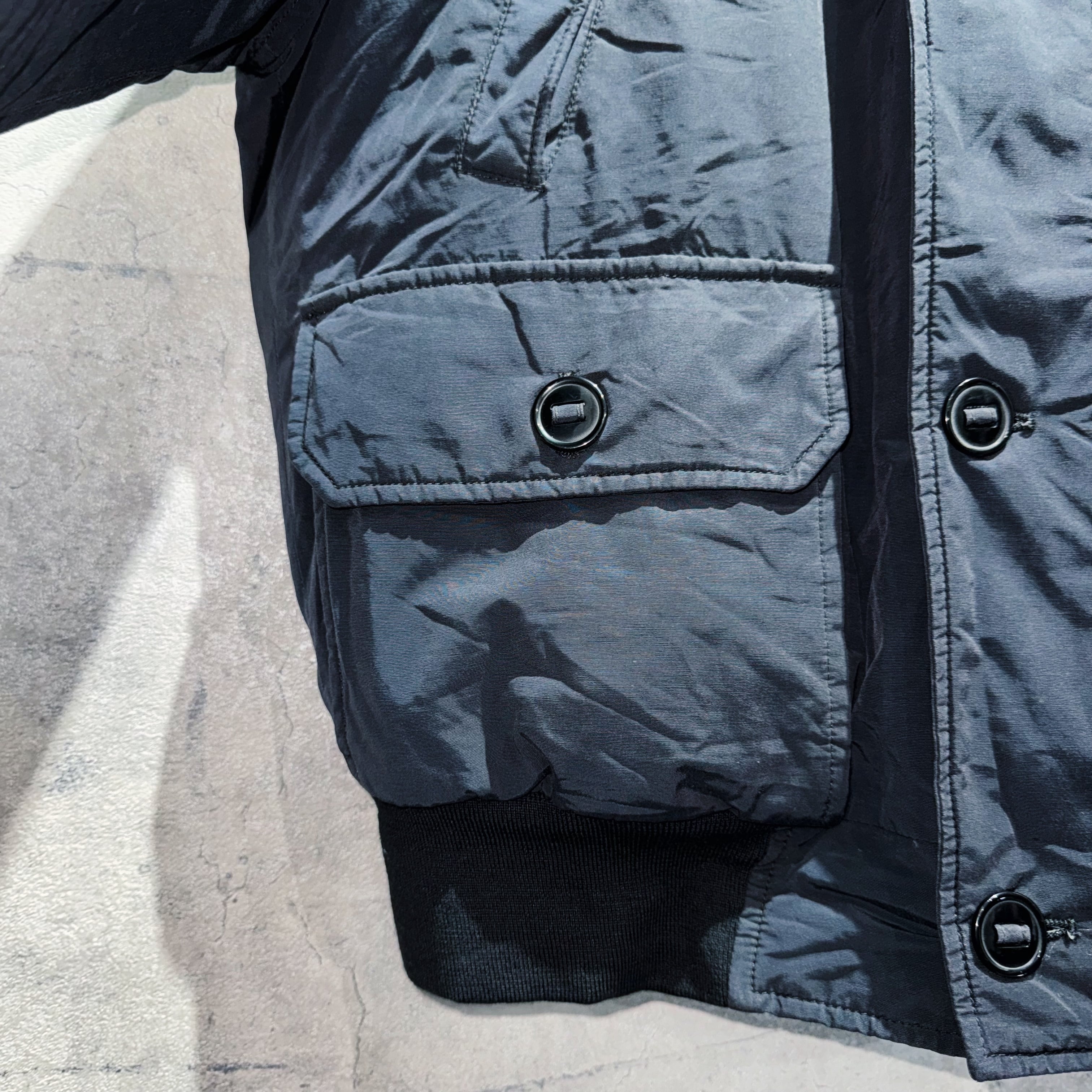 防寒性はいうまでもなく最高峰。大きめのフラップポケットやボタン、ショート丈で着用時のシルエットも美しく、オールブラックながらも圧巻の存在感。