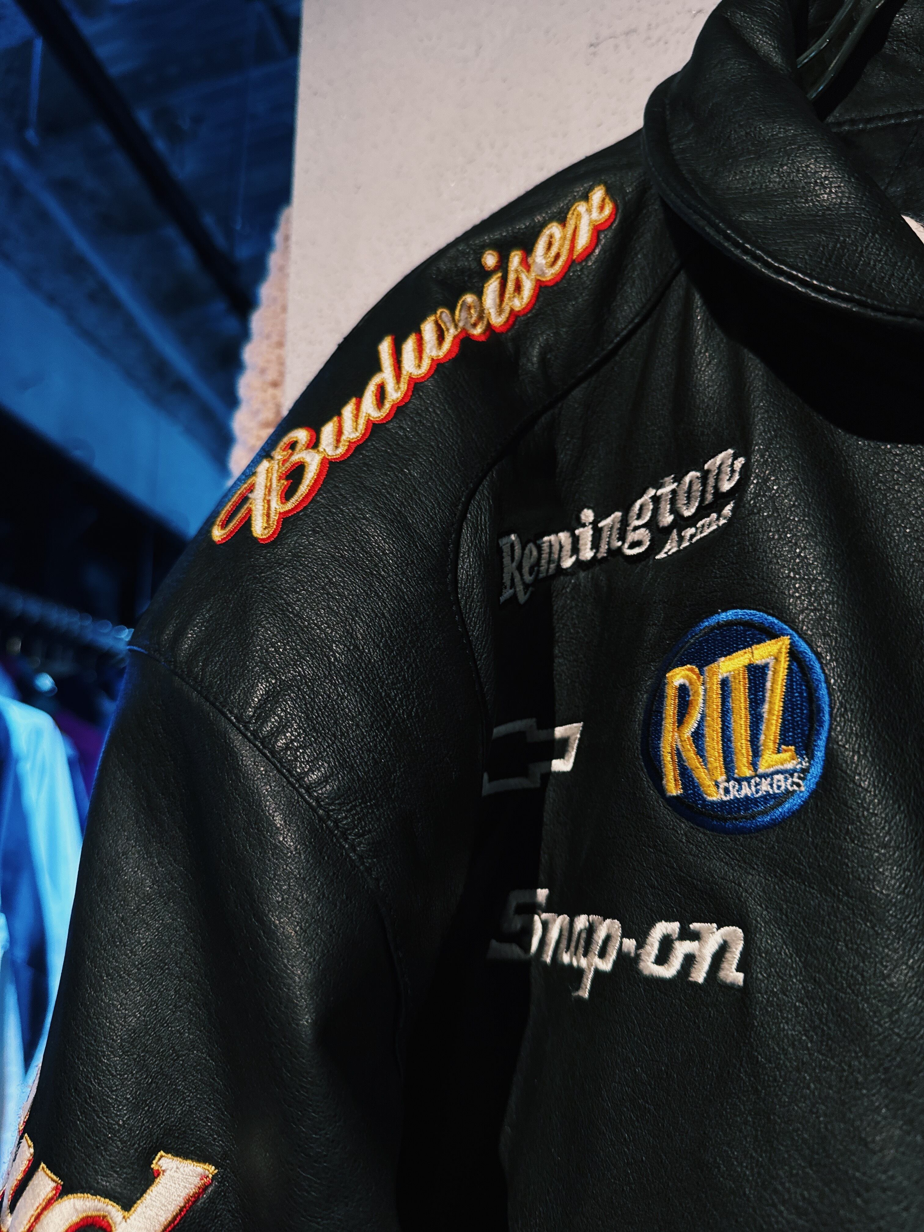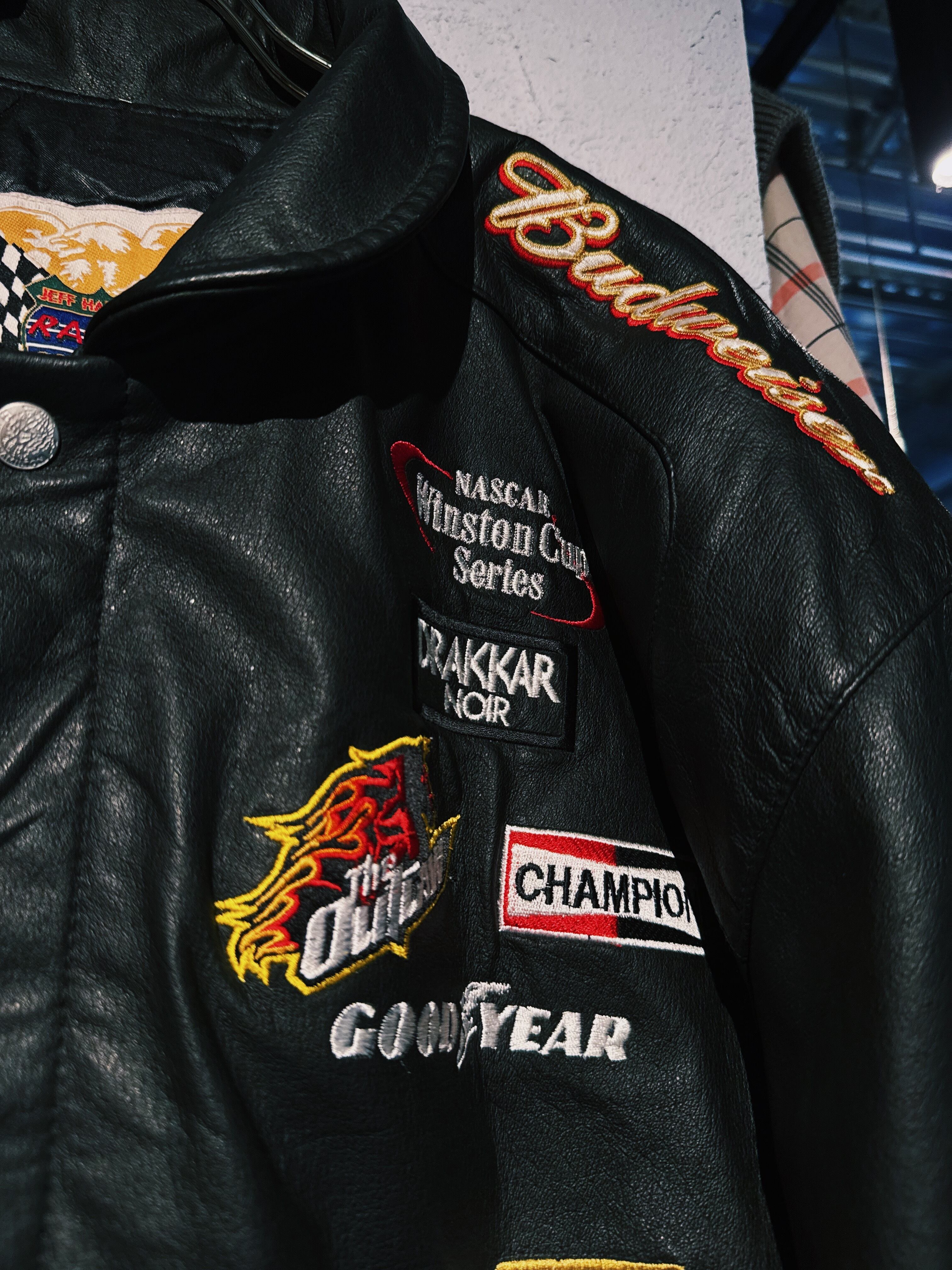 ヴィンテージグラフィックカンパニーワッペン&エンブロイダリー"バドワイザー"レーシングフルレザージャケット