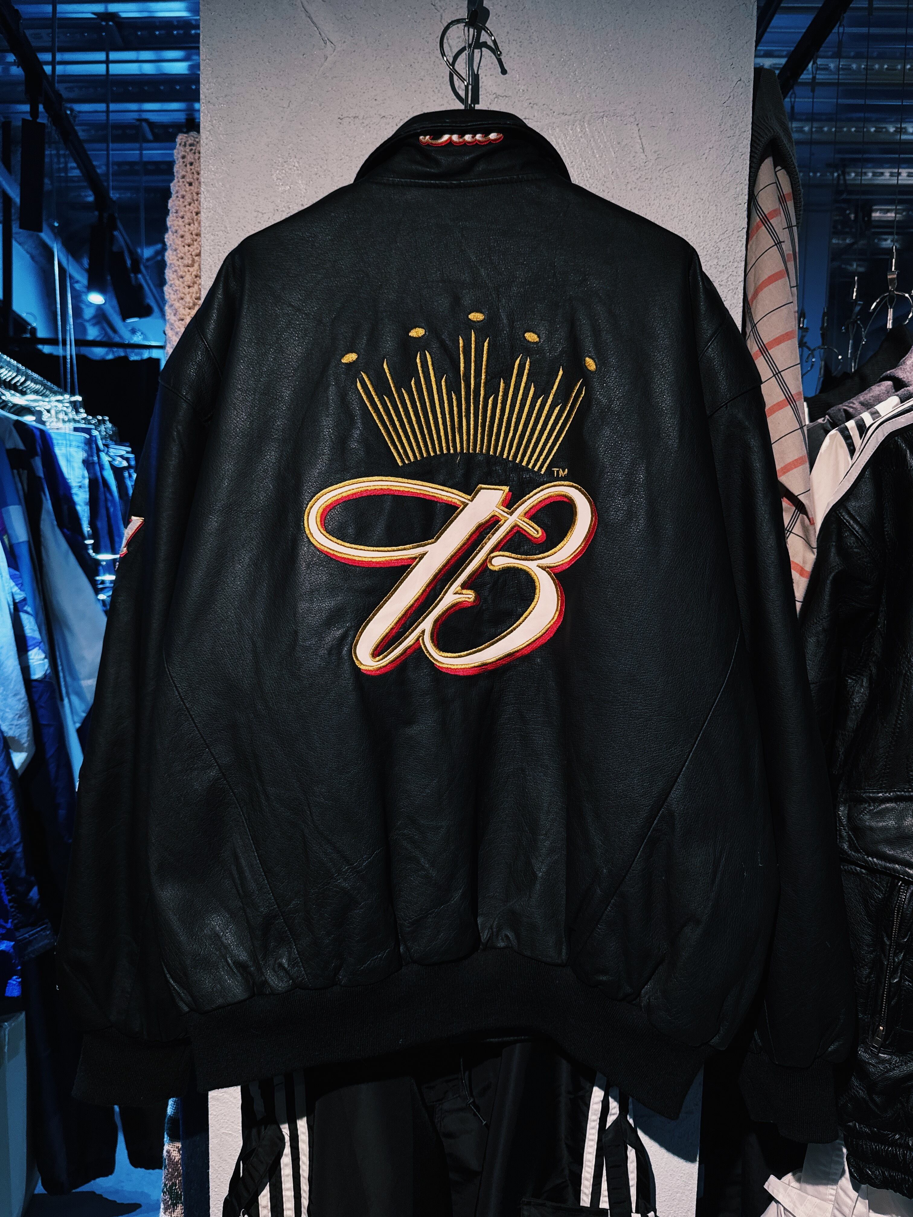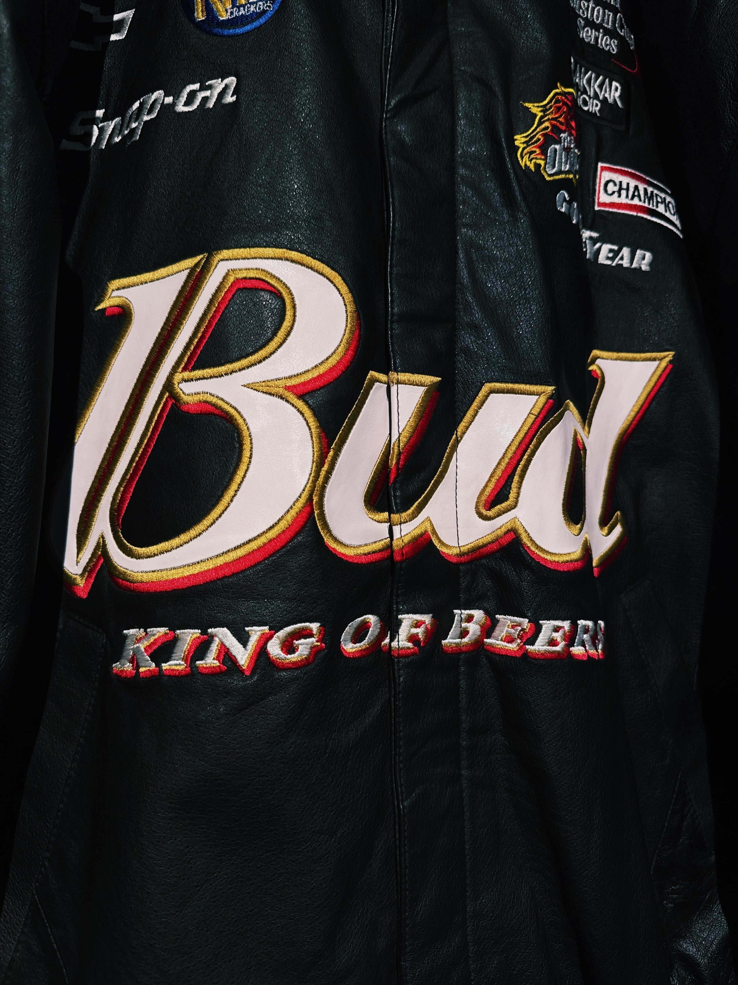 vintage graphic company wappen&embroidery "Budweiser"Racing full leather jacket