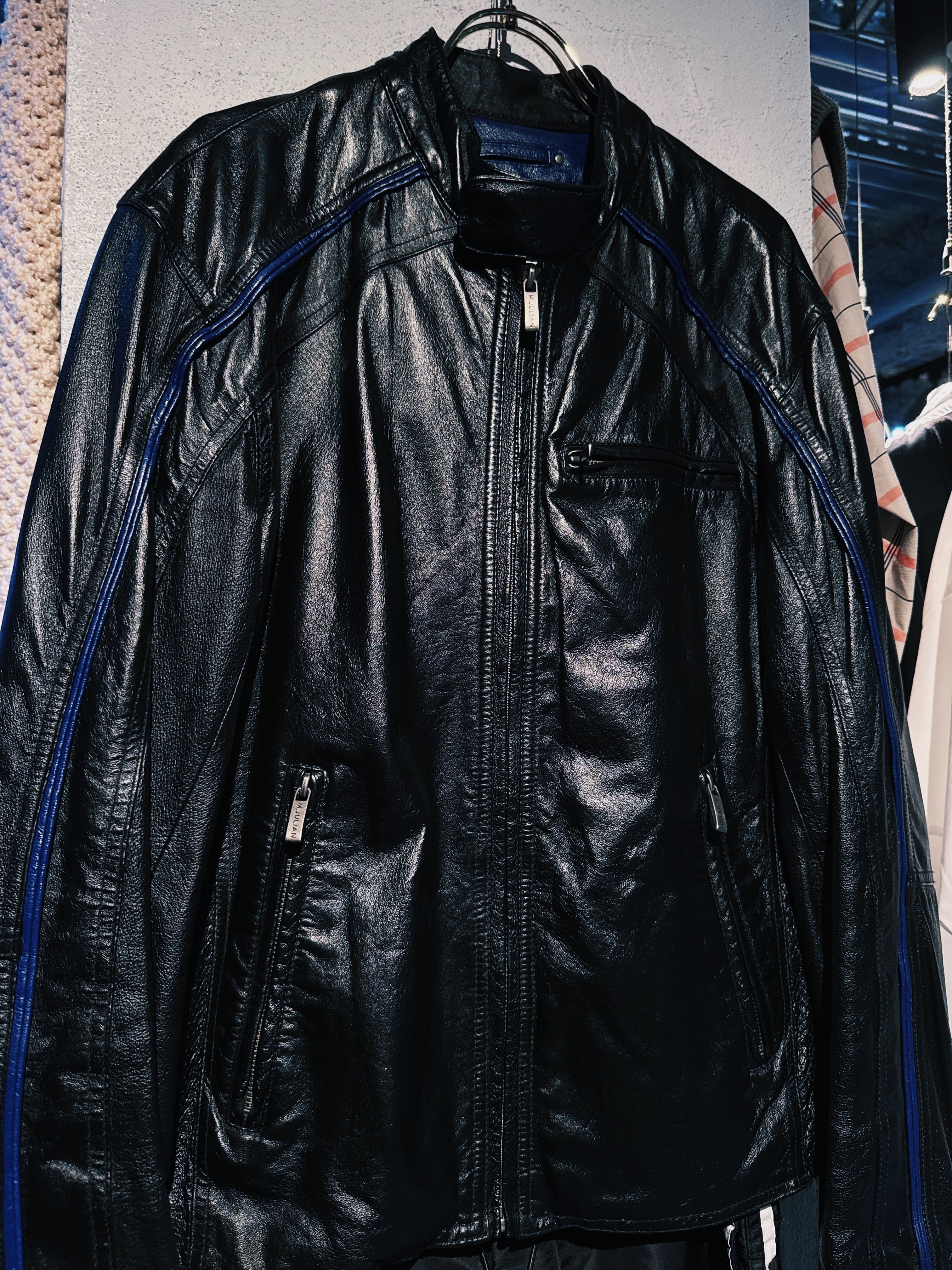 【D4C】vintage "WILSONS LEATHER" Blue stripes design leather single Riders jacket