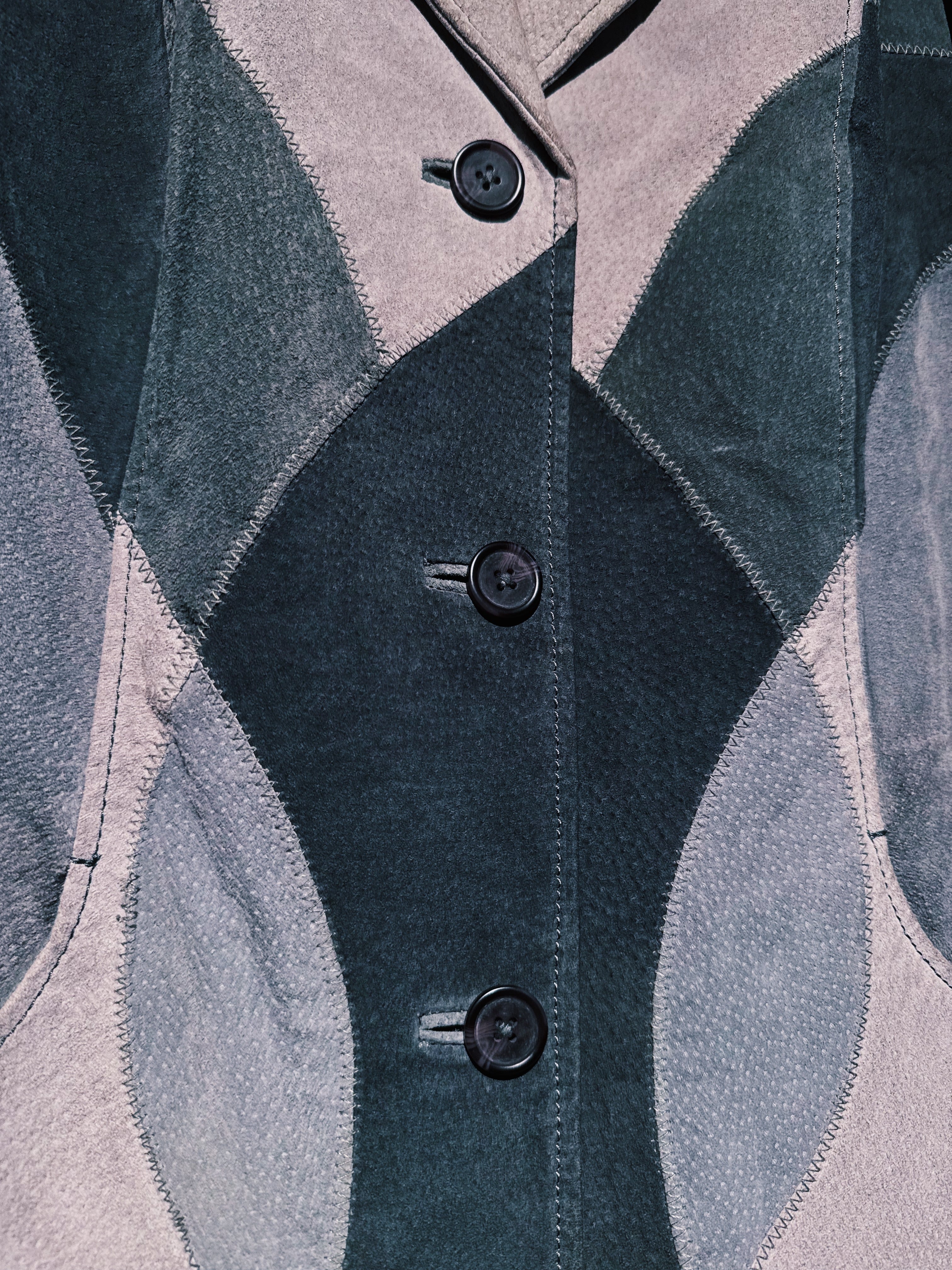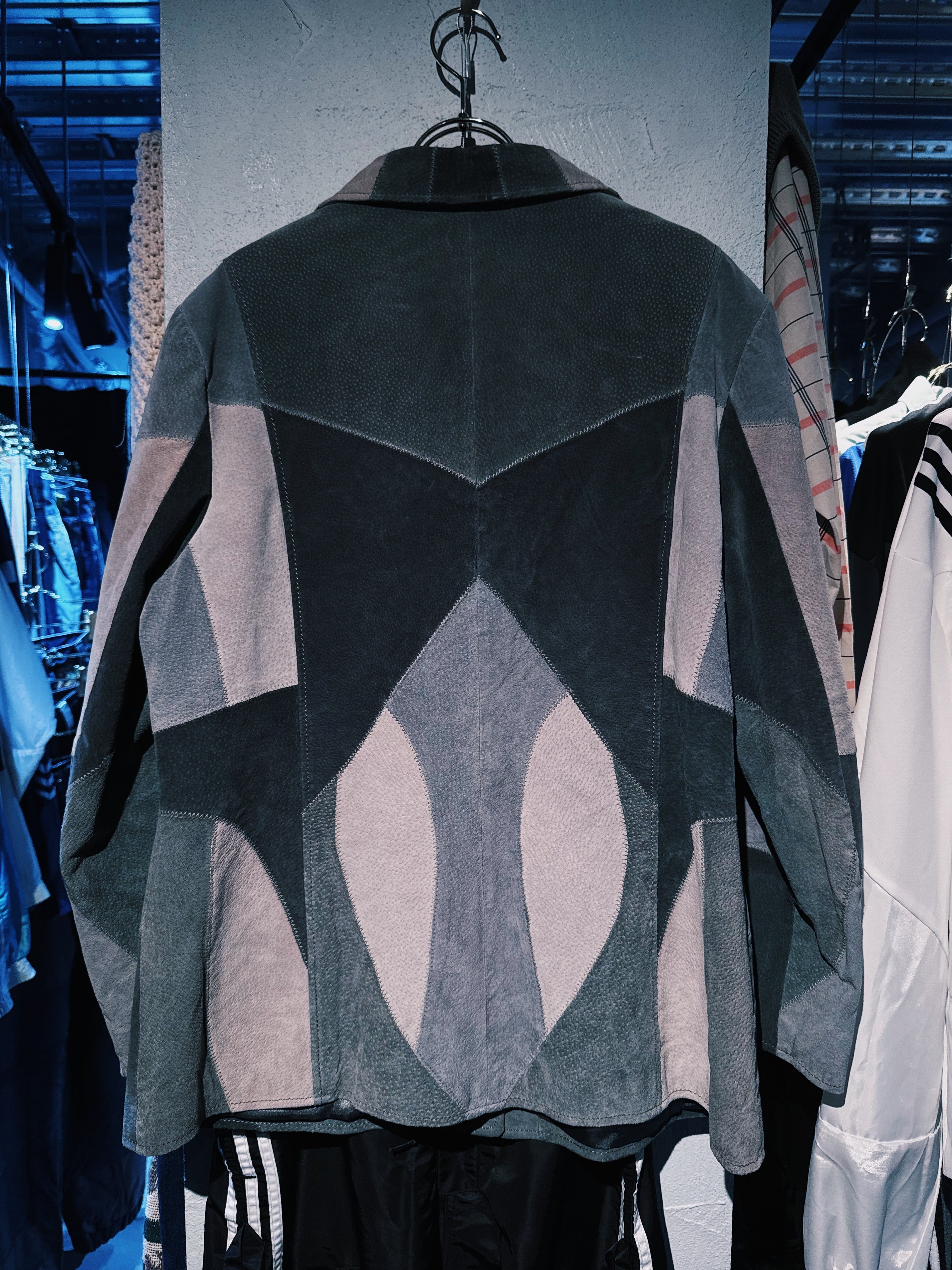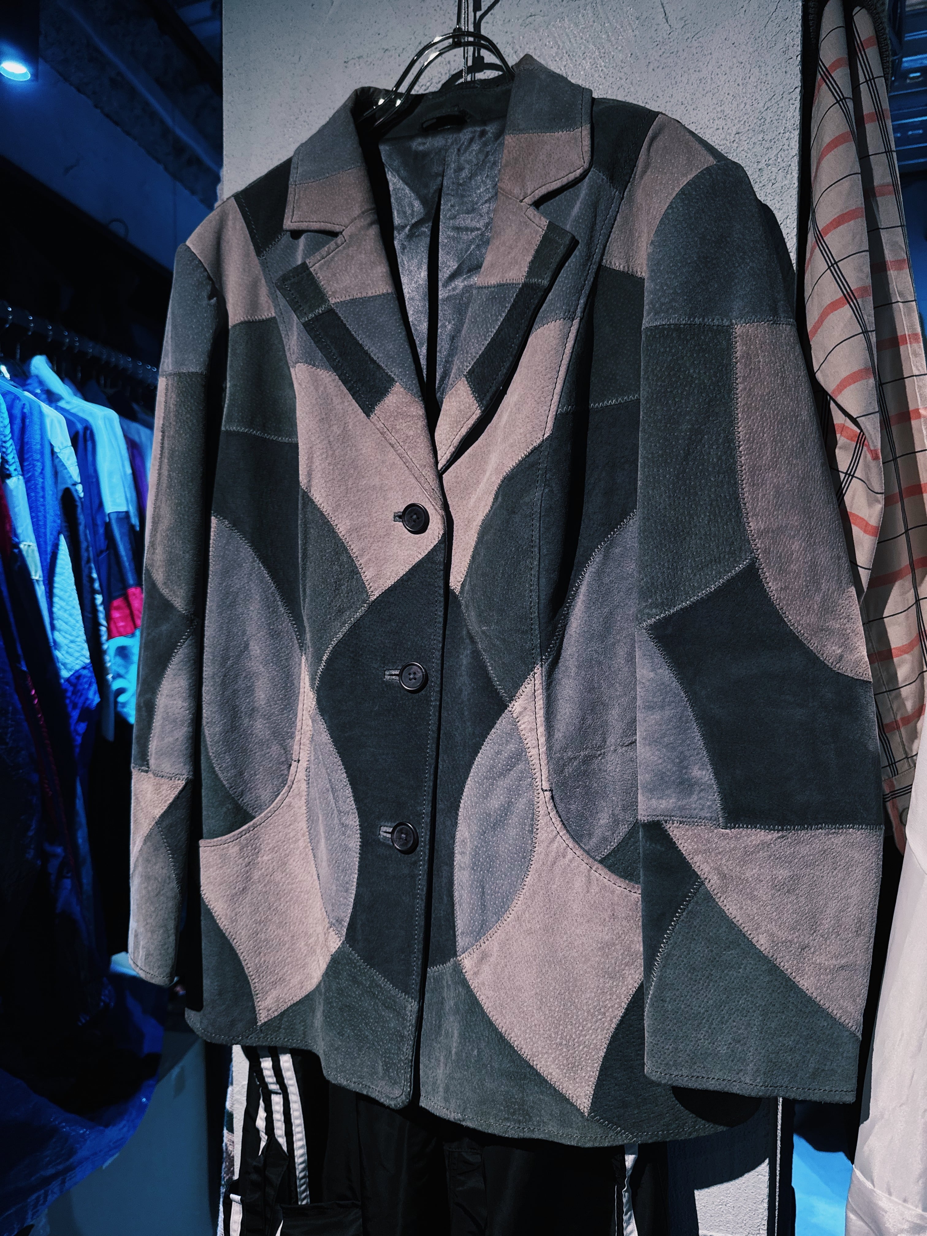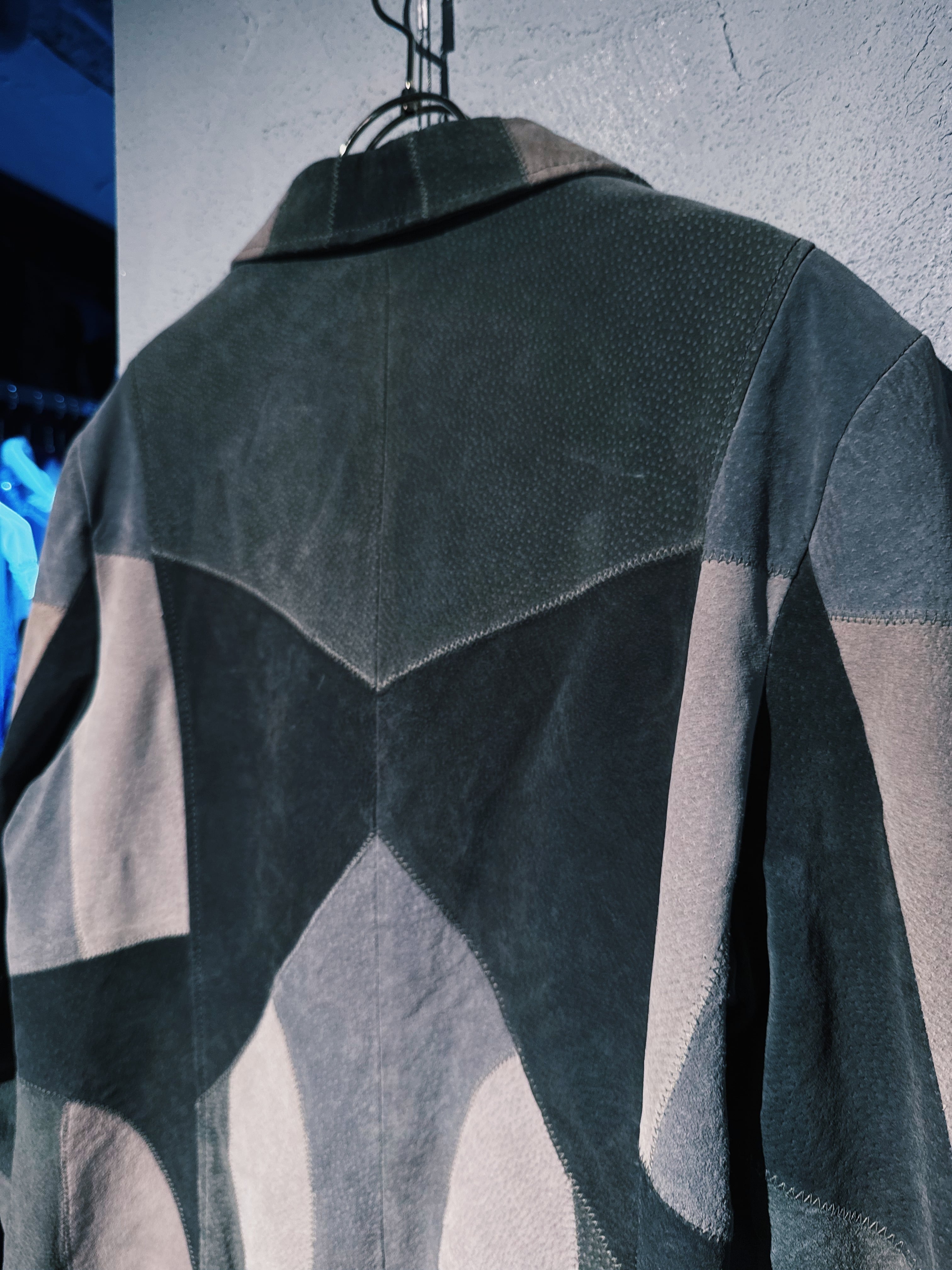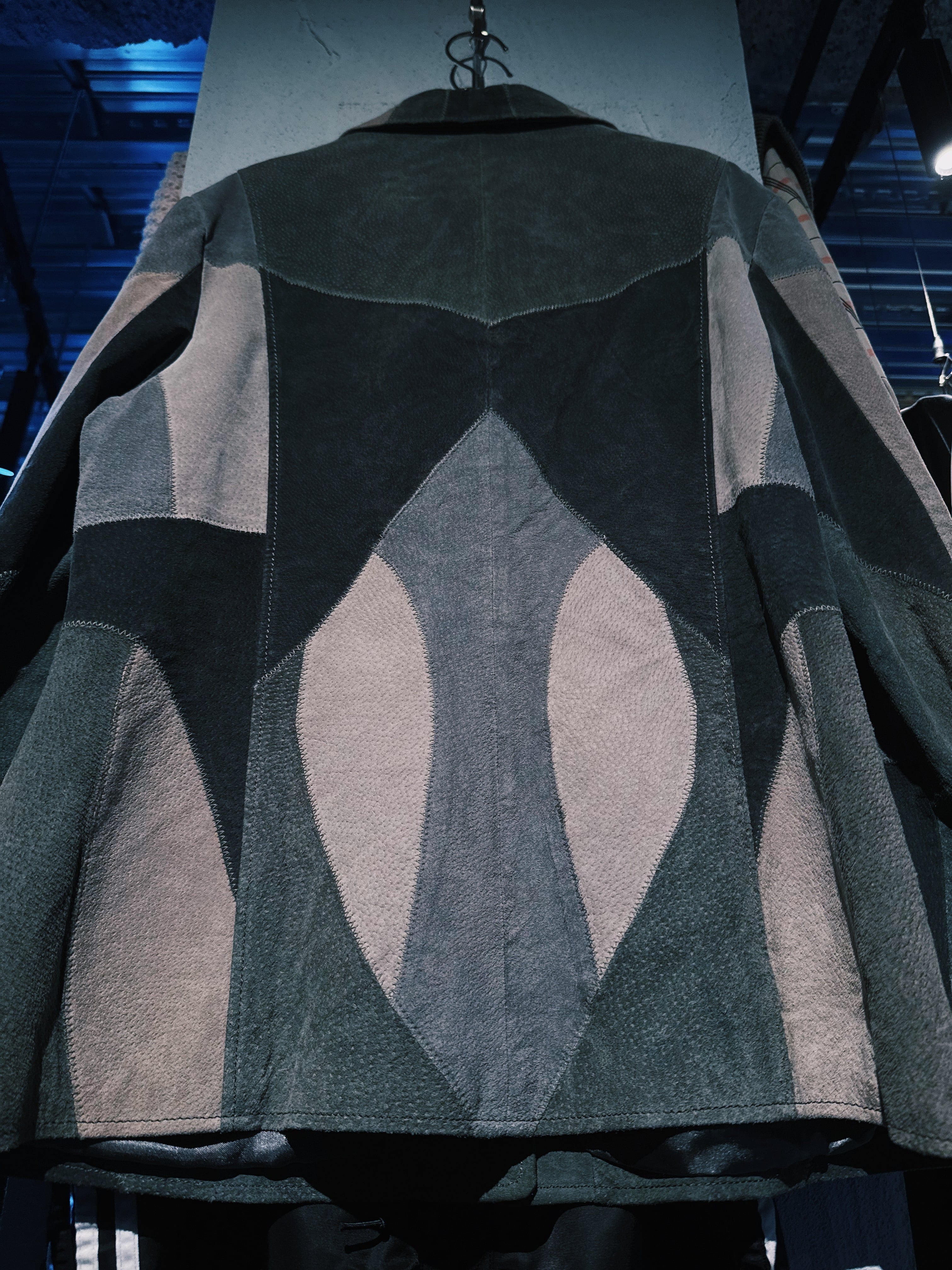アースカラーを基調とし、色の異なるスエードレザーのパッチワークデザインが光る唯一無二のテーラードジャケット。