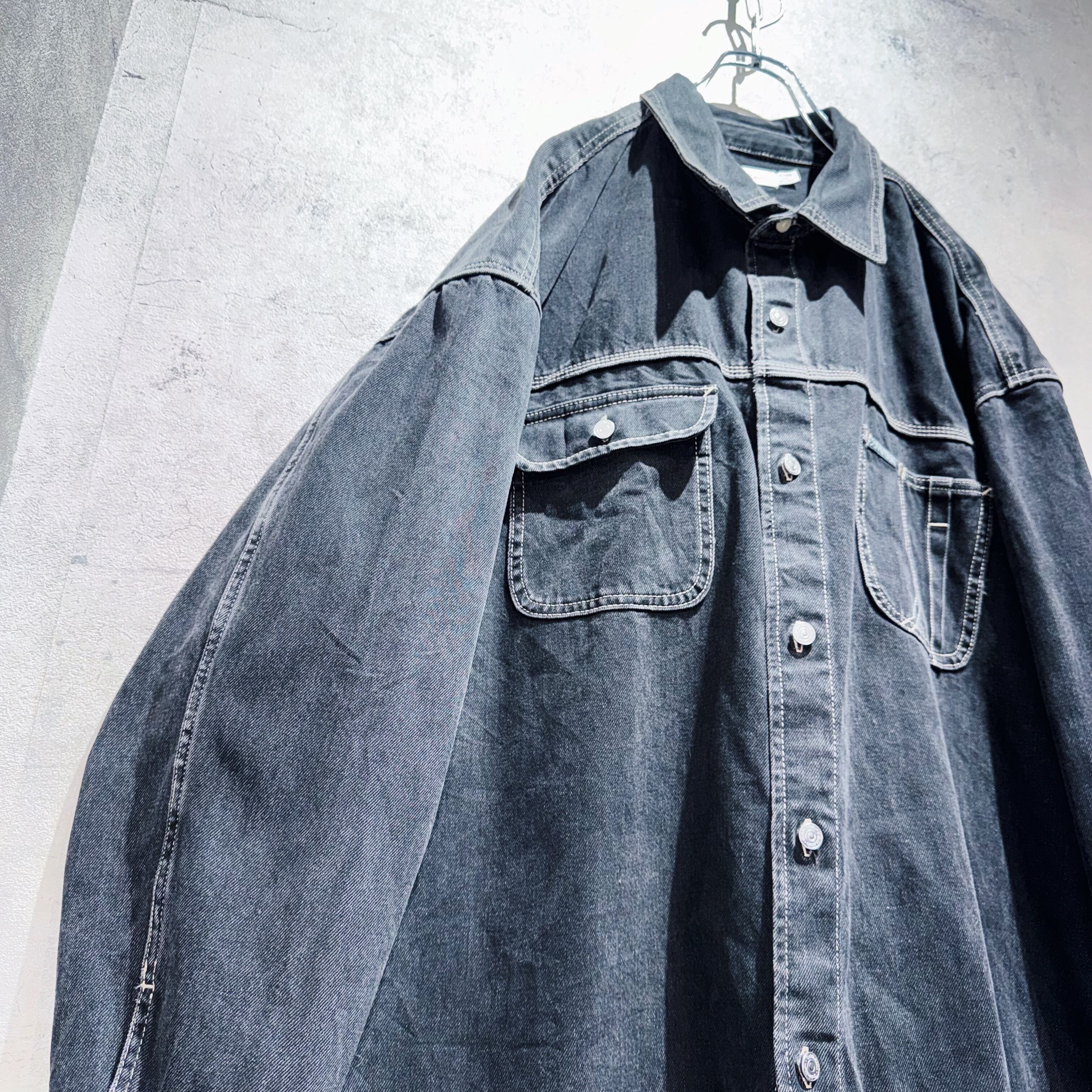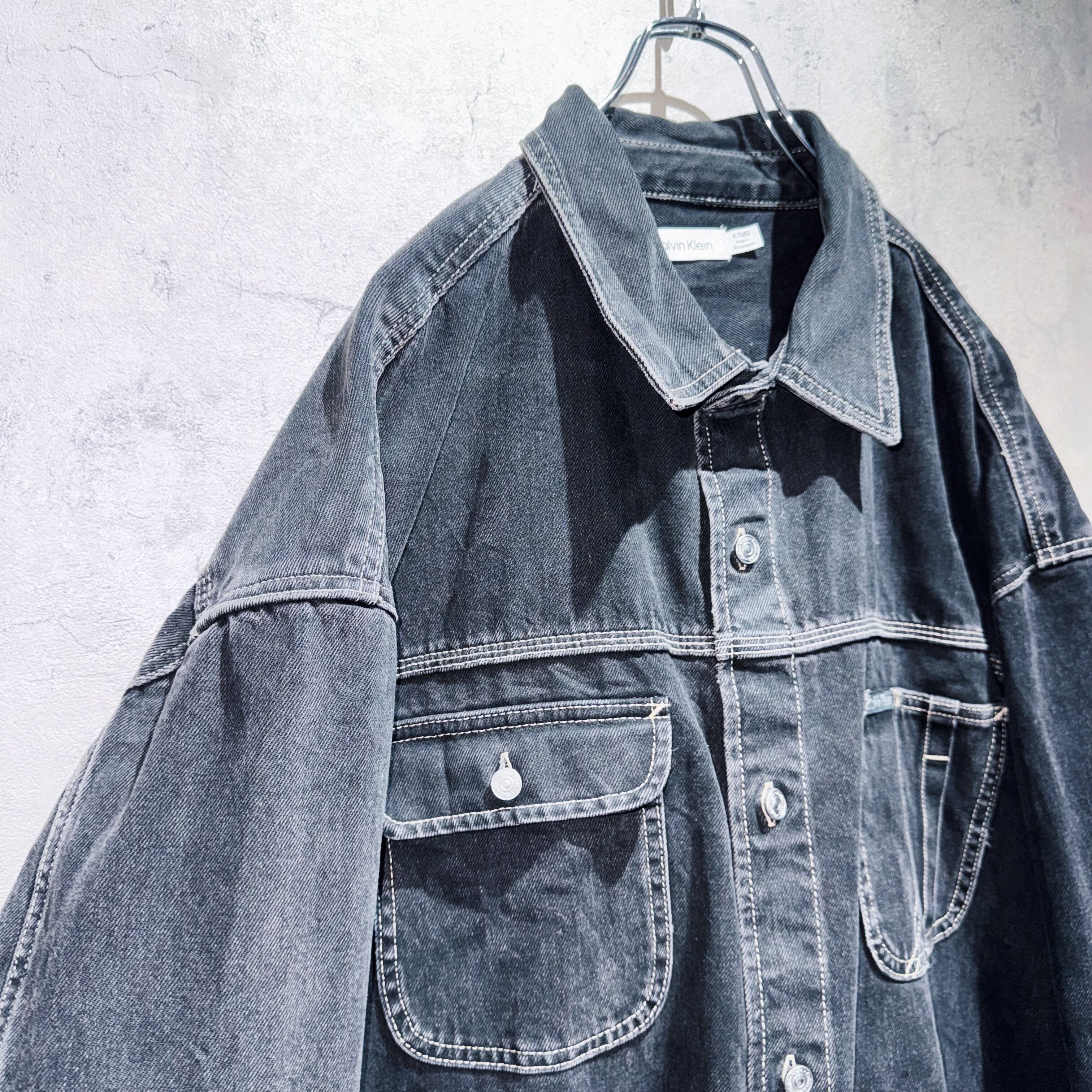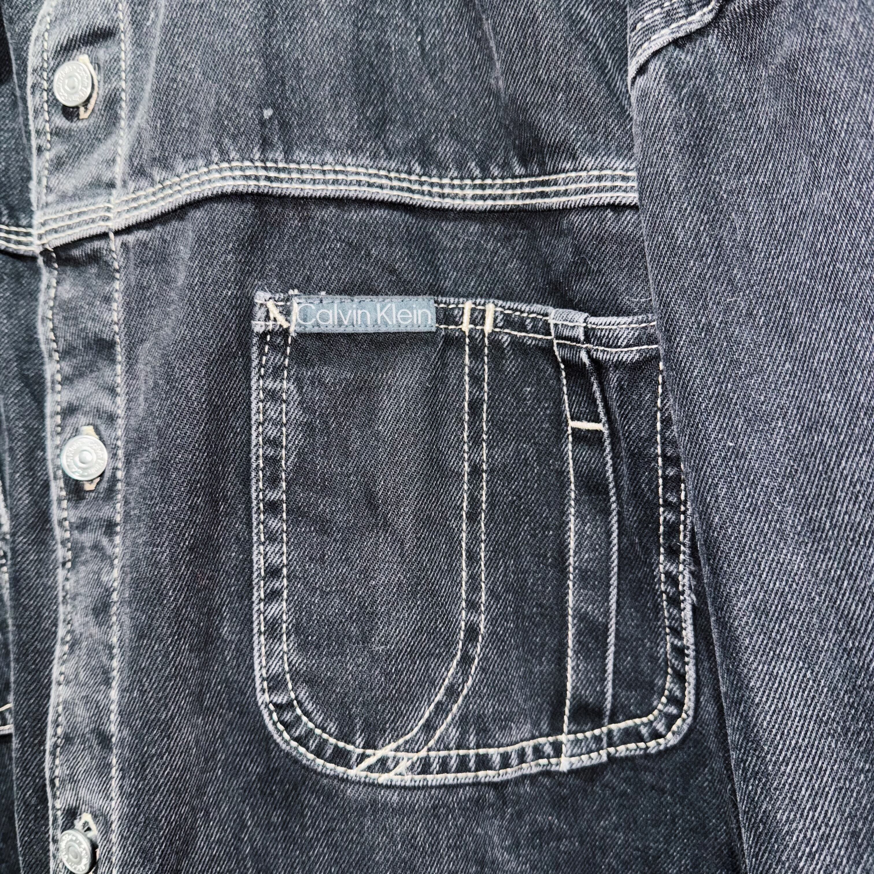 “Calvin Klein Jeans”ink black denim design loose Trucker shirt jacket