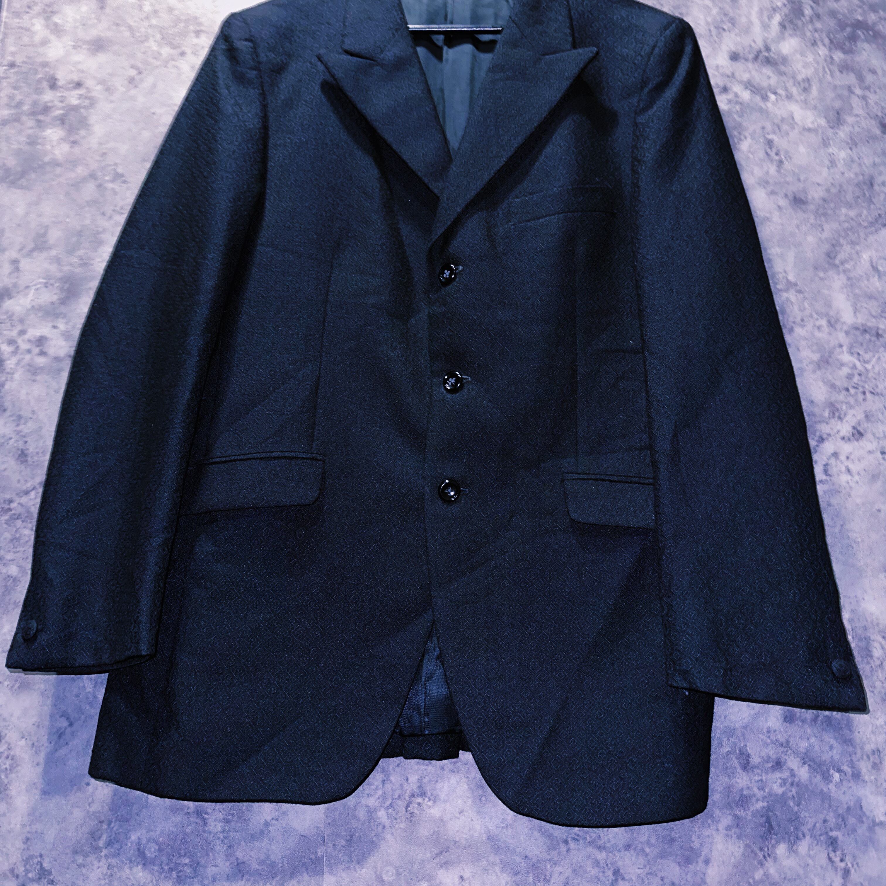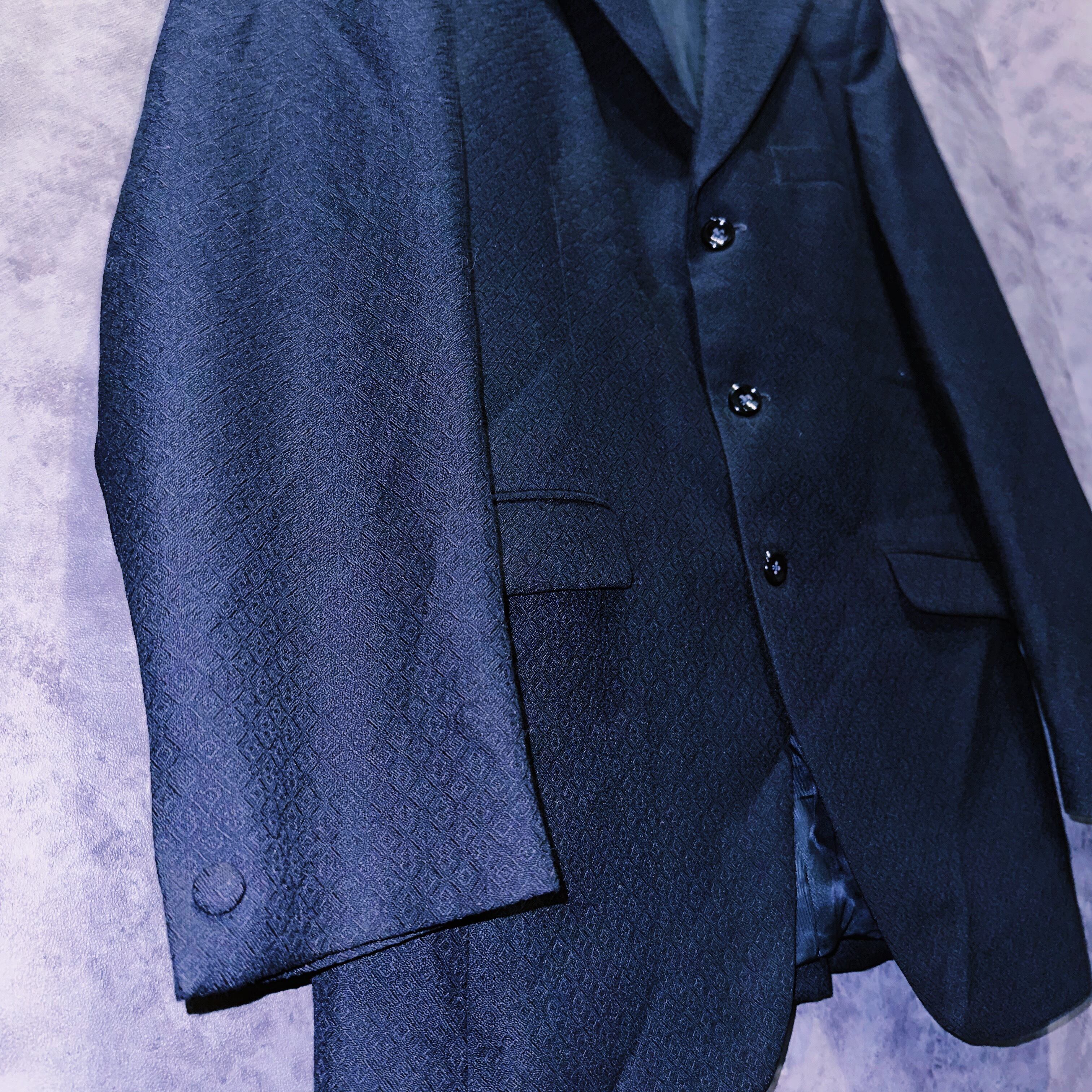 力強いブラックに身に纏い、程よく美しい光沢を放つ高品質のウールを採用した高級感のあるセットアップ。数ある中で70'sの黒系のセットアップは中々お目にかかれないかと…