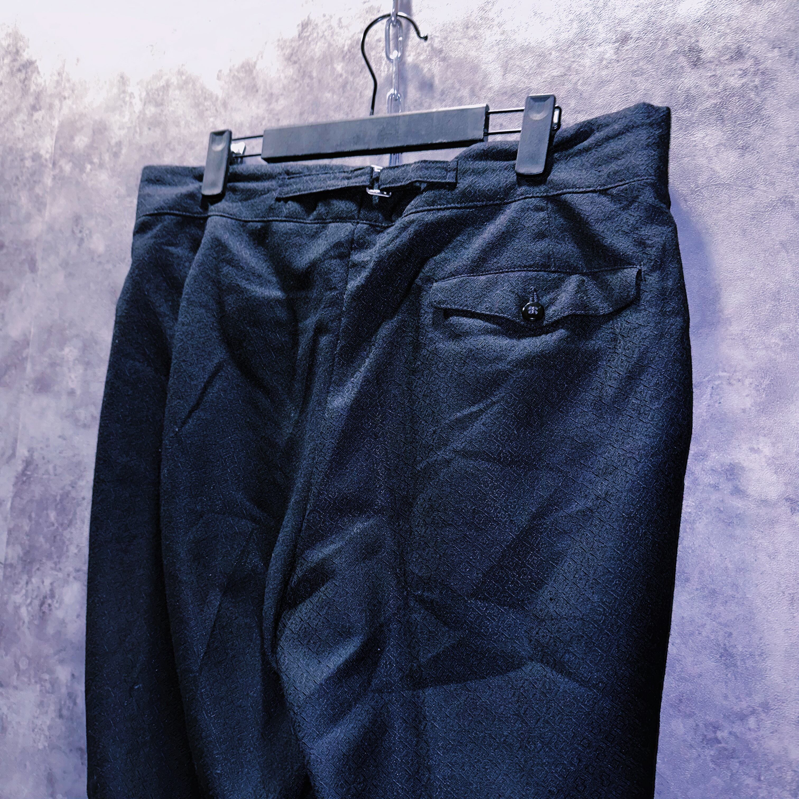 シングルブレストだが、ラベルには70'sらしく剣先が立っており凛々しいジャケットにパンツはフレアトラウザース当時のままでシンチバックでウエストが調節可能な機能性も高い1着。
