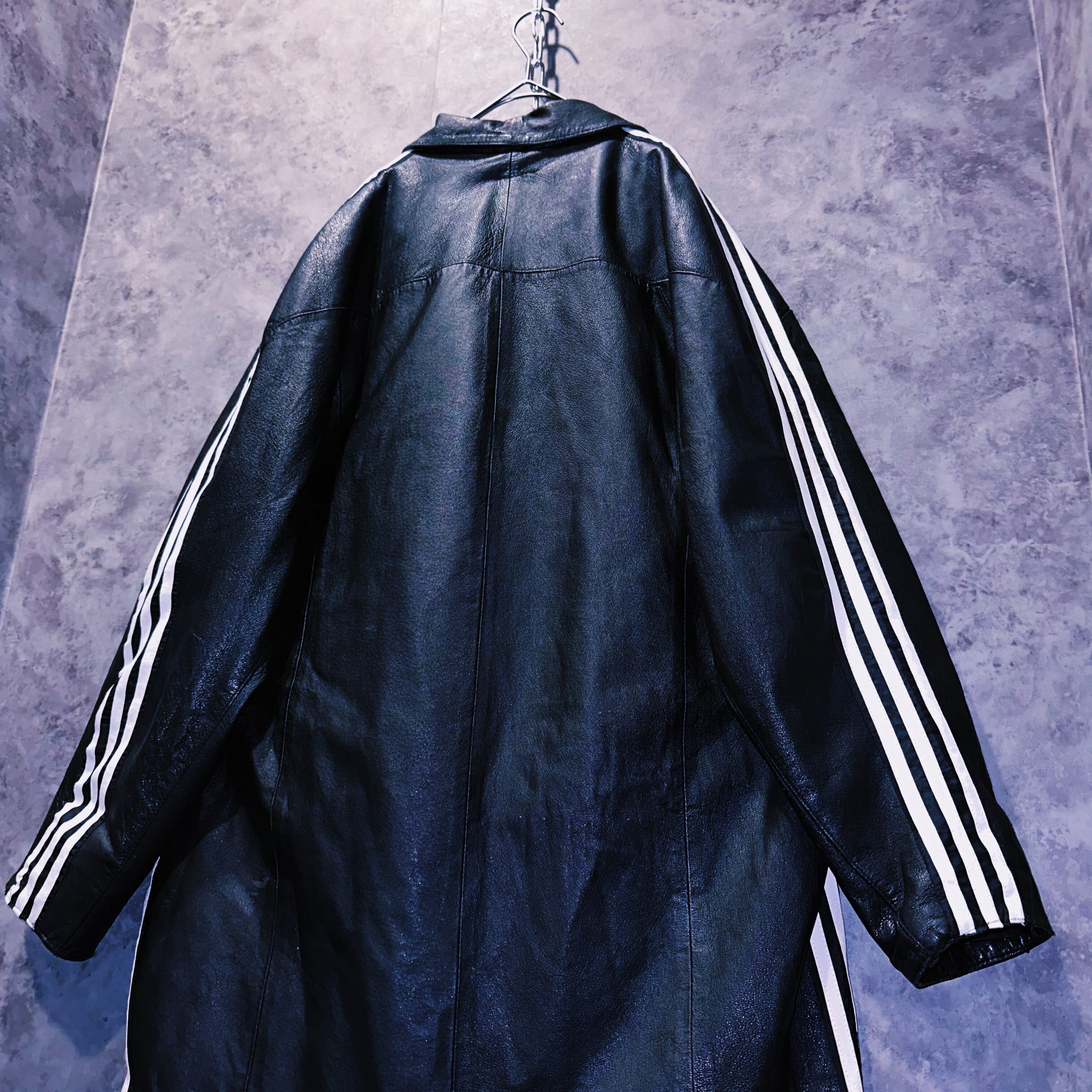 special "original re:make" three stripe design vintage leather coat three stripe edition