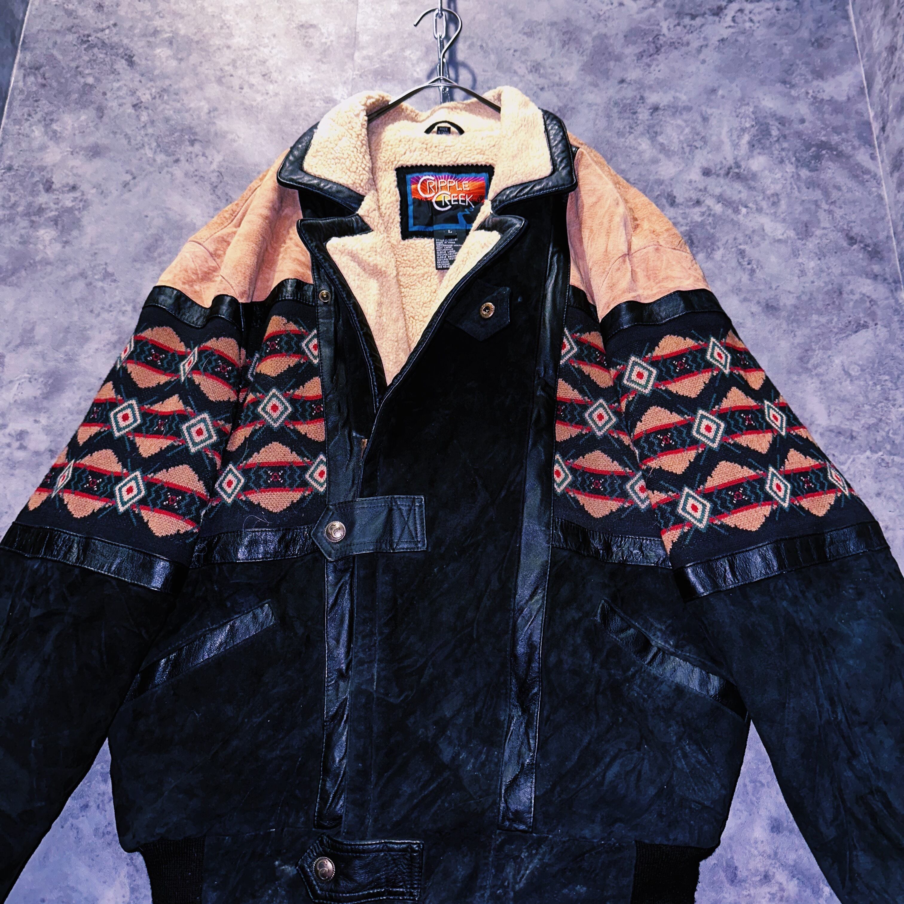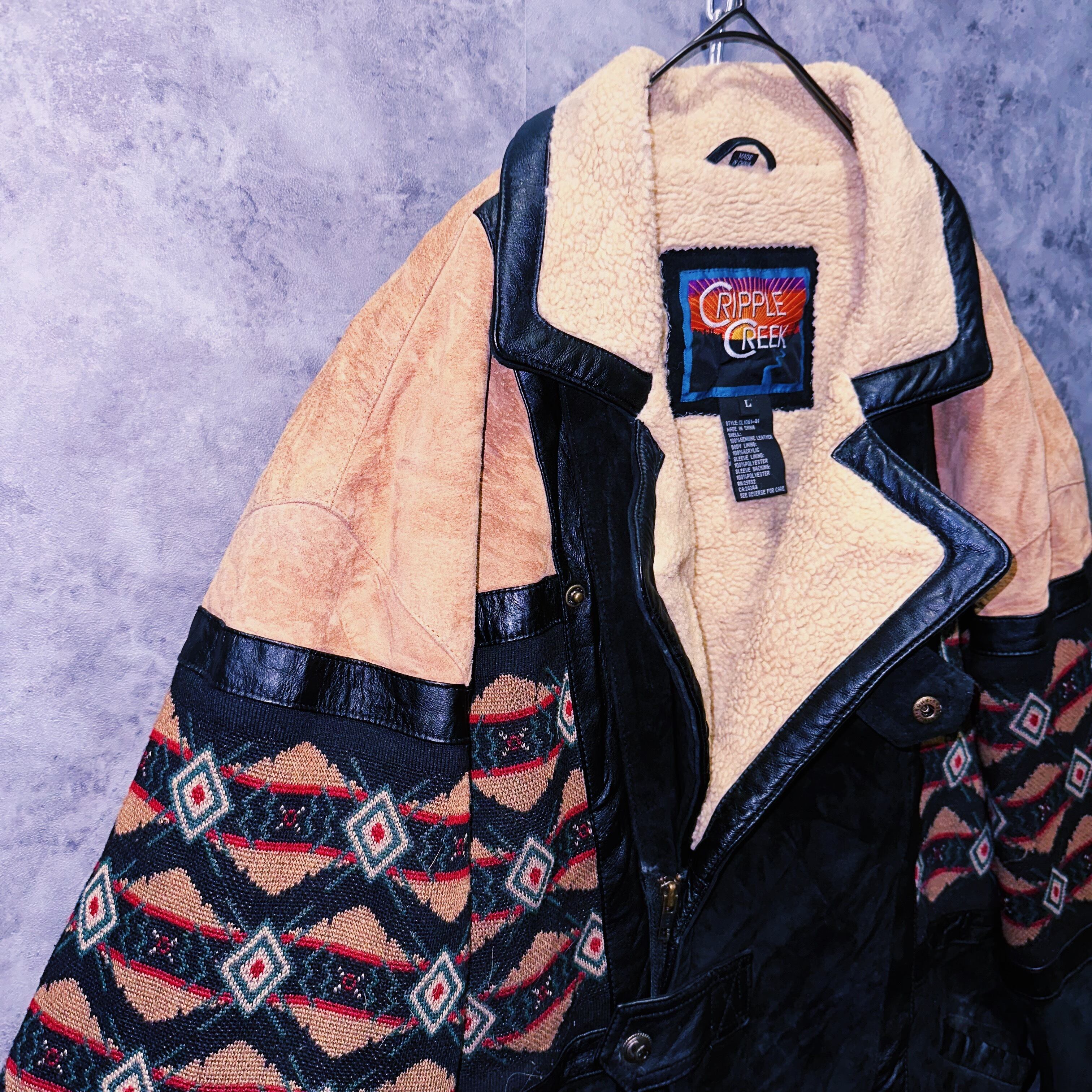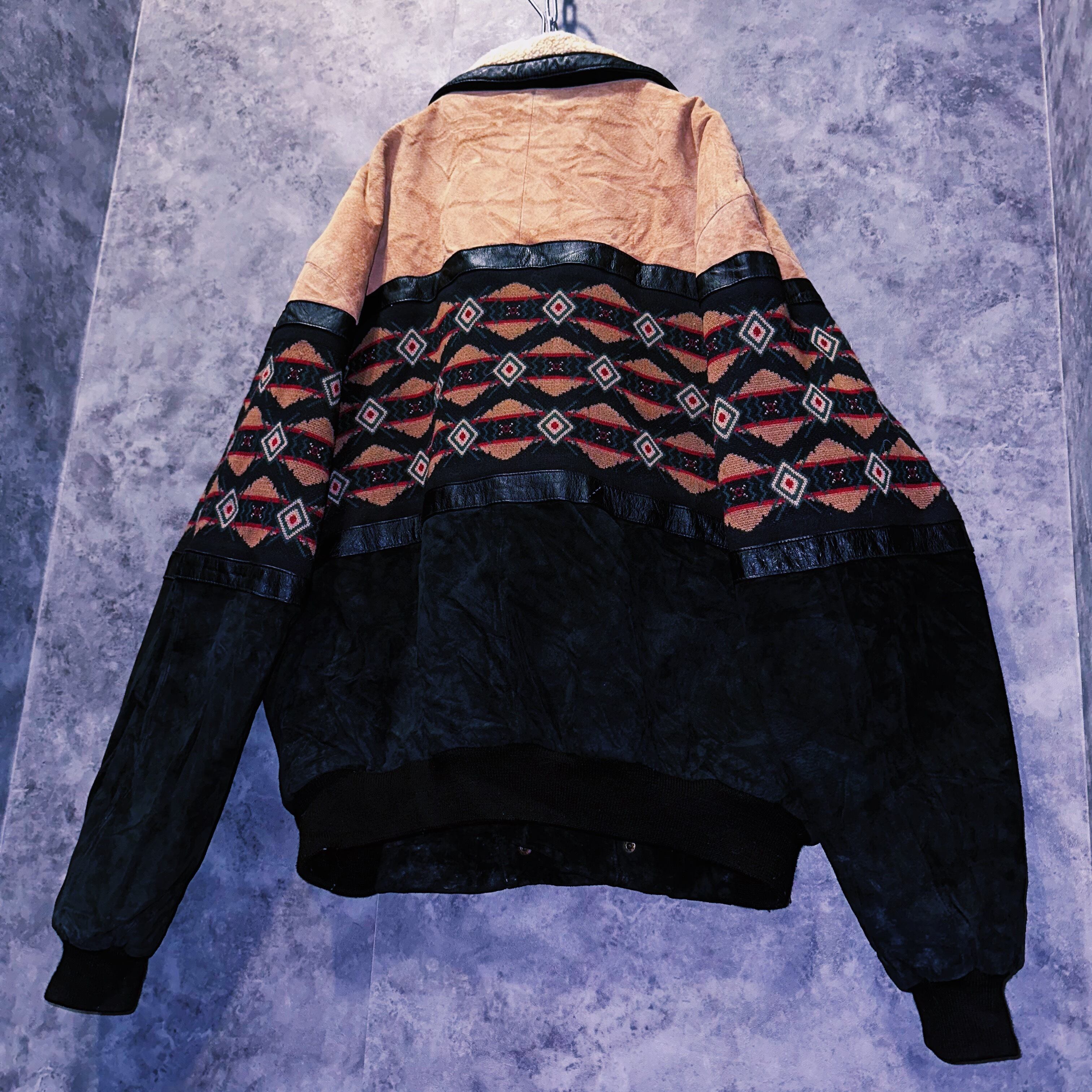 90'sヴィンテージニット×ボアスウィッチングデザインスエードレザージャケット