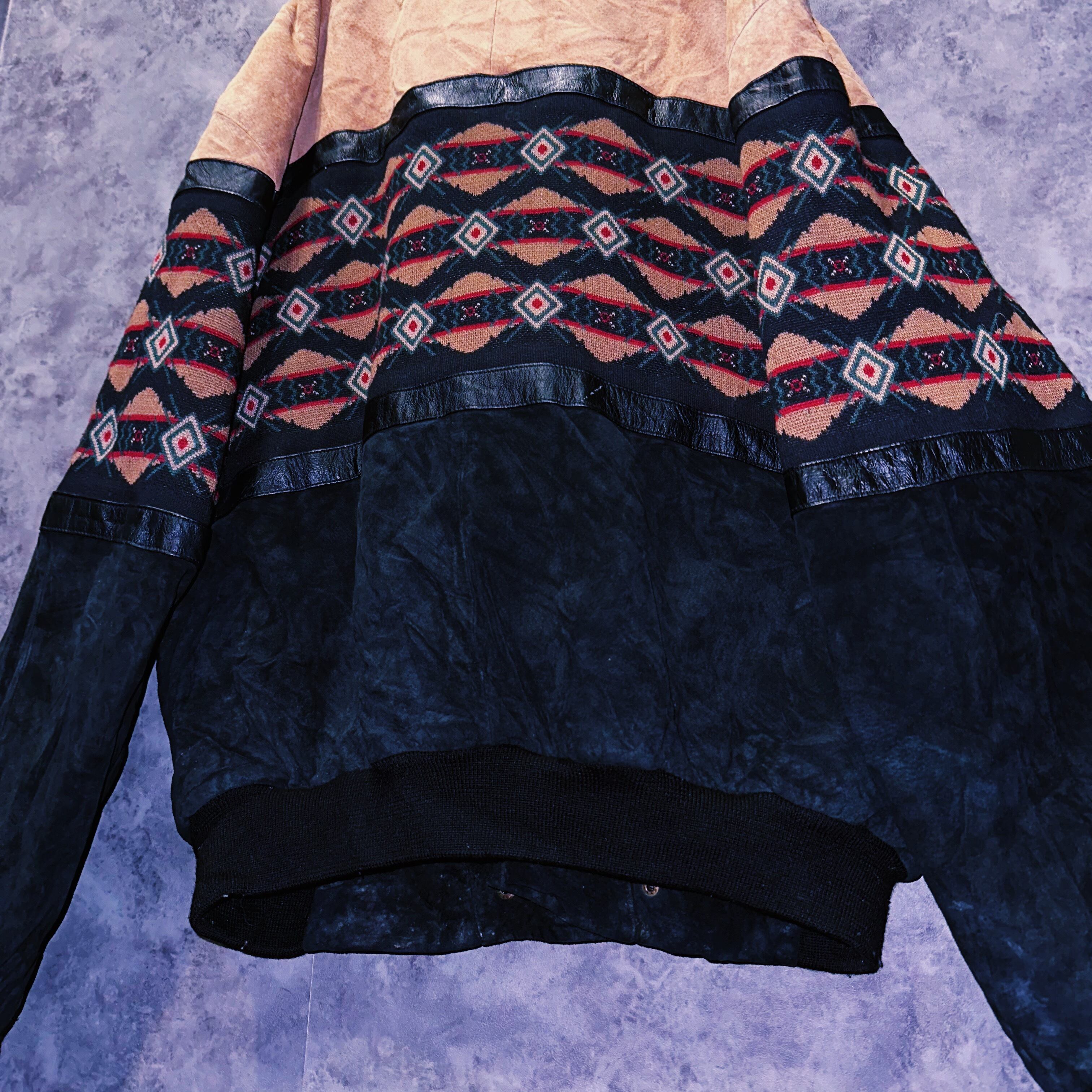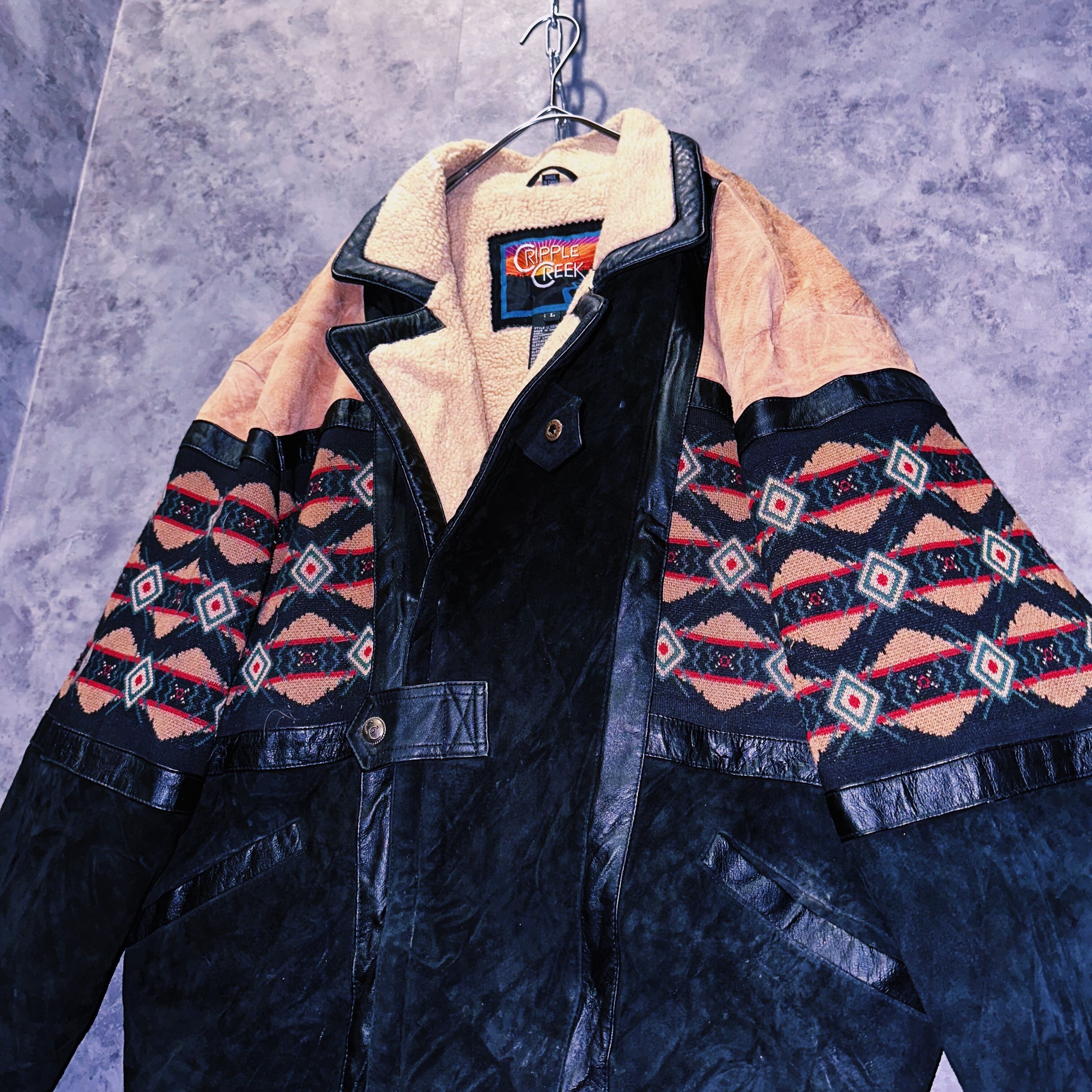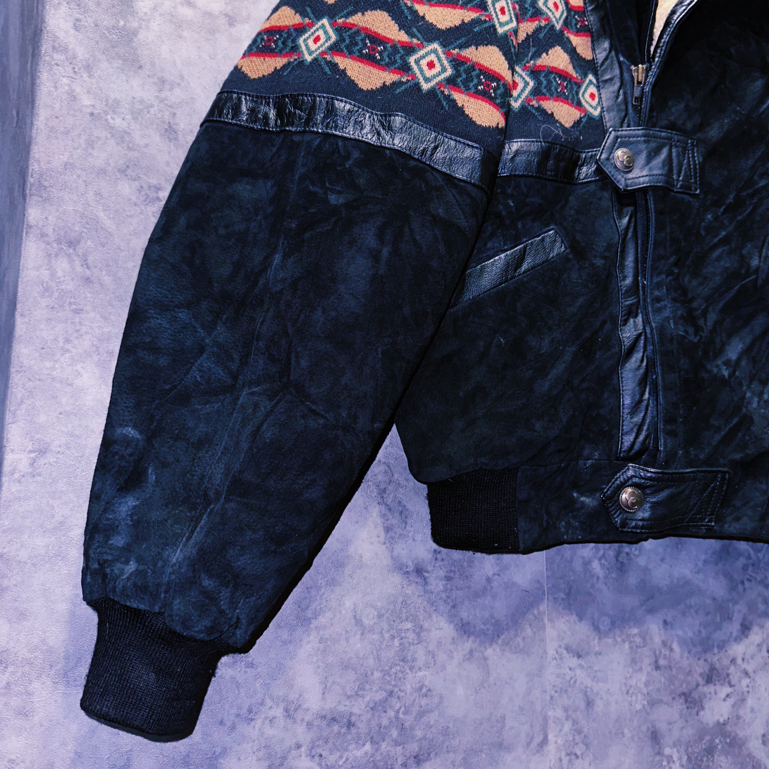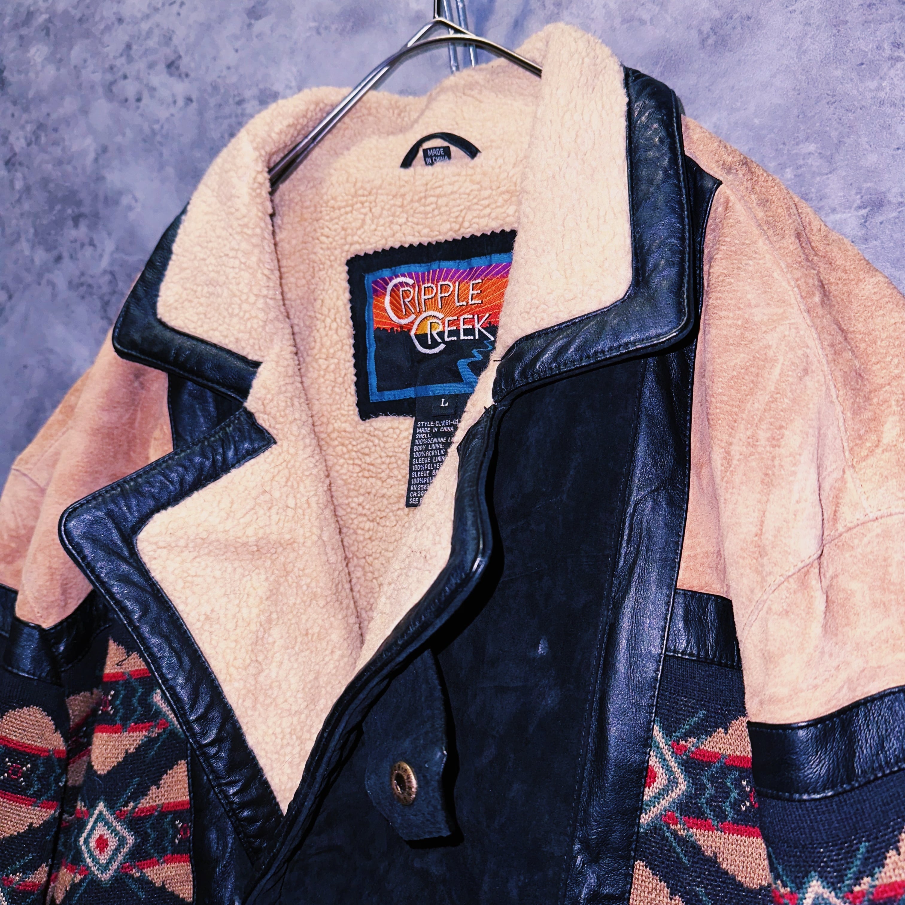 90'sヴィンテージニット×ボアスウィッチングデザインスエードレザージャケット