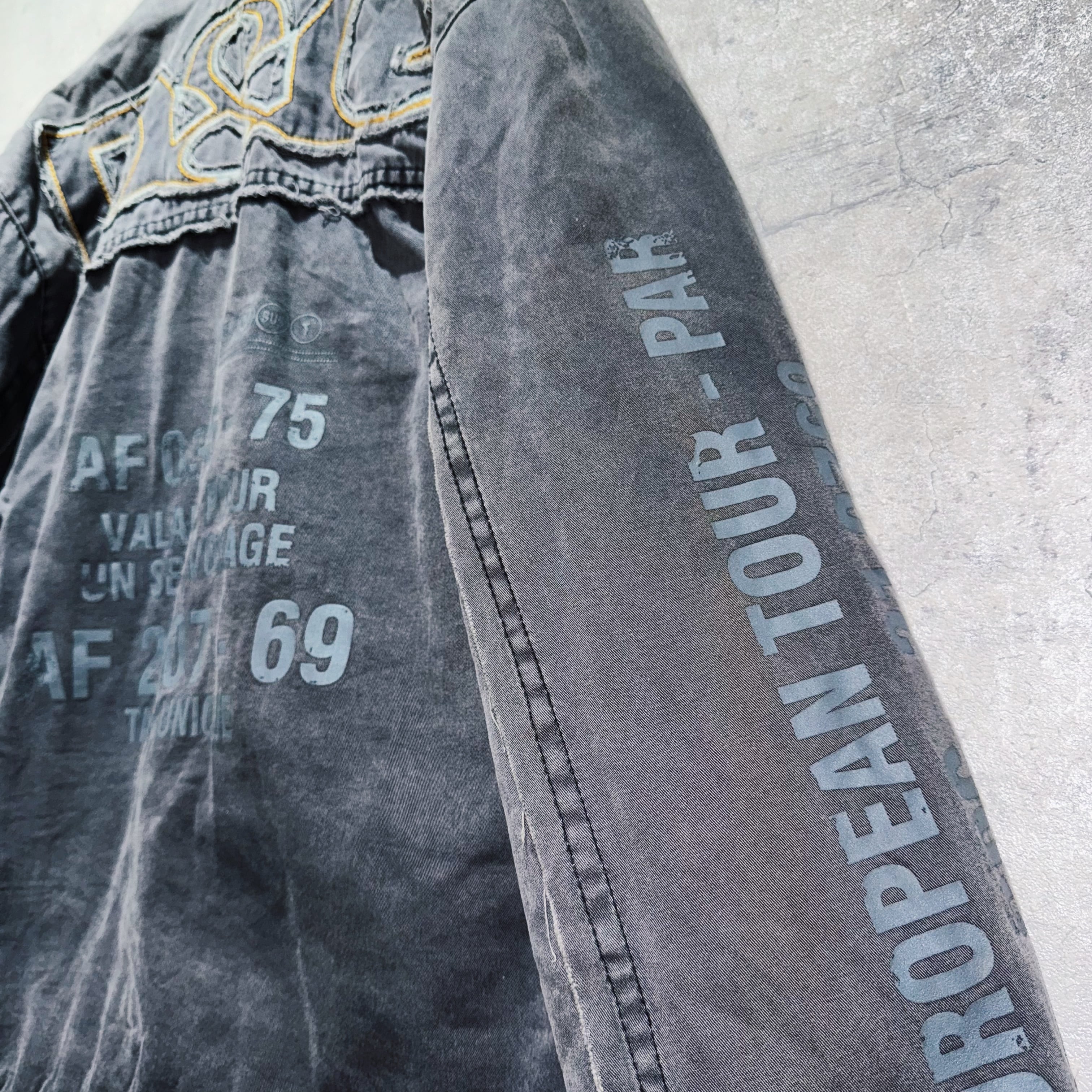 フェード感のある墨黒のボディにミリタリーをモチーフとした無骨さを醸し出すデザインジャケット。随所にはダメージ加工をあしらっており、ヴィンテージの風合いを醸し出す仕上がりに。