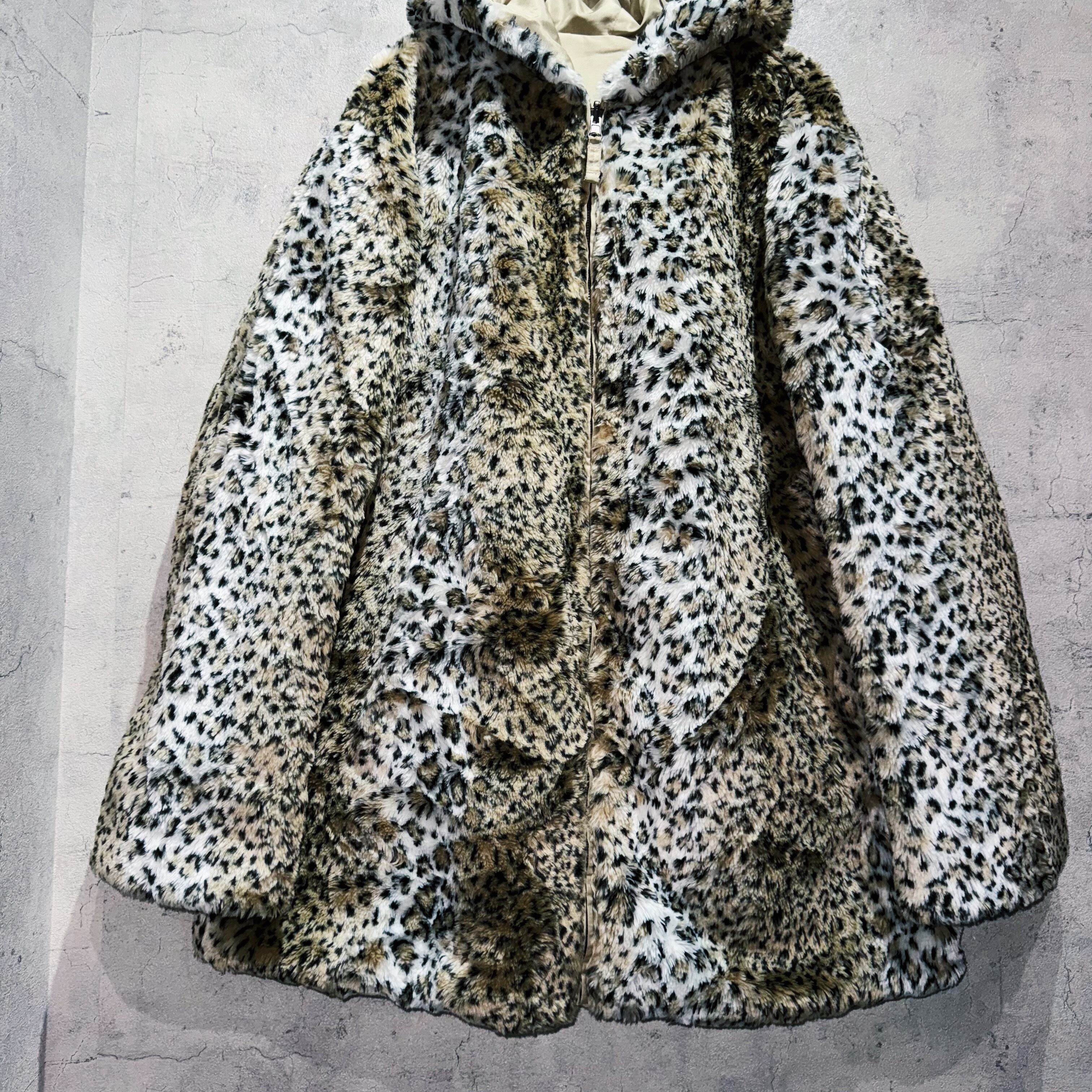 スペシャルフェイクファーレオパードパターンデザインリバーシブルフーディージャケット