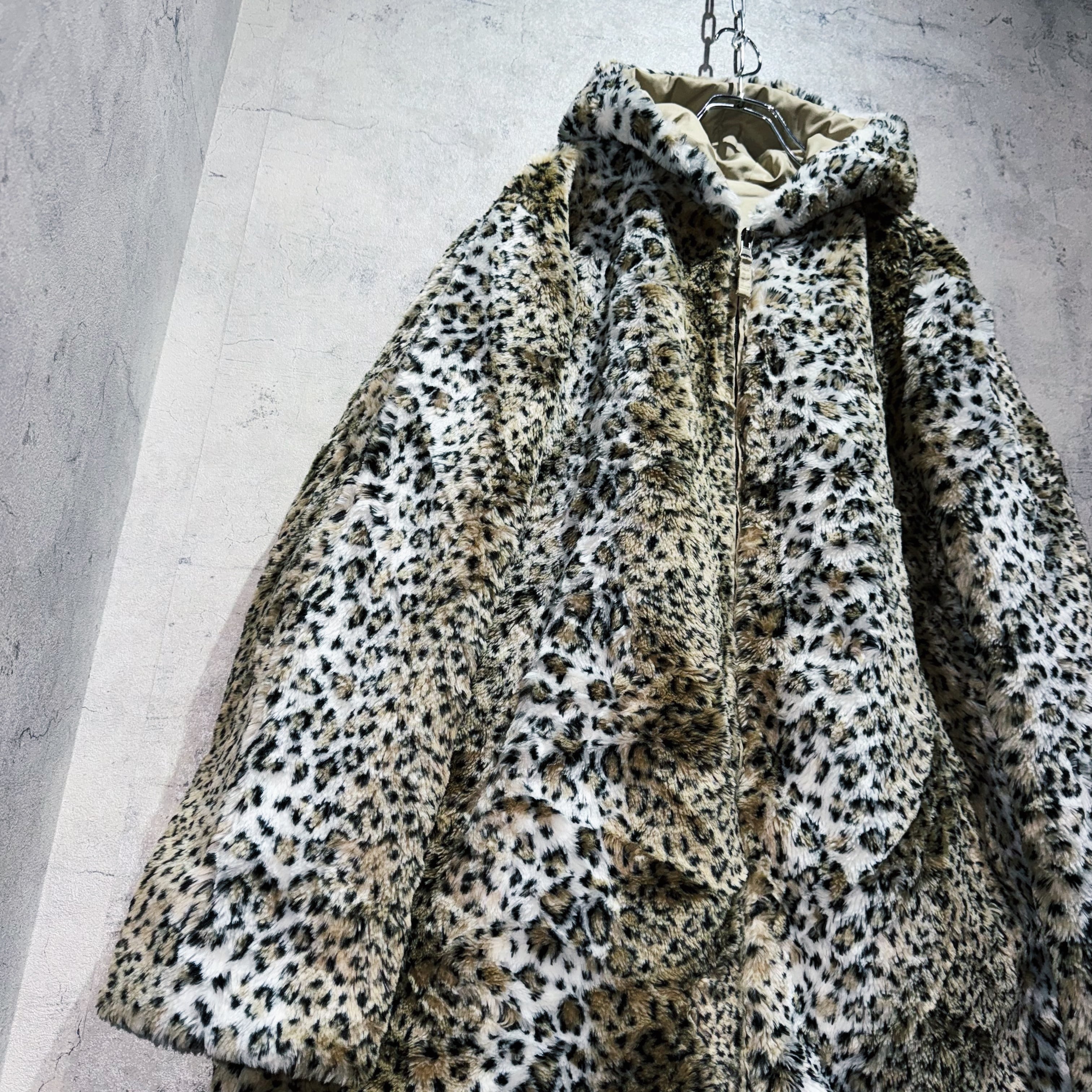 柔らかくふんわりとした一度触れればヤミツキになってしまうほどのモッフモフのファーを採用し、ラグジュアリーブランドでも採用されている高級感と色気を醸し出すレオパード柄を全面にあしらったヘビーアウター。品格のある佇まいまさに圧巻…