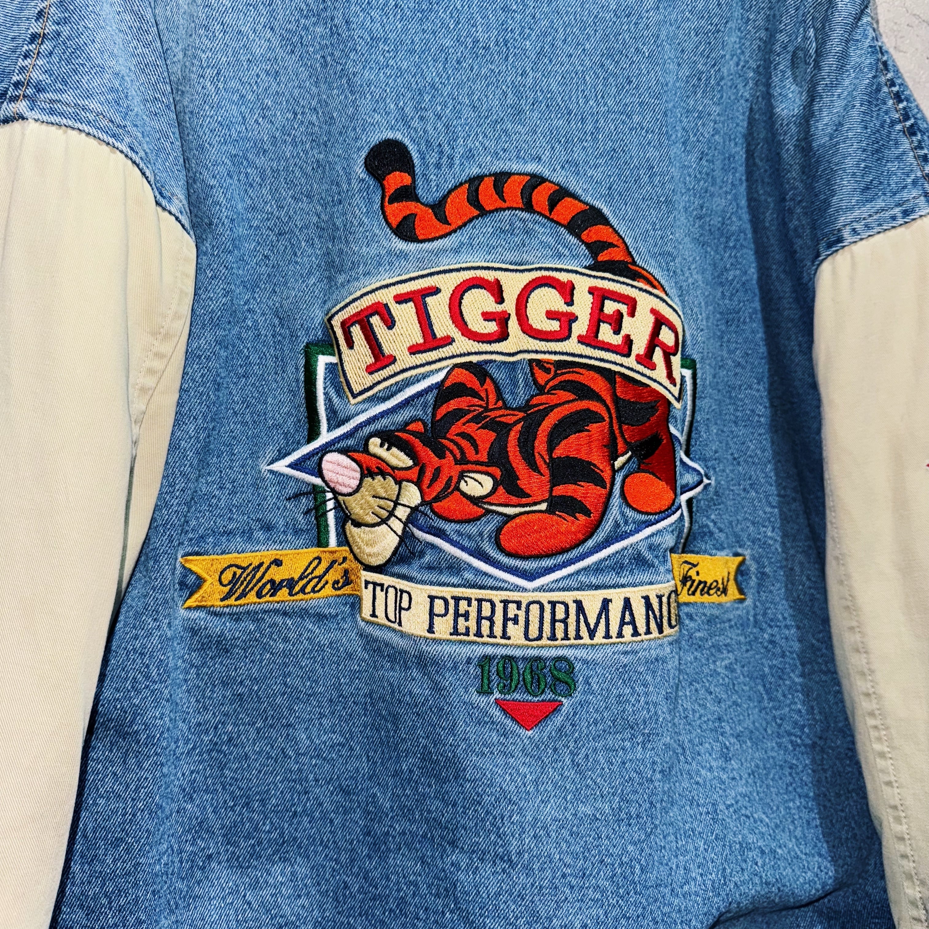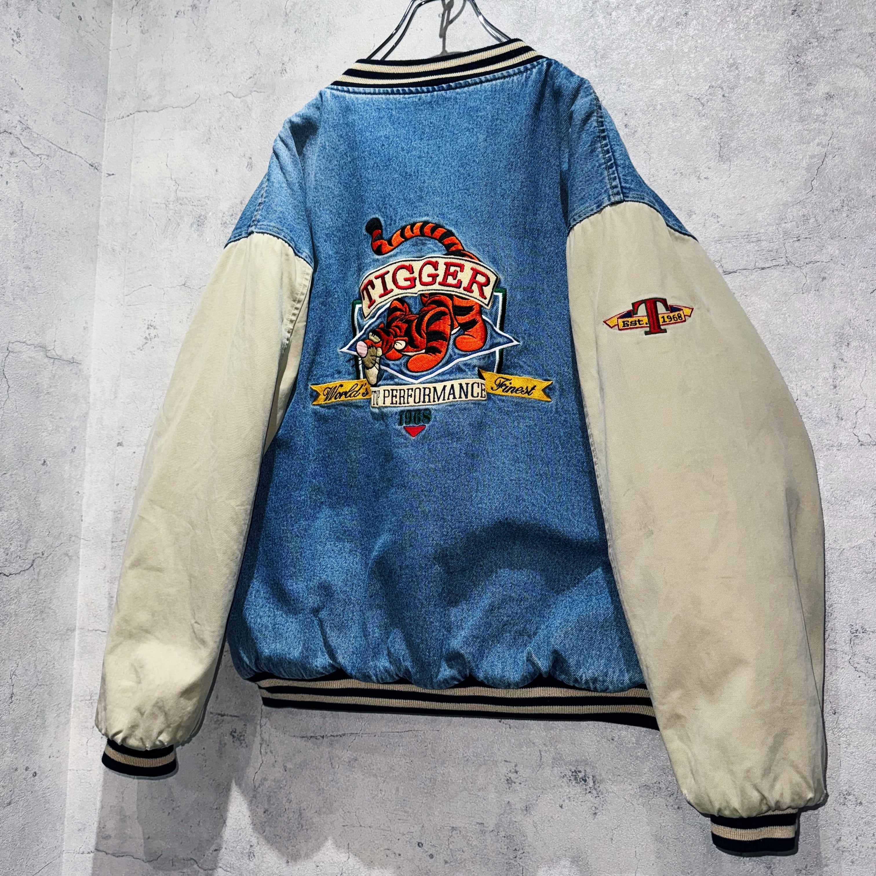 90’s”Disney”TIGGER embroidery design denim varsity jacket