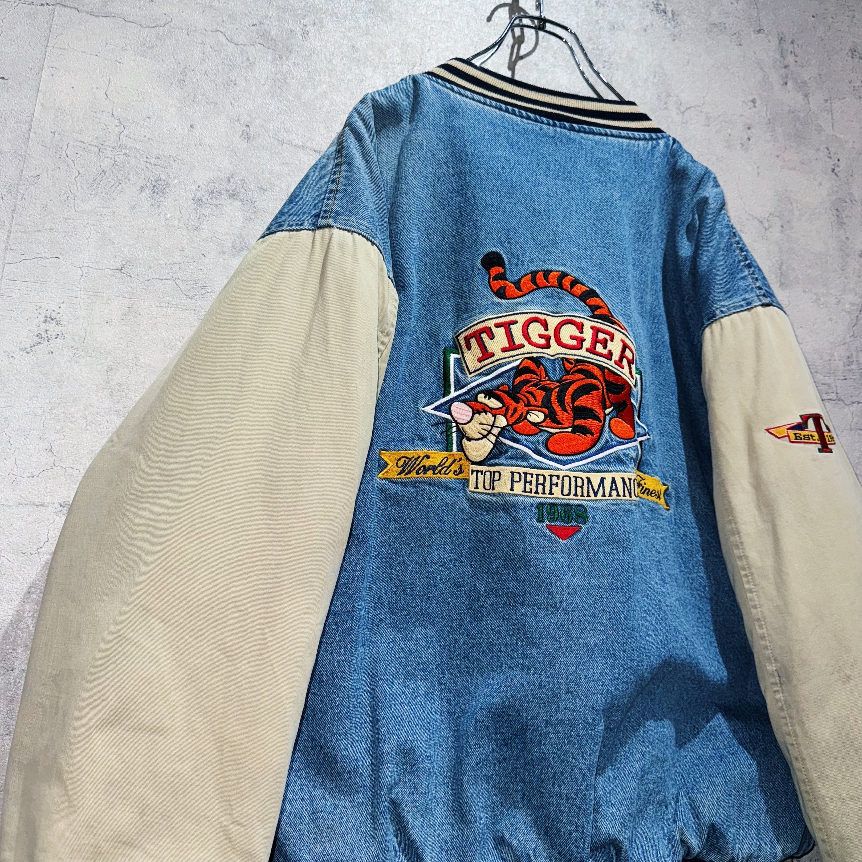 90年代”ディズニー”ティガーエンブロイダリーデザインデニムヴァーシティジャケット