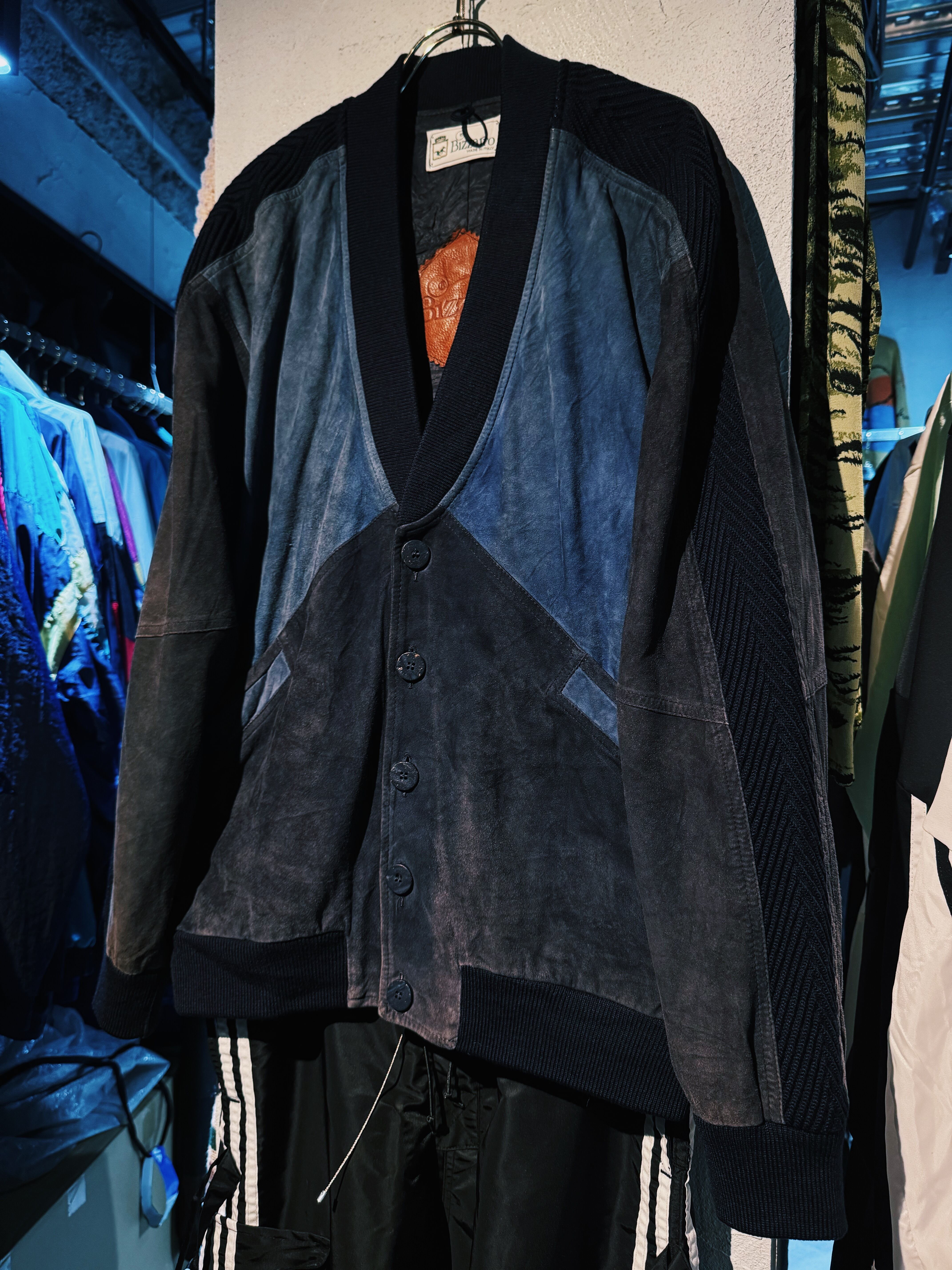 【D4C】vintage knit switching desgin suede leather cardigan jacket