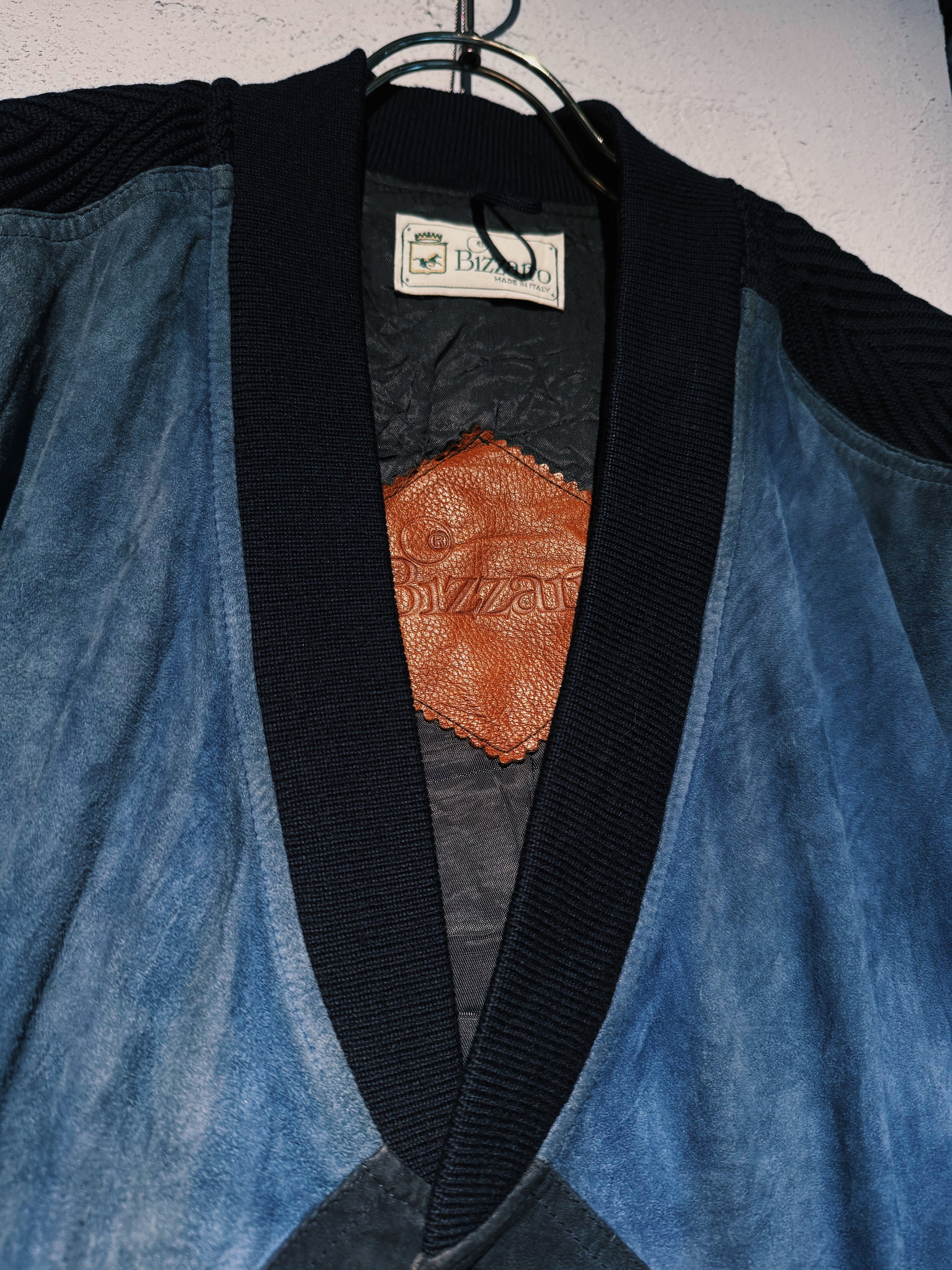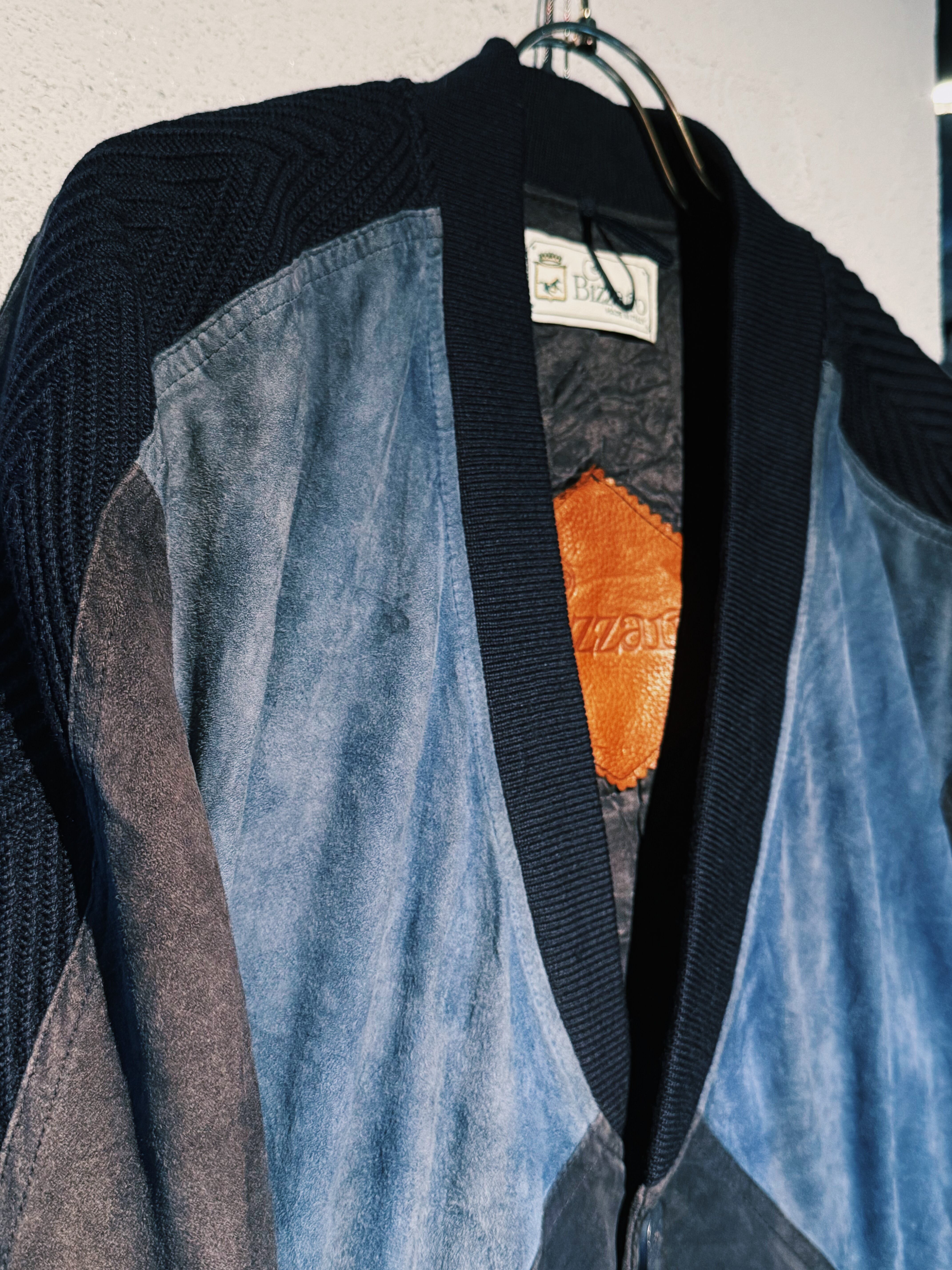 ヴィンテージニットスイッチングデザインスエードレザーカーディガンジャケット