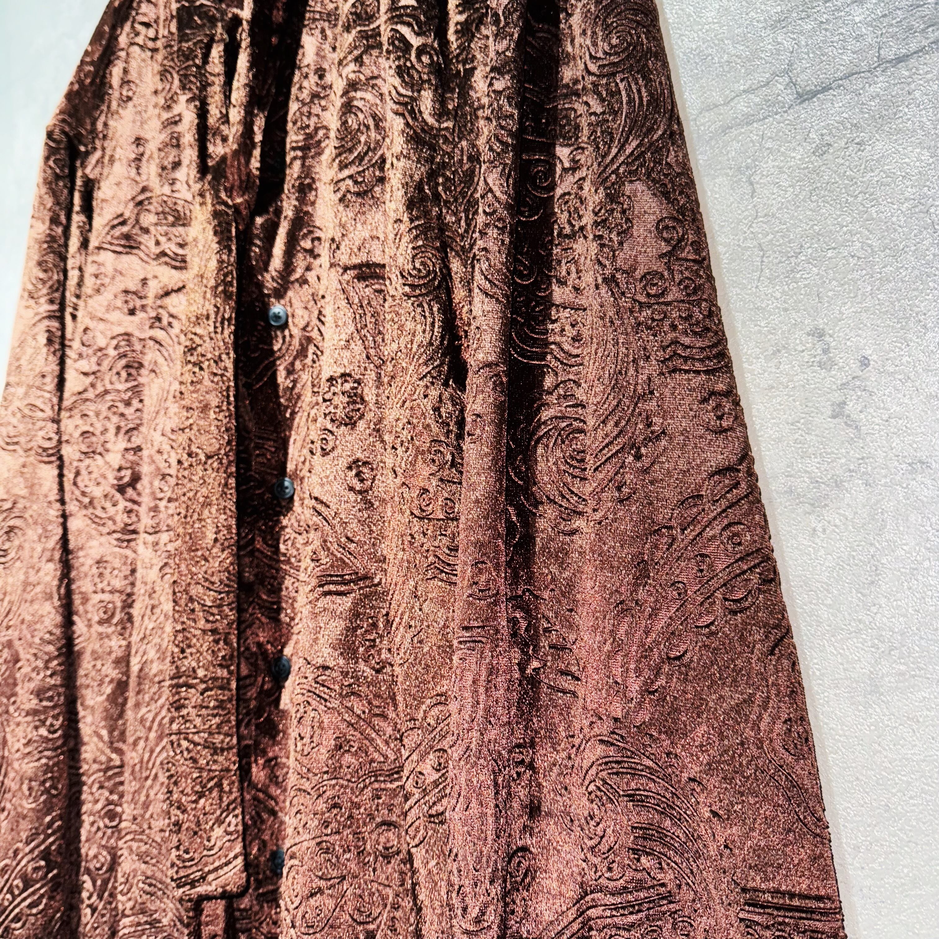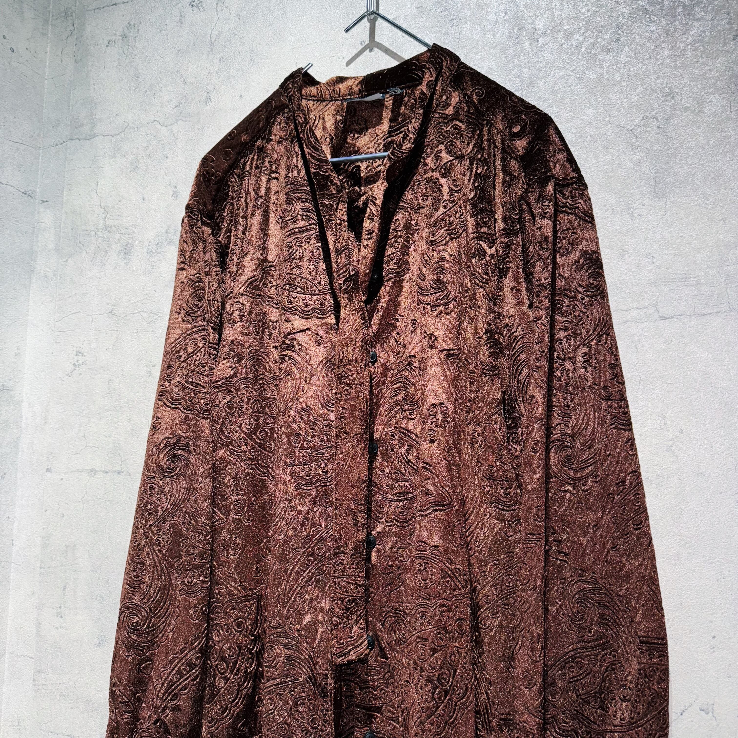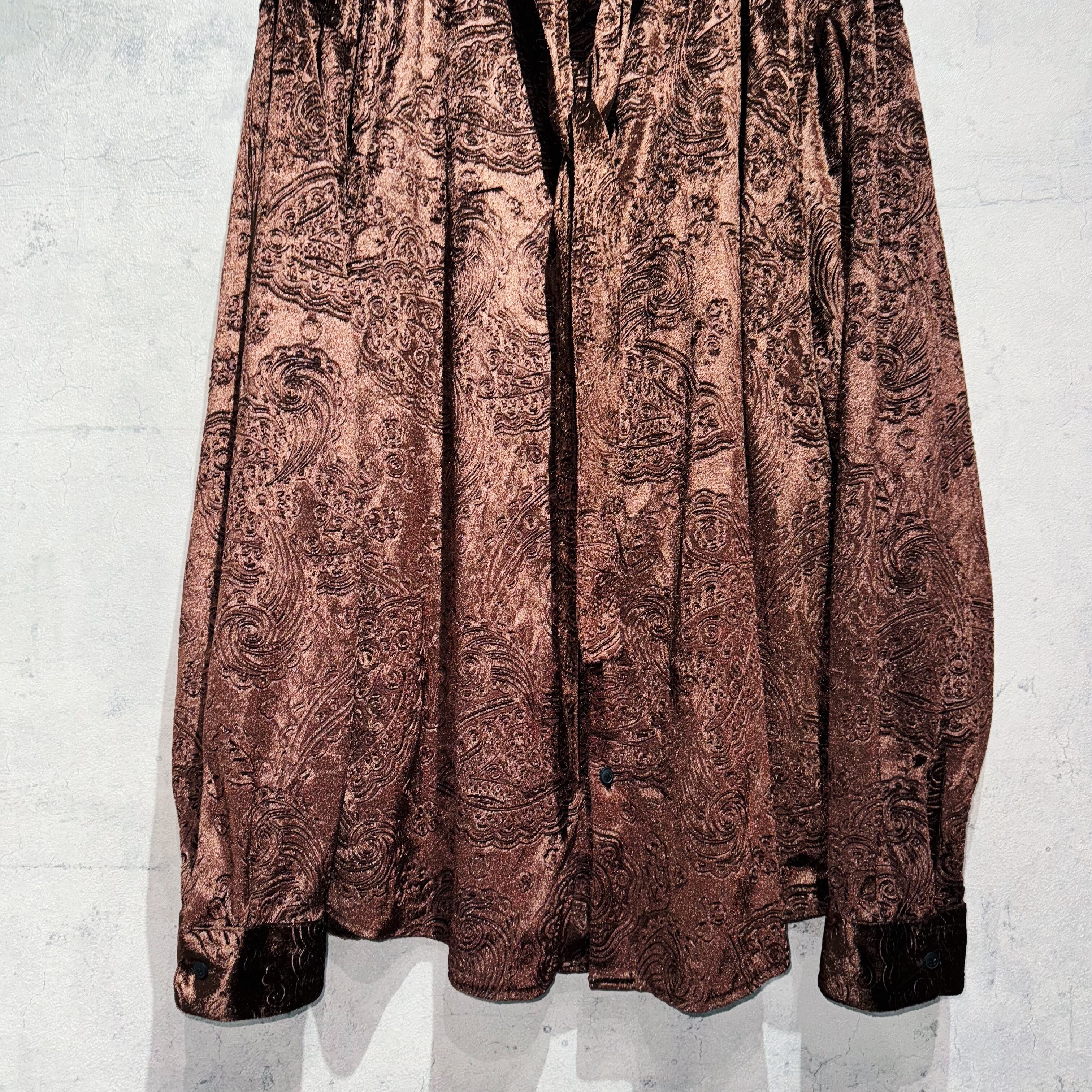 “Dead stock”paisley pattern design scarf collar velvet shirt