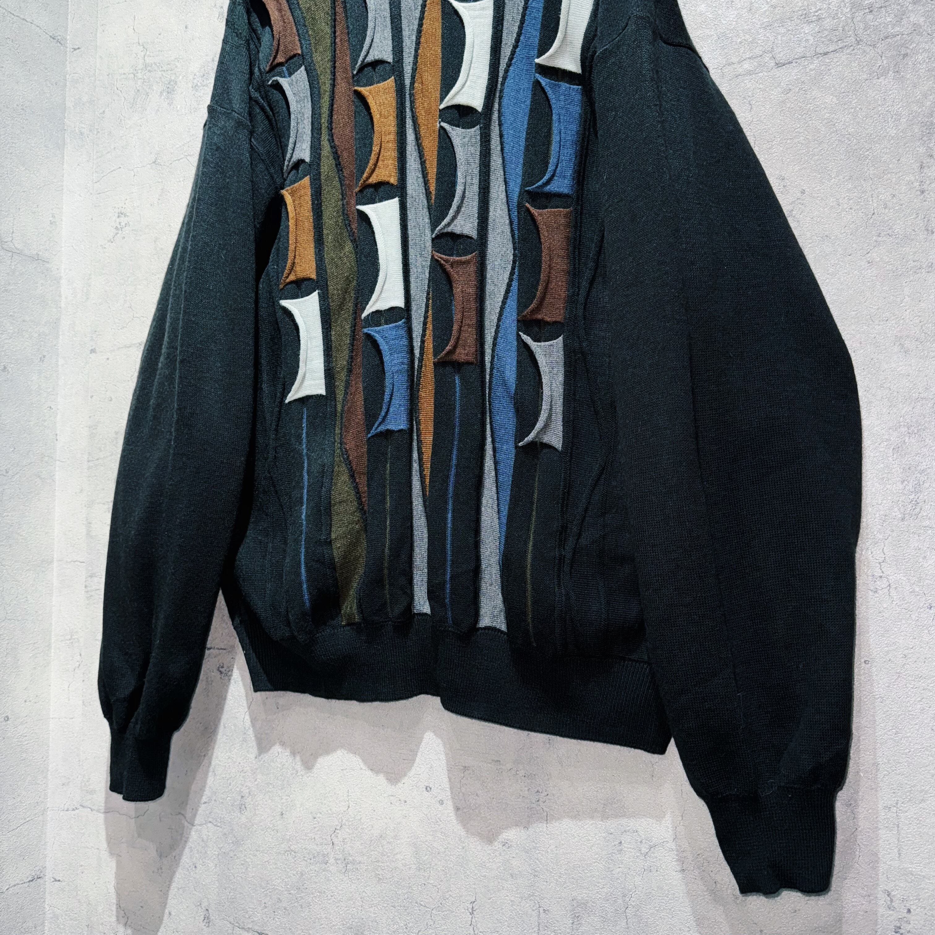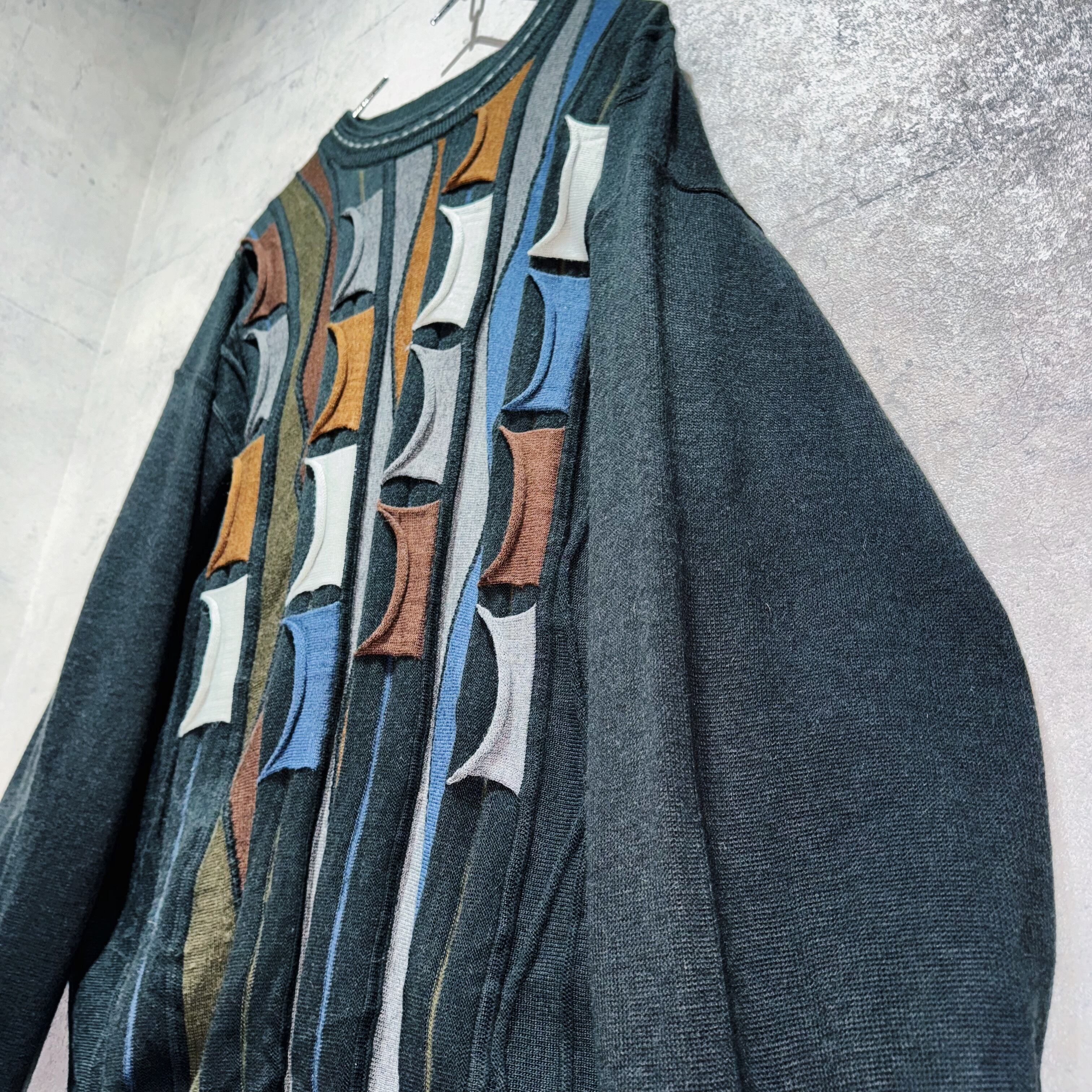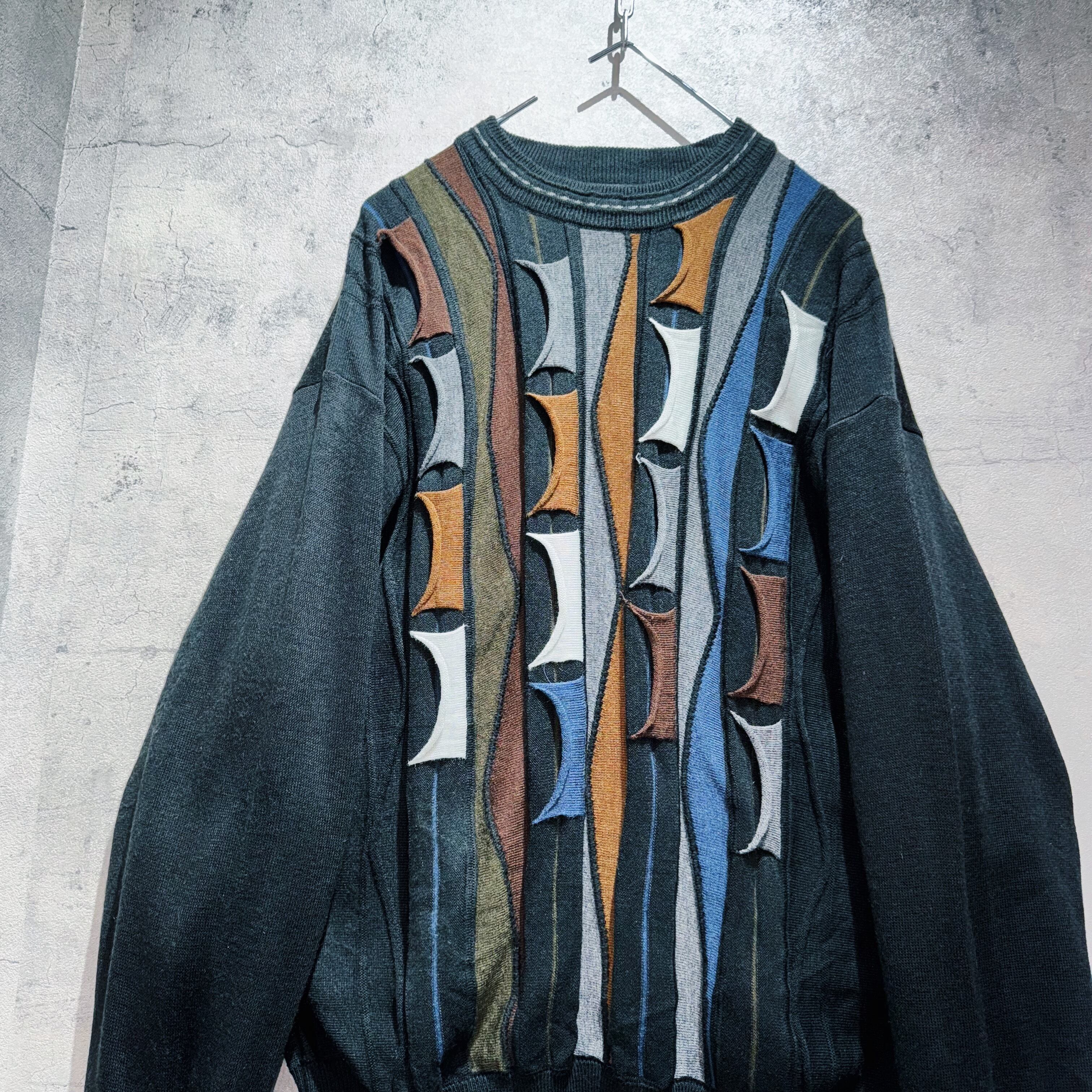 ヴィンテージ3Dデザインスイッチングルーズプルオーバーニット