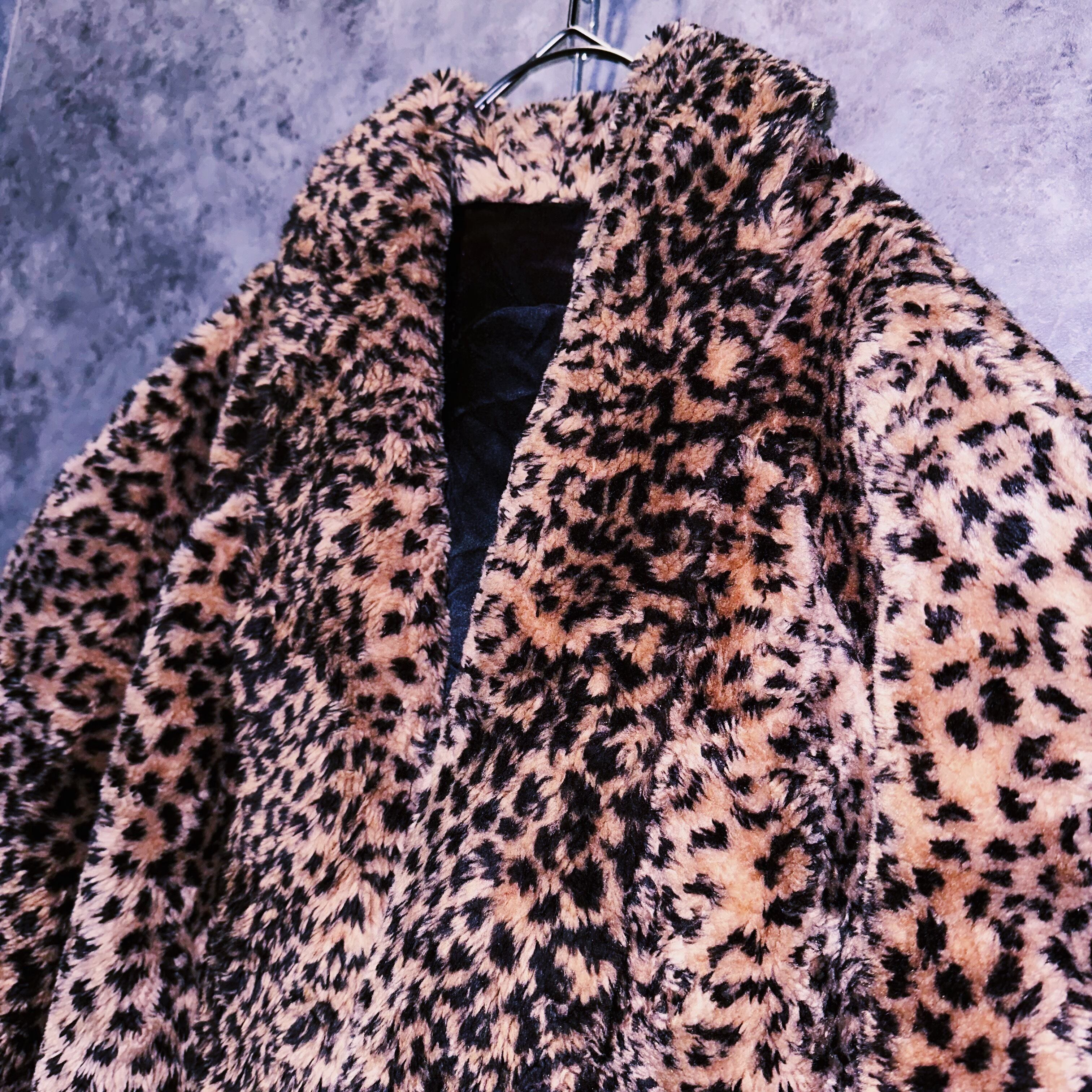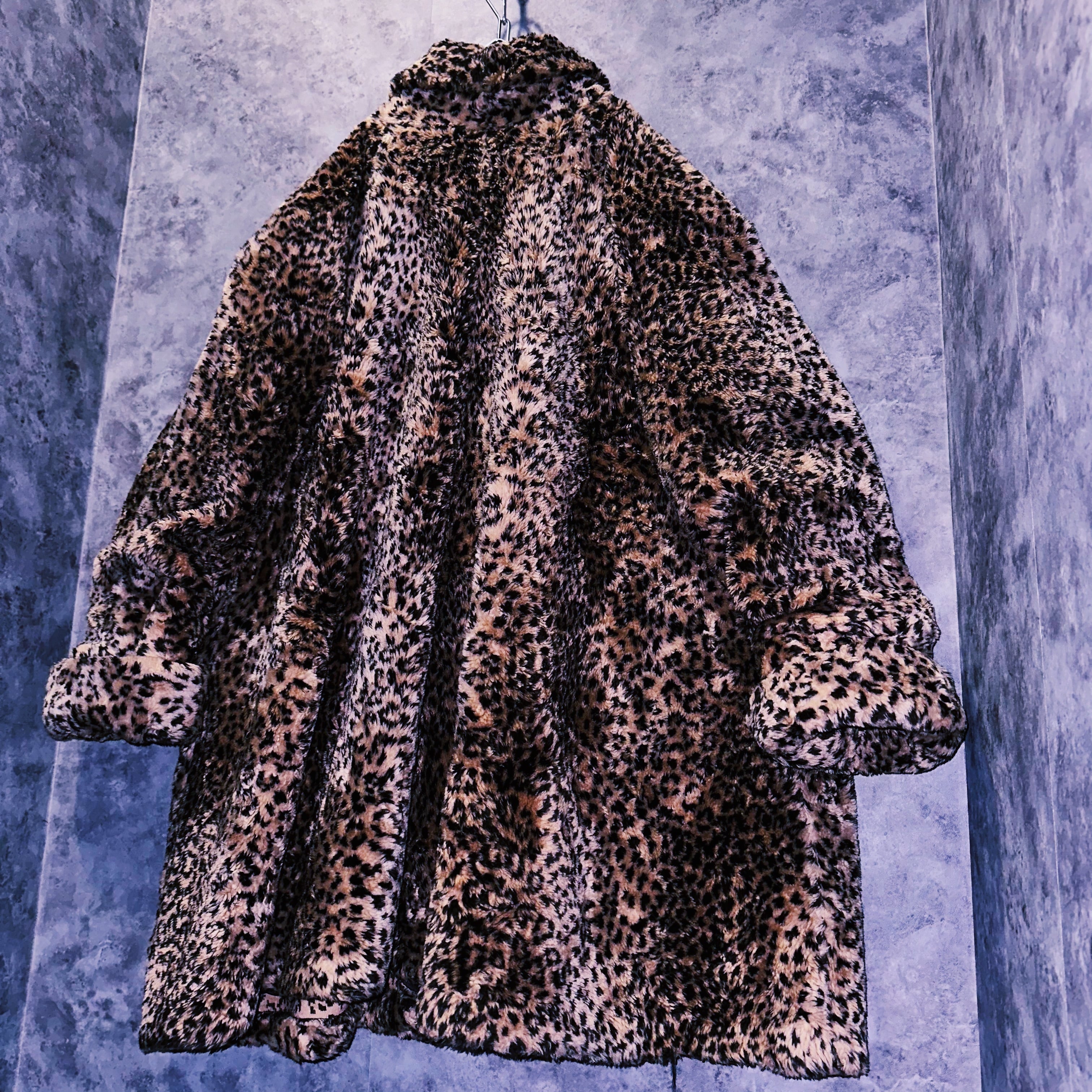 ヴィンテージレオパードパターンボアデザインルーズファーコート
