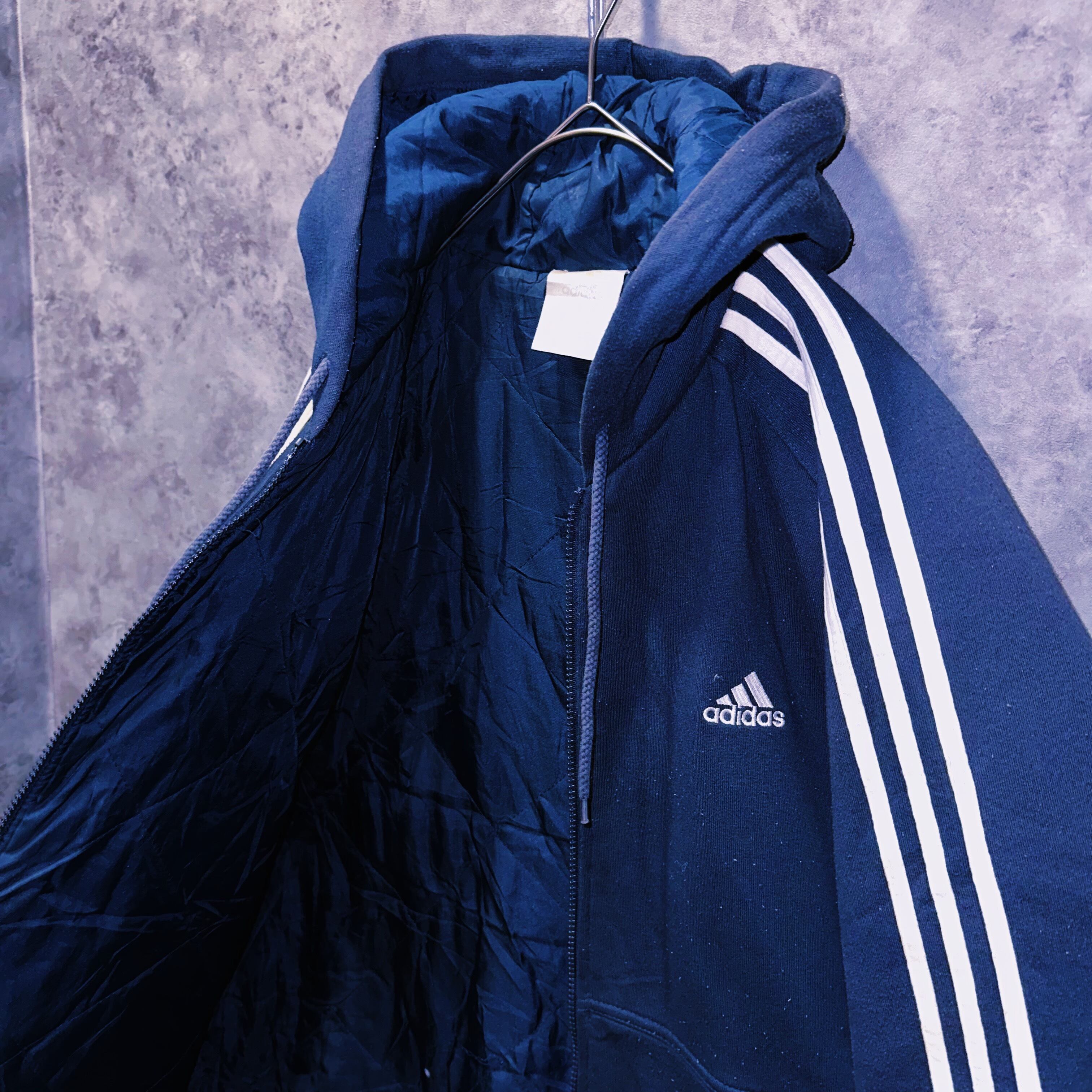 90'sヴィンテージ"adidas"キルティングデザインスリーストライプフーディージャケット