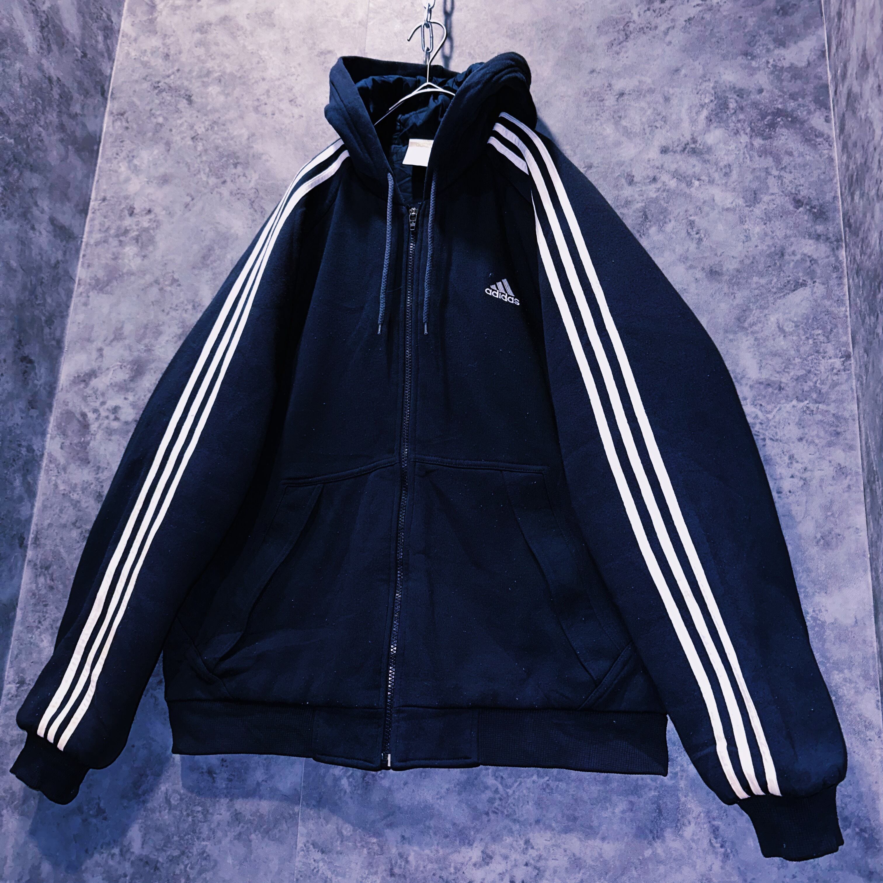 adidasらしさのあるスリーストライプデザインでジップフーディータイプは気軽に使えるところから重宝される日常的なタウンユースアイテムになること間違いなし。