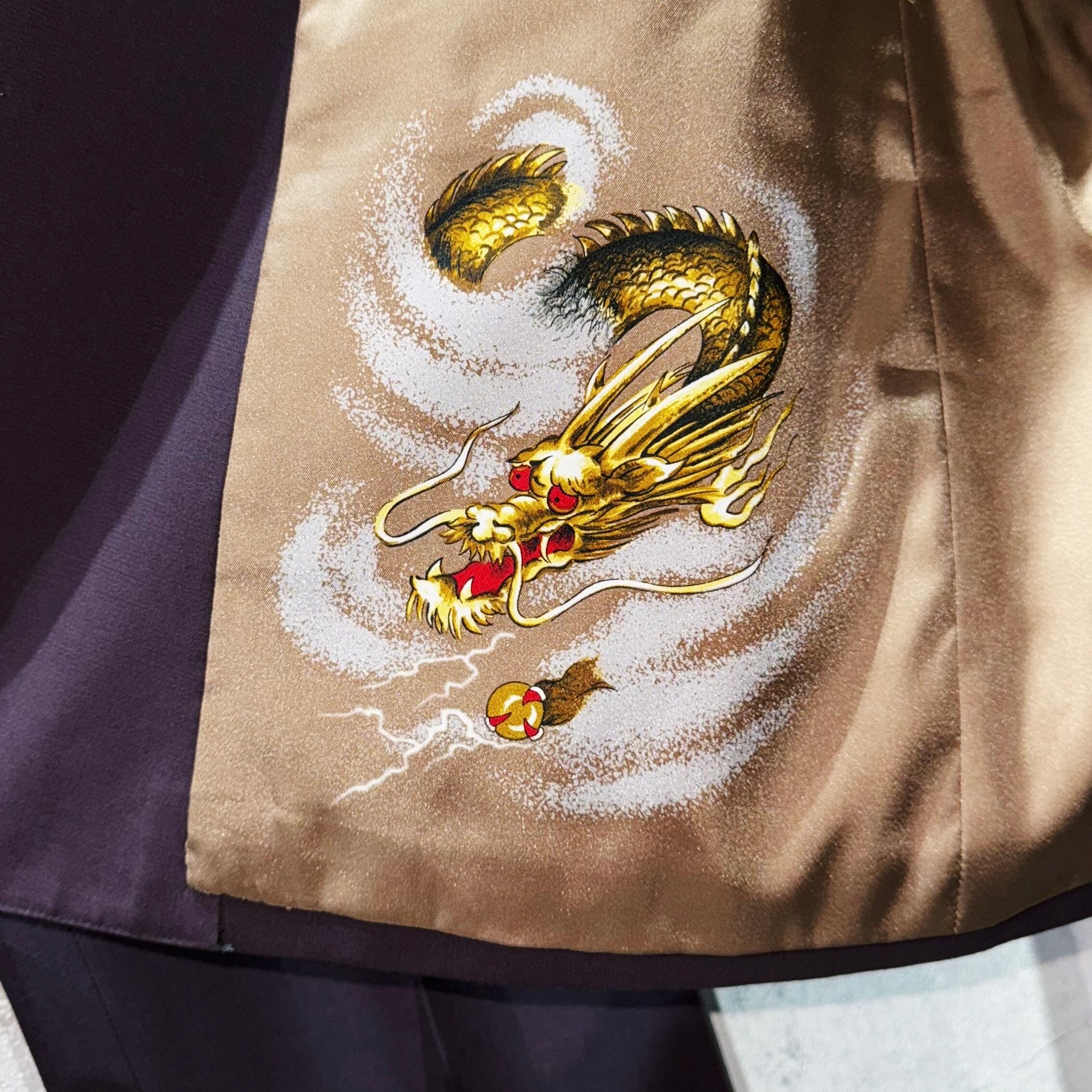 なんといっても魅力的なのが裏地に施された龍のデザイン。裏地にデザインを施しているのがヴィンテージならではのディテールで、特に和柄は存在感もあってかなり粋なデザインかと。