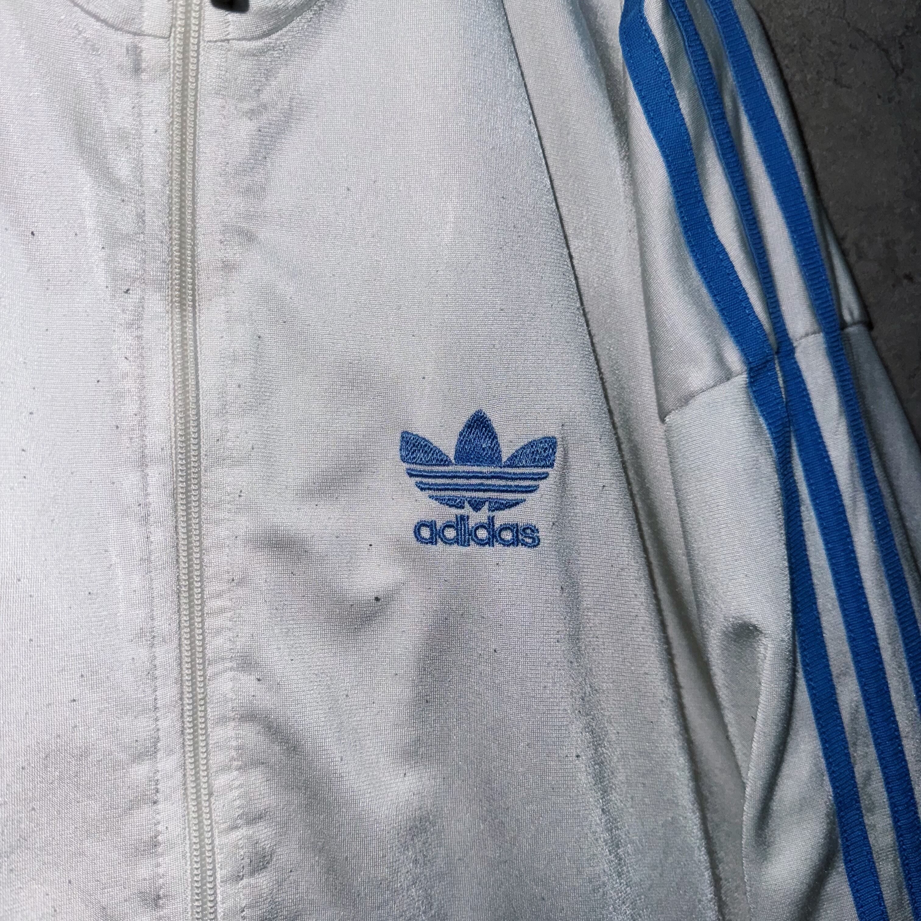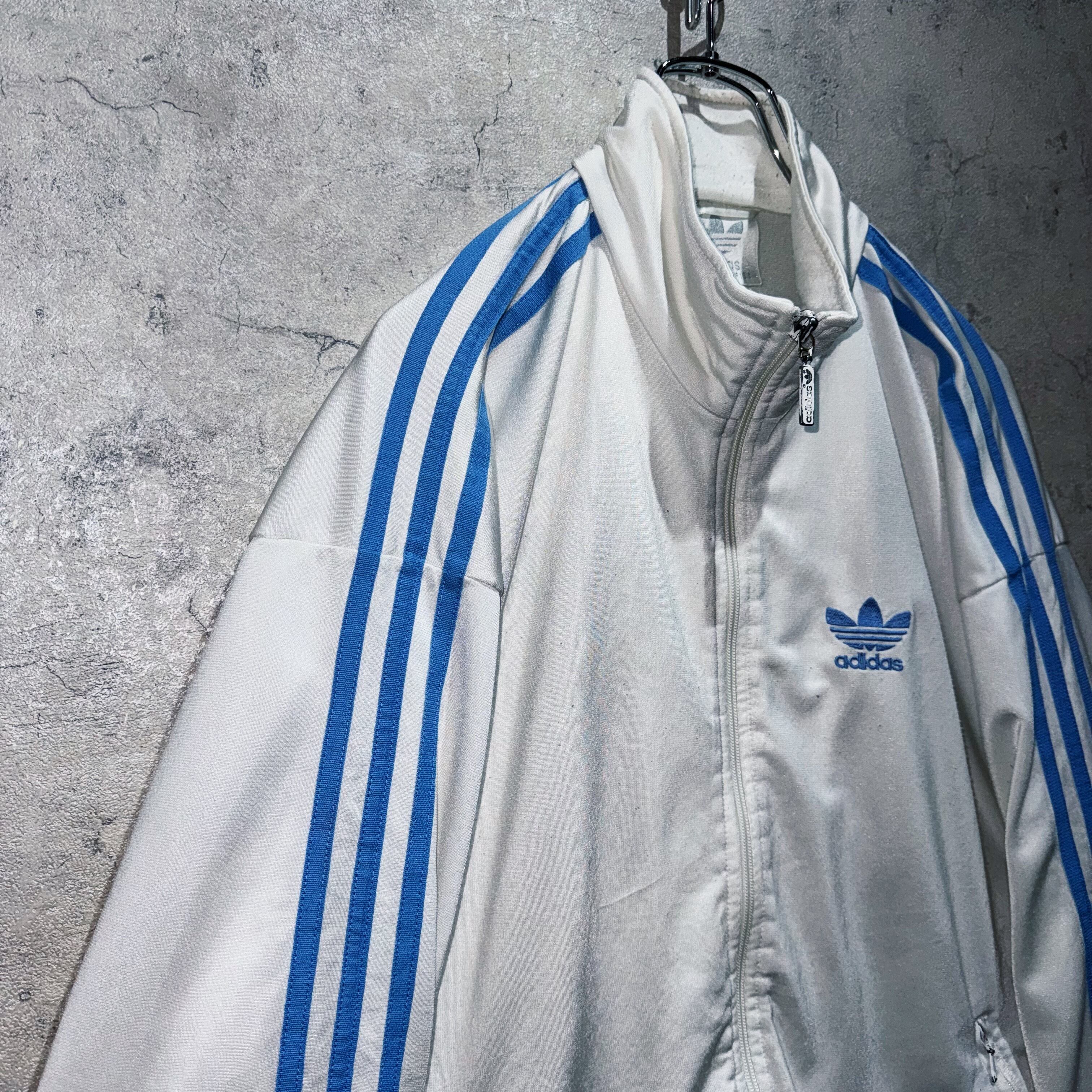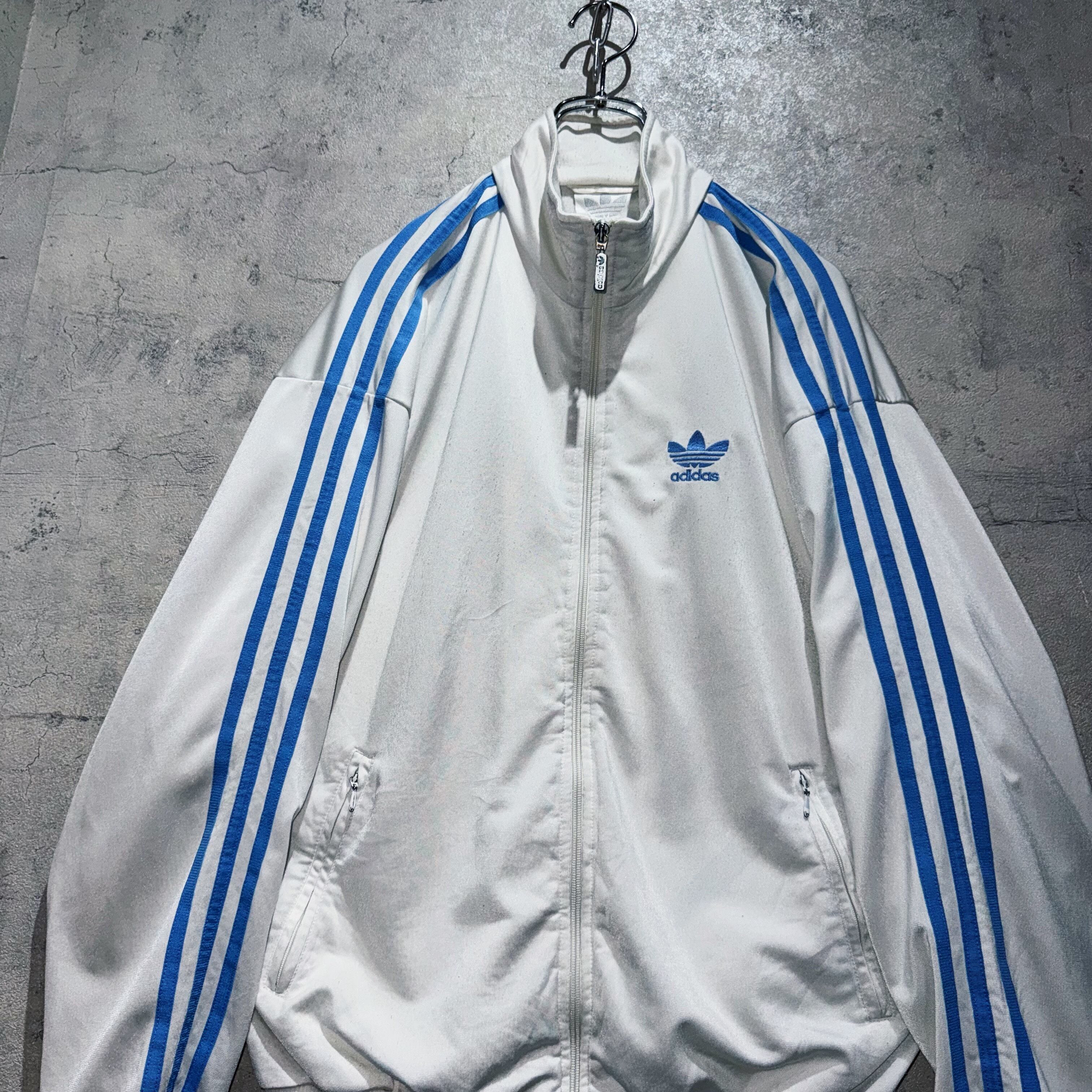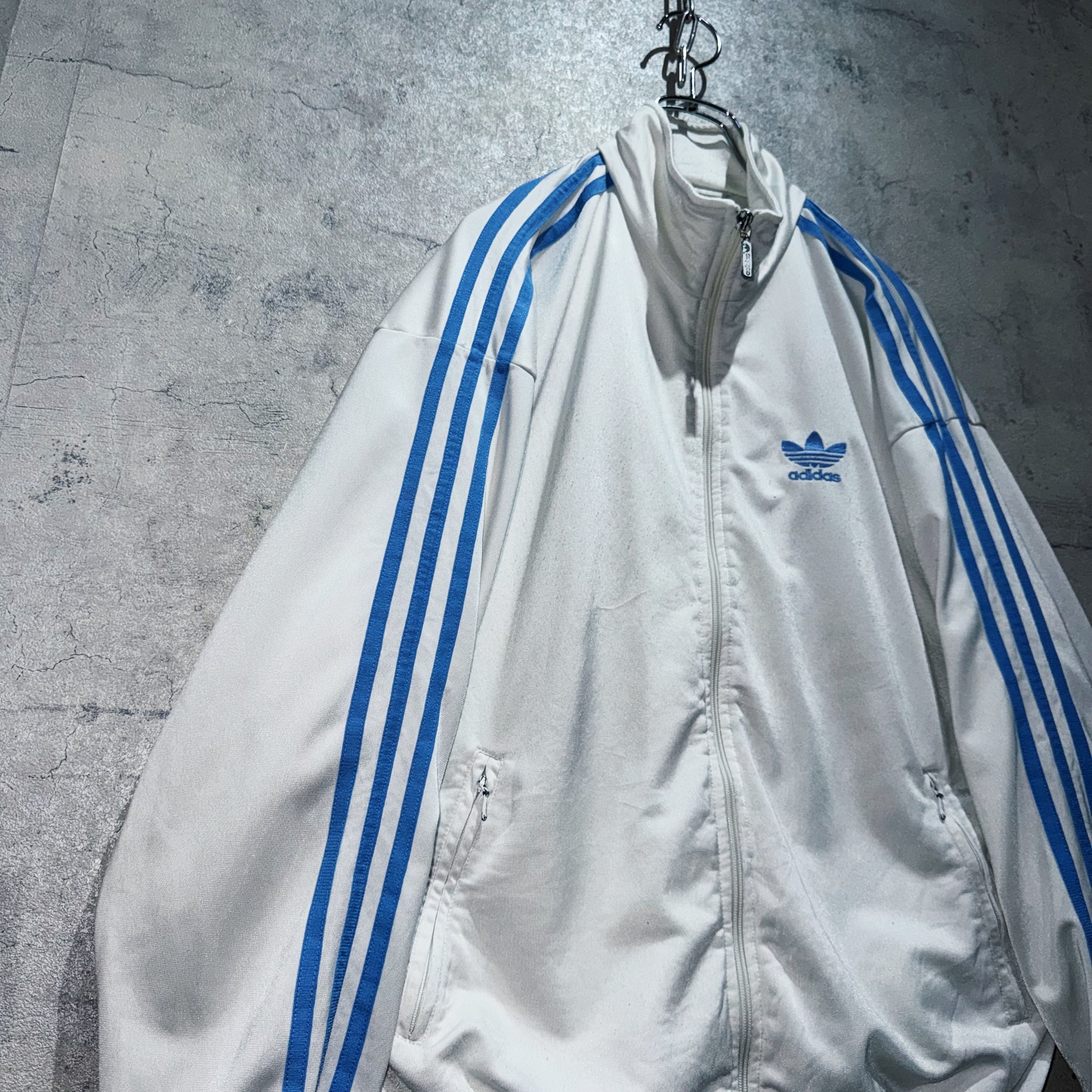 80年代”アディダス”ユーロヴィンテージホワイト×ブルースタンドネックトラックジャケット
