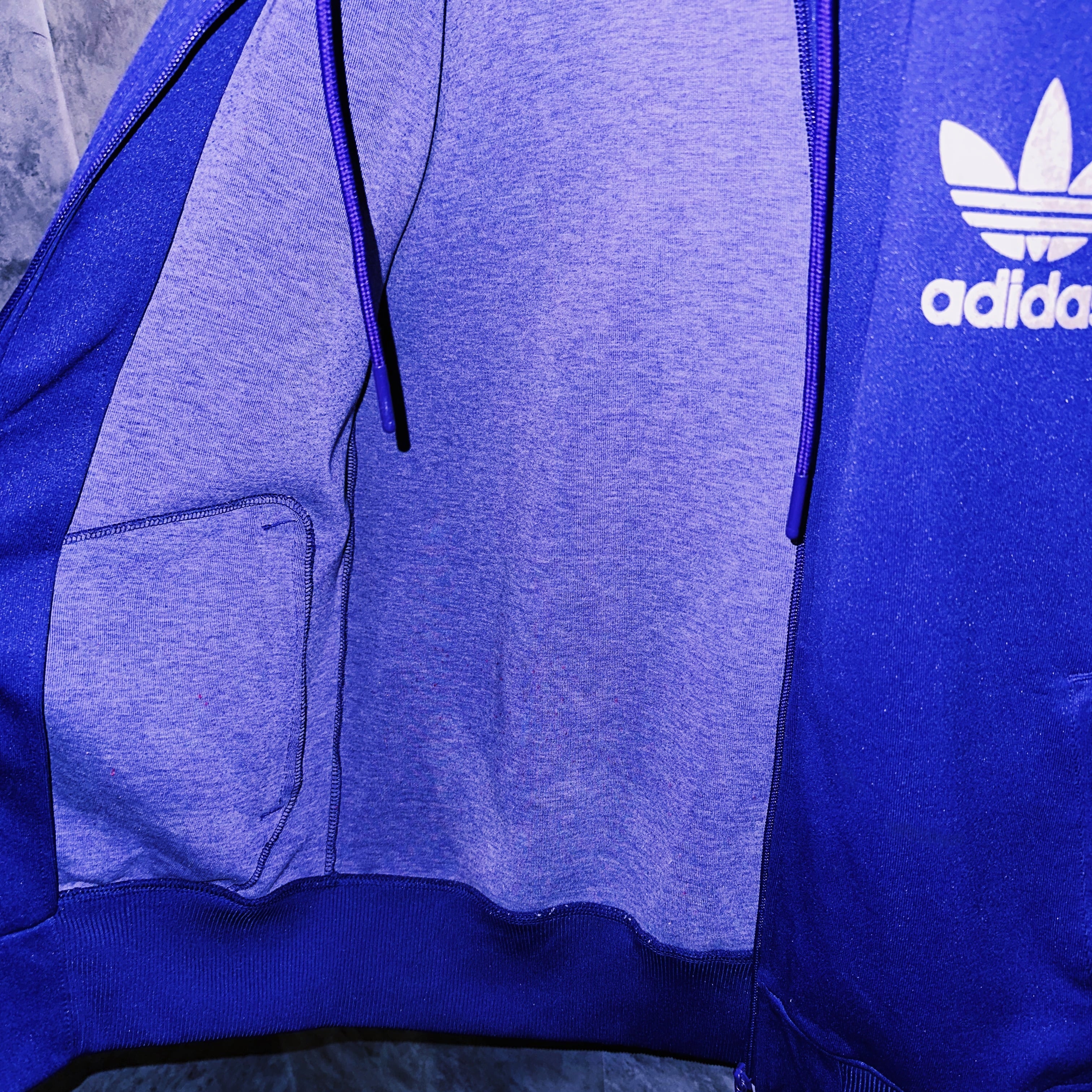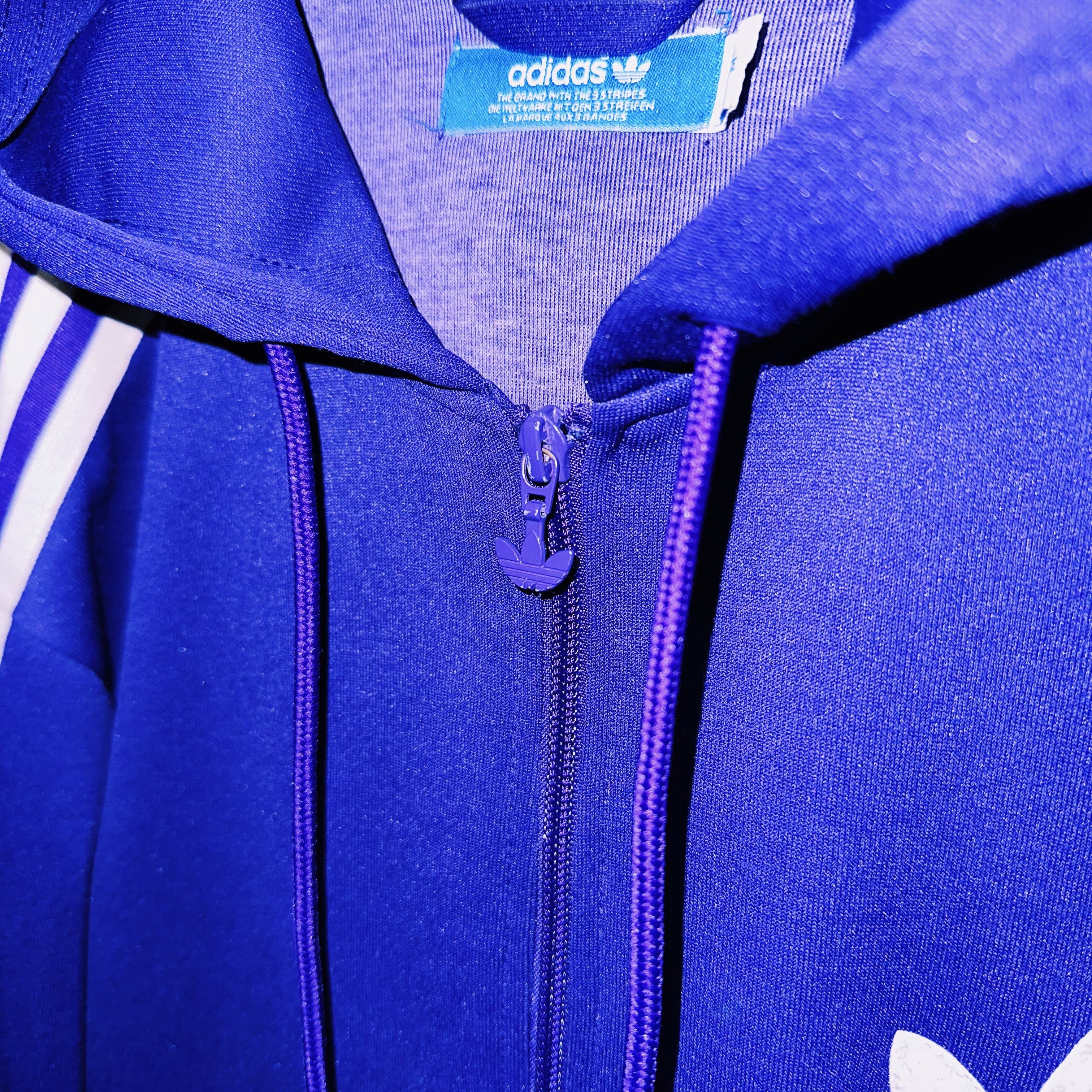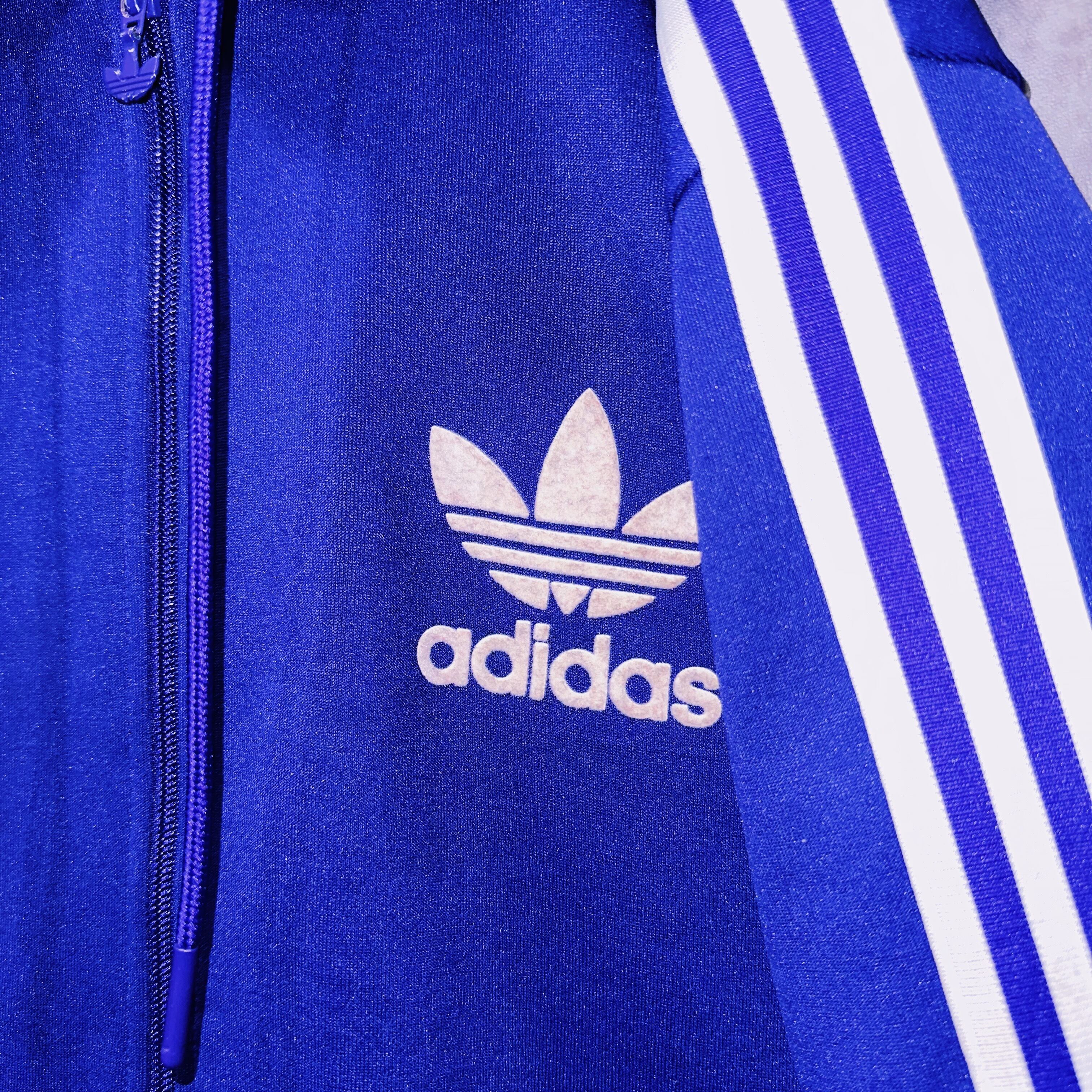 なかなかお目にかかれないロイヤルパープルのボディにアクセントになったトレフォイルロゴと3ストライプスが施された圧巻のデザインのトラックジャケット。