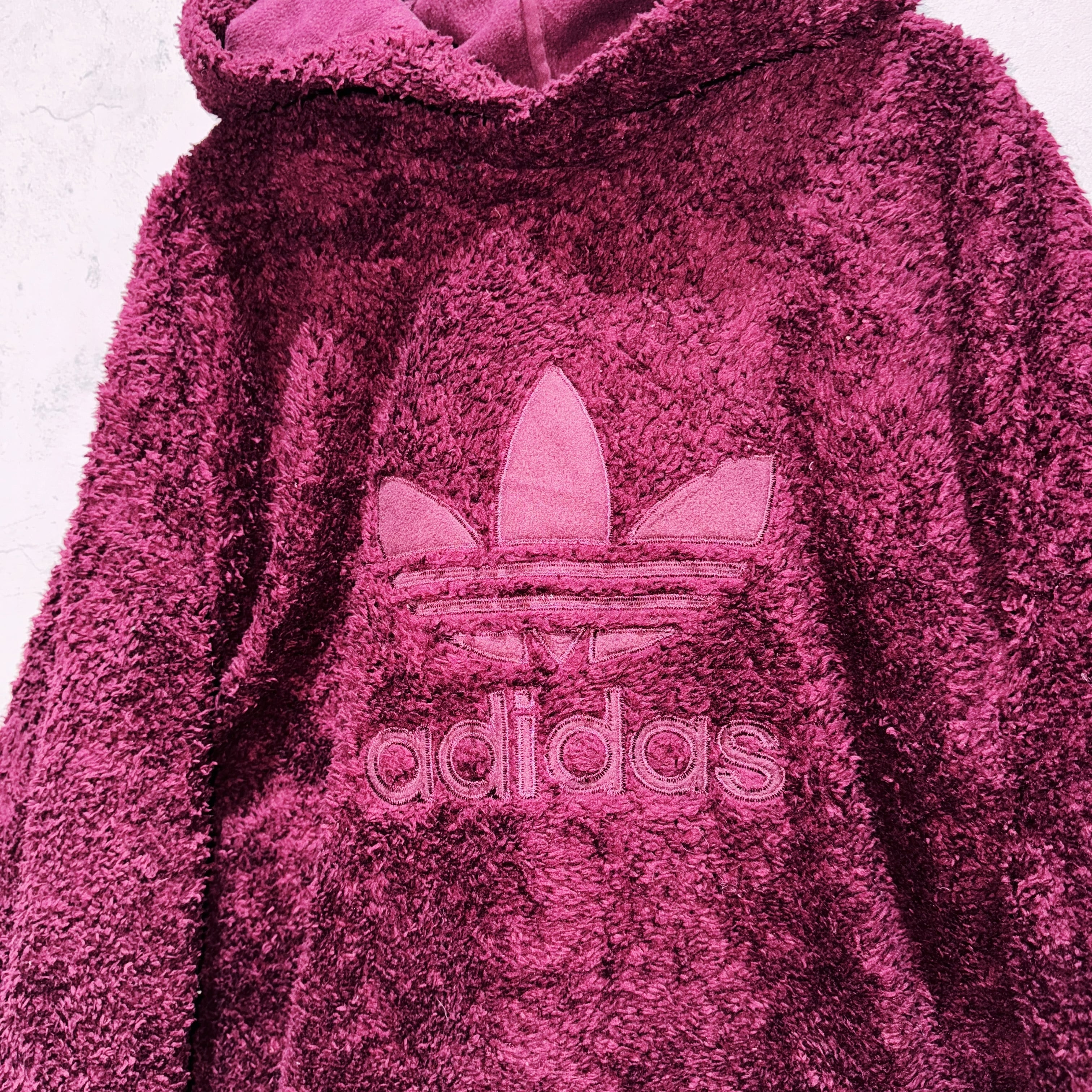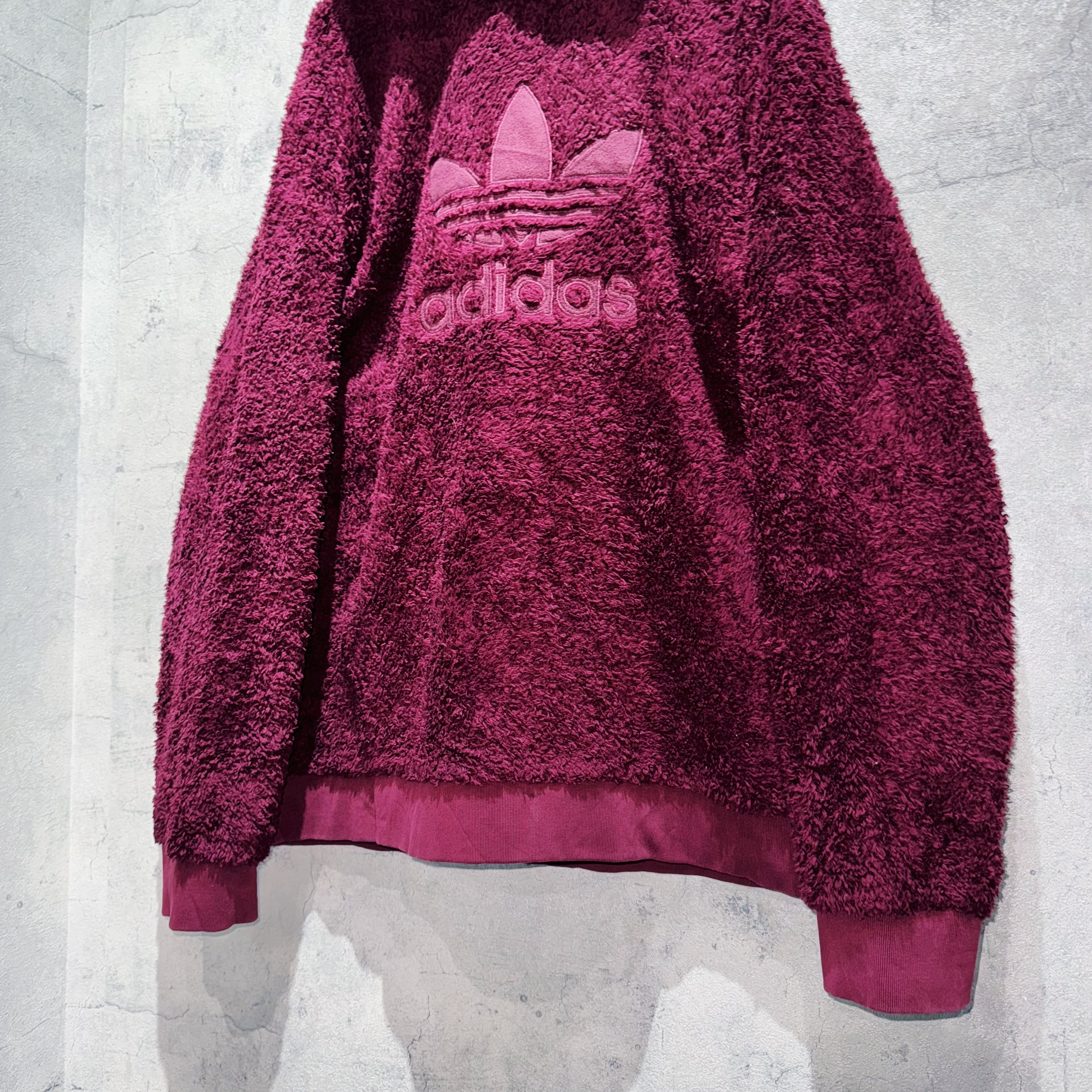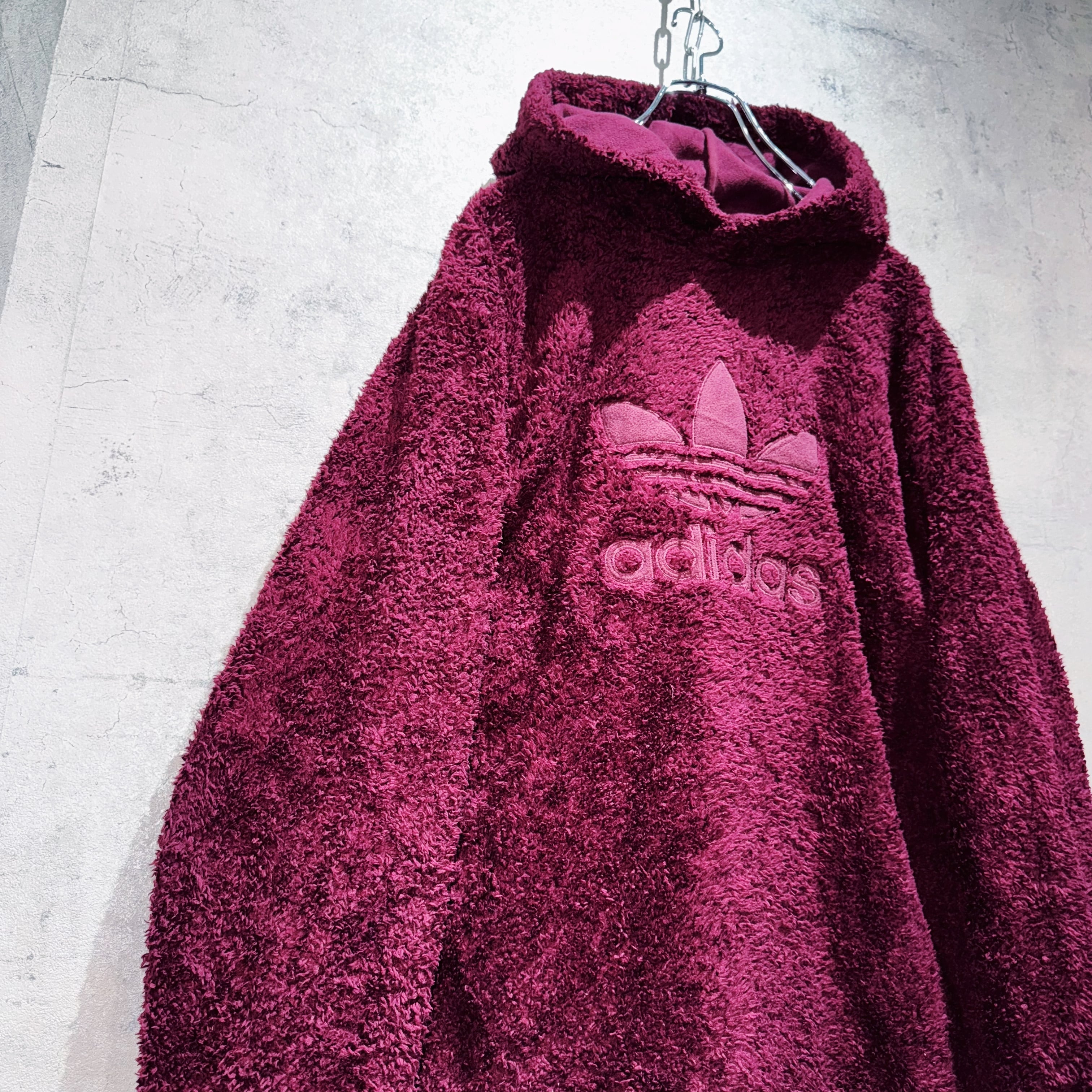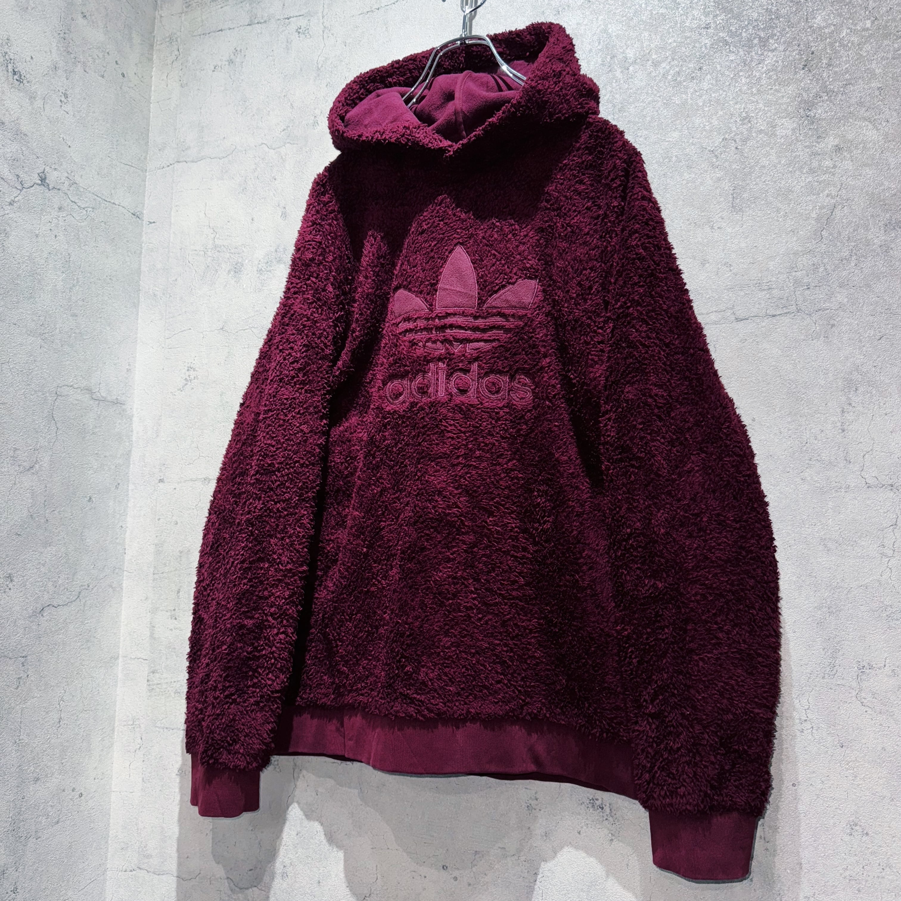 ”アディダスオリジナルス”フリースマテリアルワインレッドカラープルオーバーフーディー