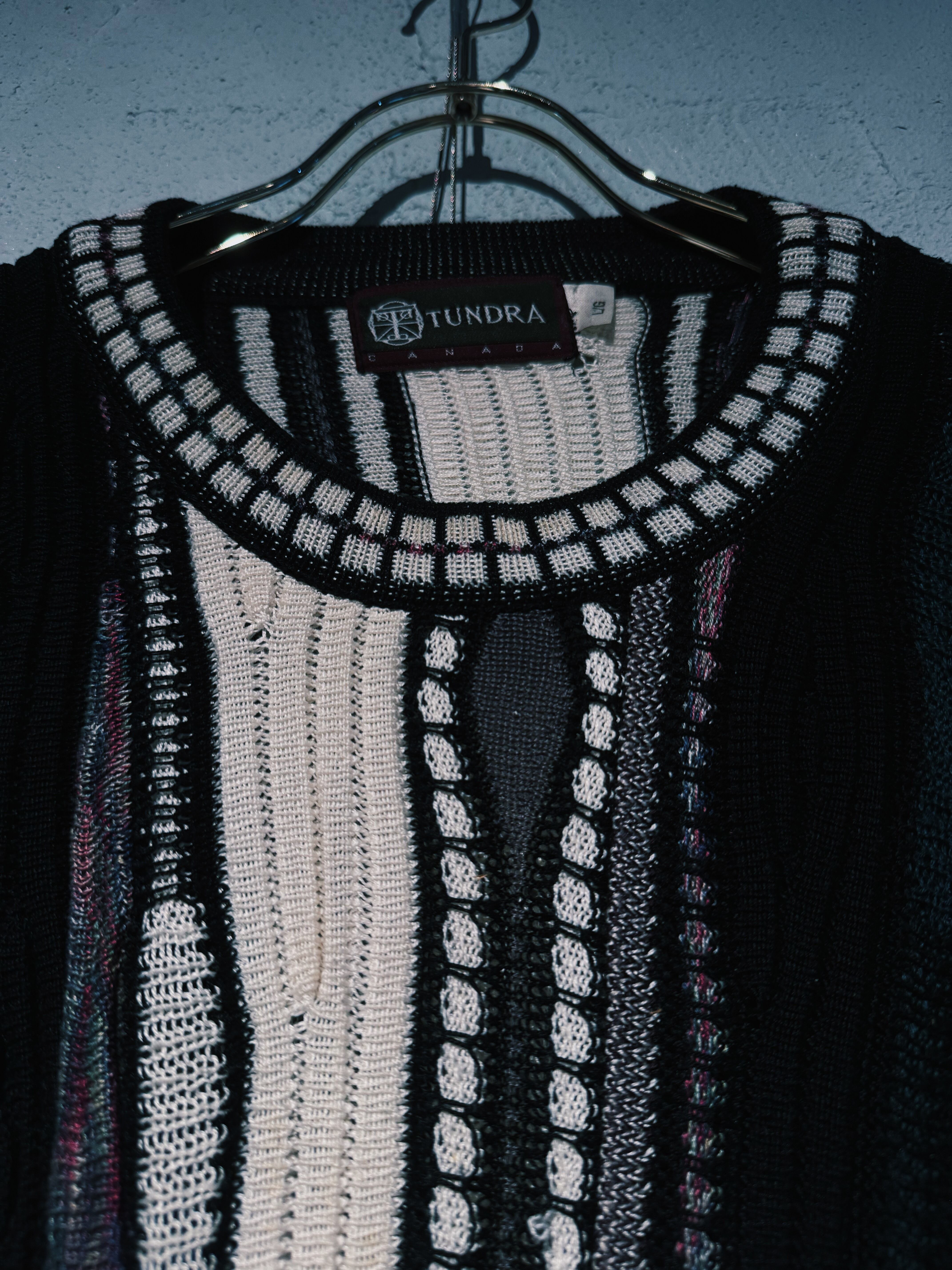 90年代ヴィンテージ"TUNDRA"マルチカラーデザイン3Dニットプルオーバー