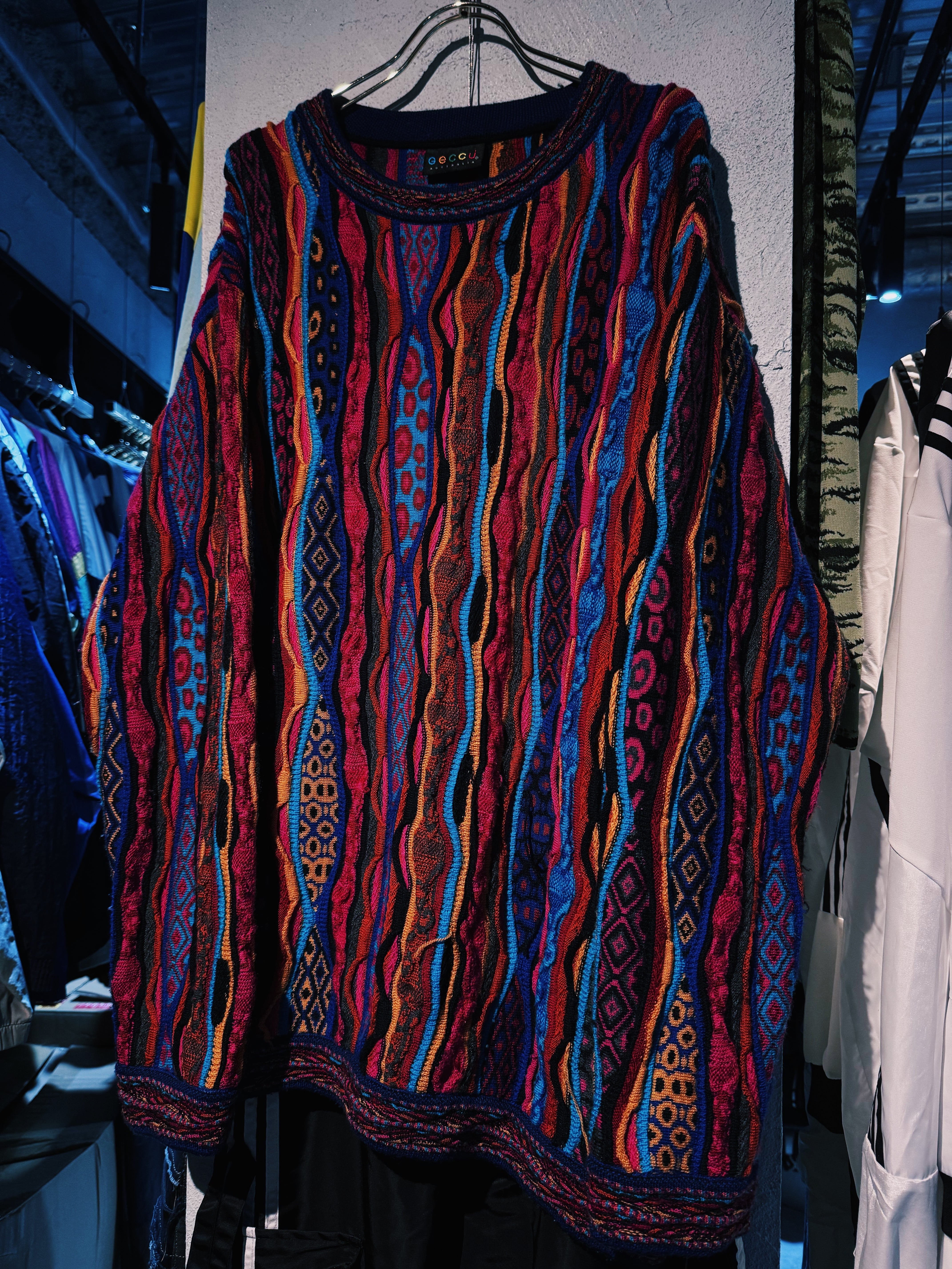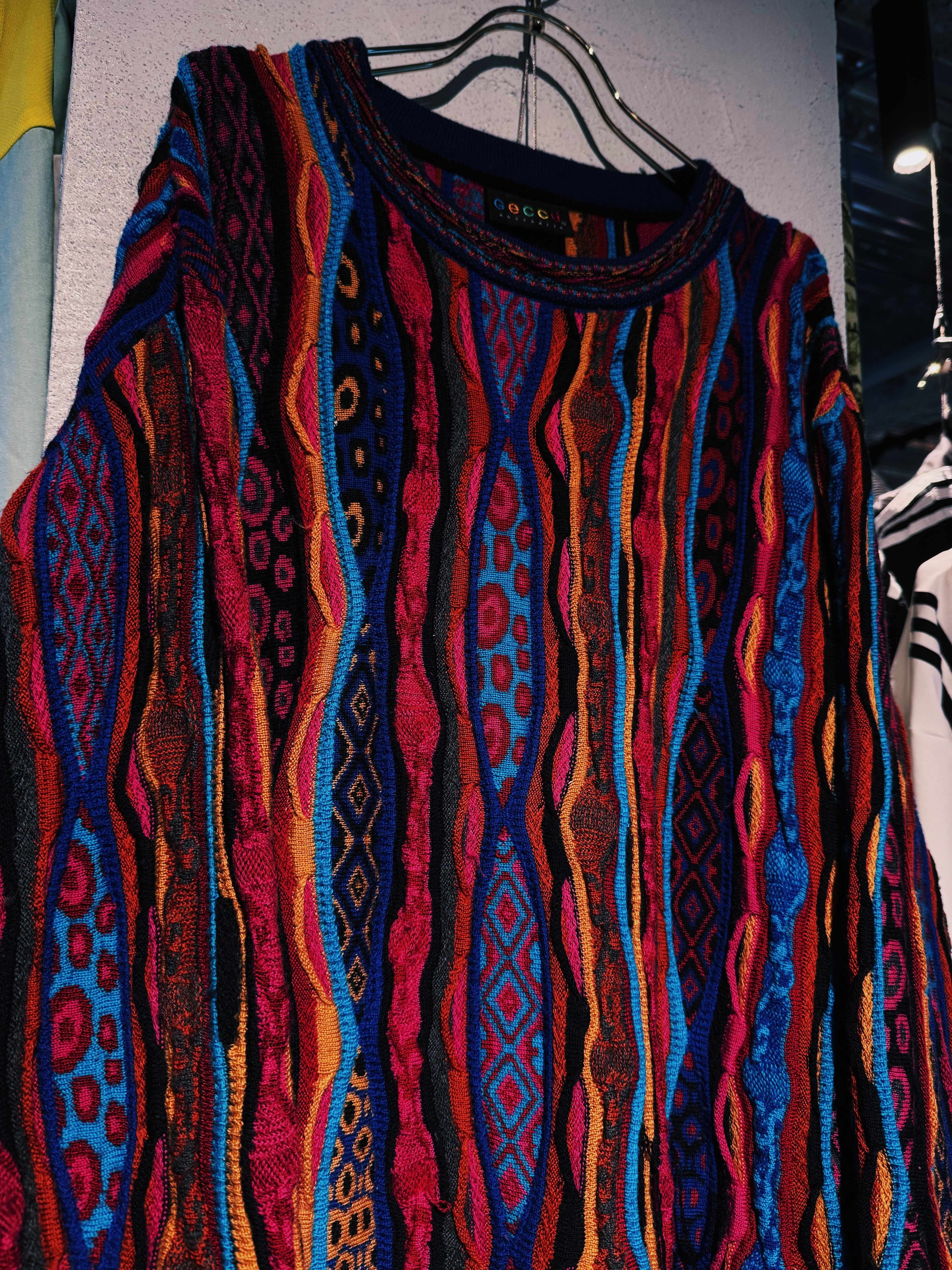 90年代頃、世界的に大流行したカラフルな立体編みが特徴的な3Dニット。個性的な発色の良さが目を惹き、その人気は衰えることを知らず現在でも人気の高い、定番ヴィンテージアイテムです。