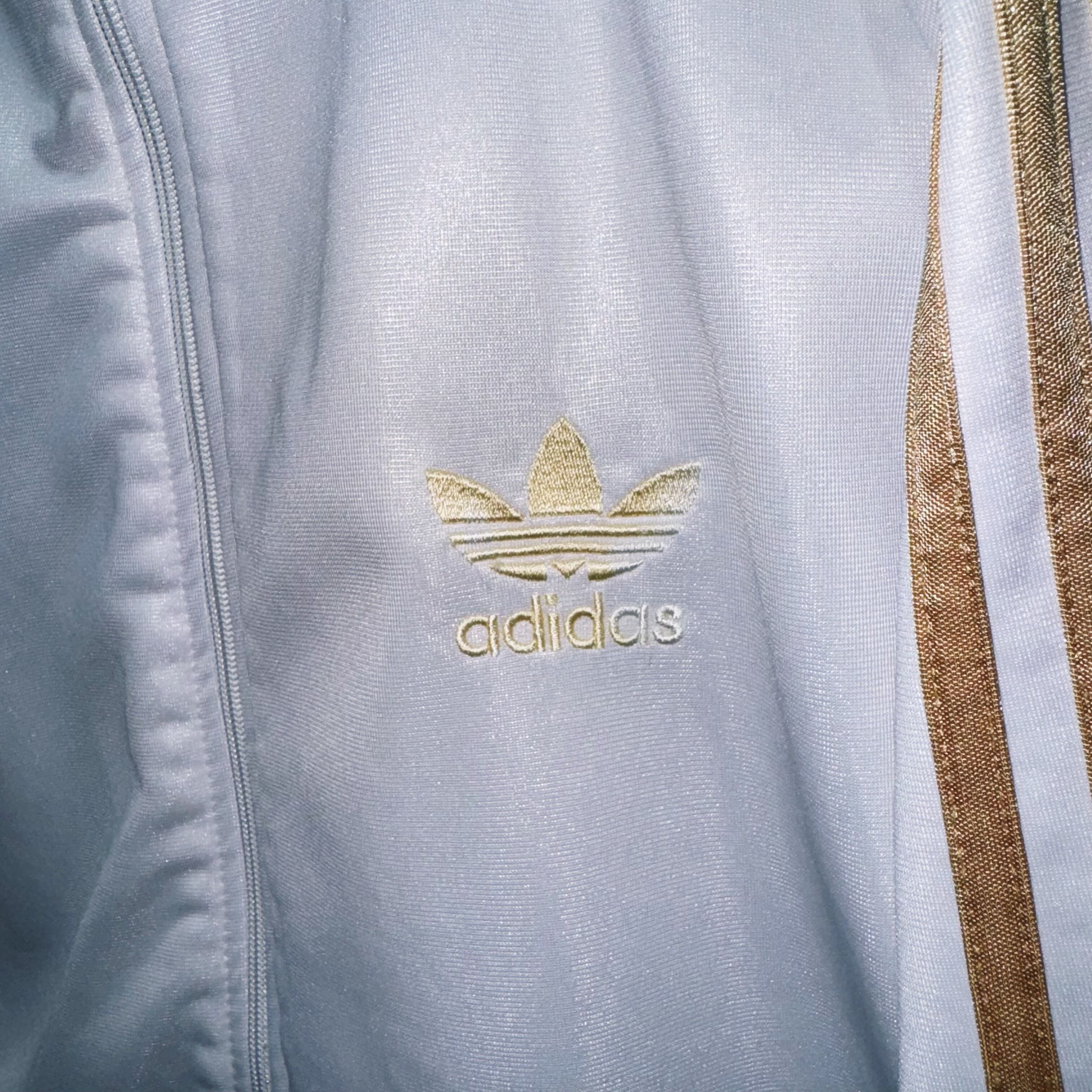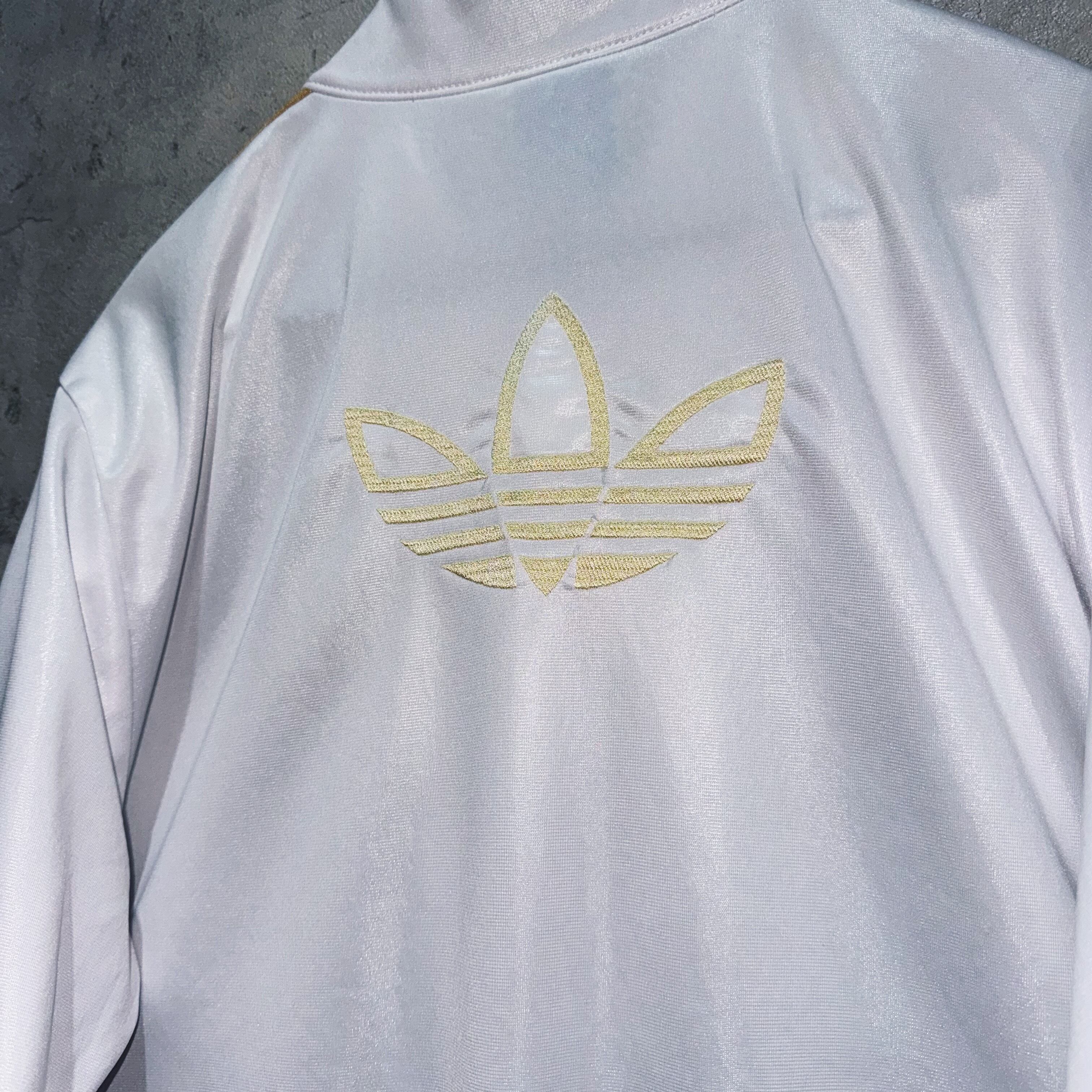フロントの刺繍や”adidas”の象徴でもあるトレフォイル、3ストライプスを高級感のあるゴールドであしらった、現行ではお目にかかれないデザイン。