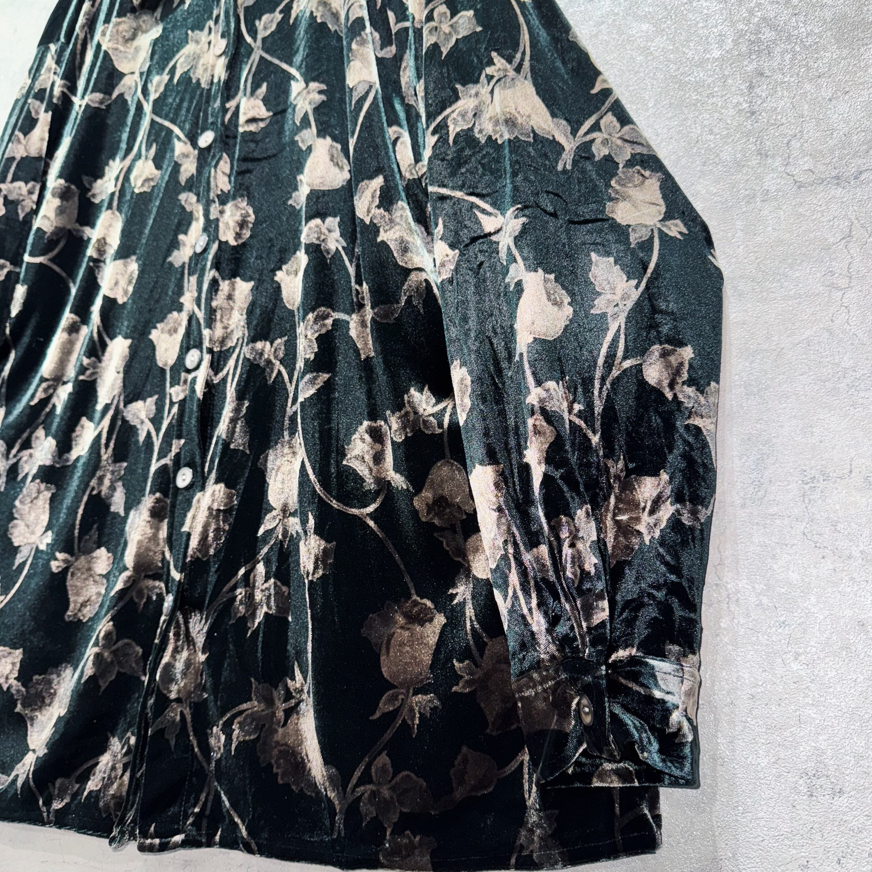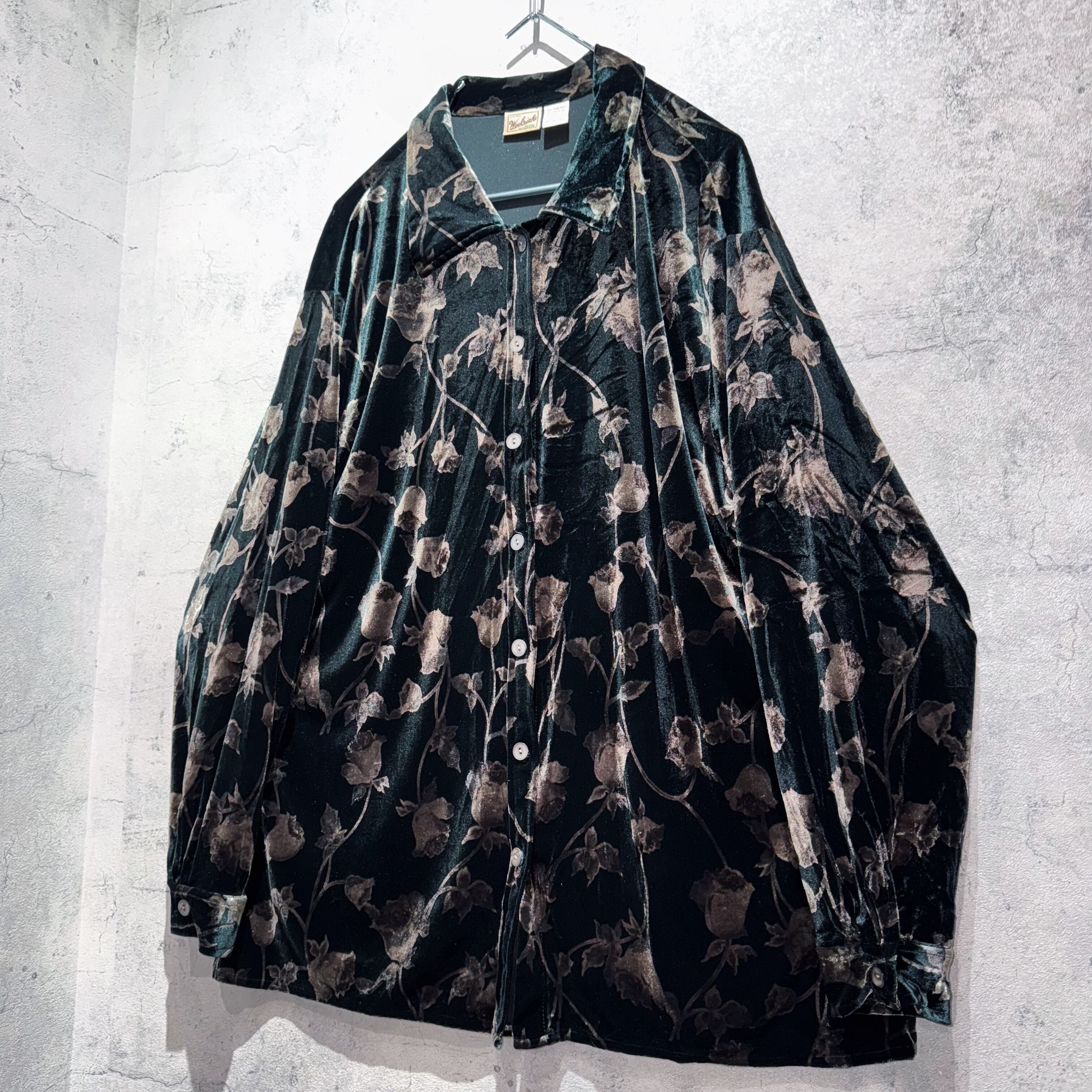 90年代"ウールリッチ"ビューティフルフラワーパターンデザインベルベットマテリアルシャツ