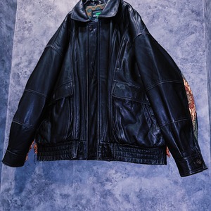 背面には向日葵のラグとアームフリンジのデザインが施されており、リメイクならではの1着。レザージャケットにも初でそしてこのラグも一つという絶対に被らない世界に1着だけという"超"specialなレザージャケット。