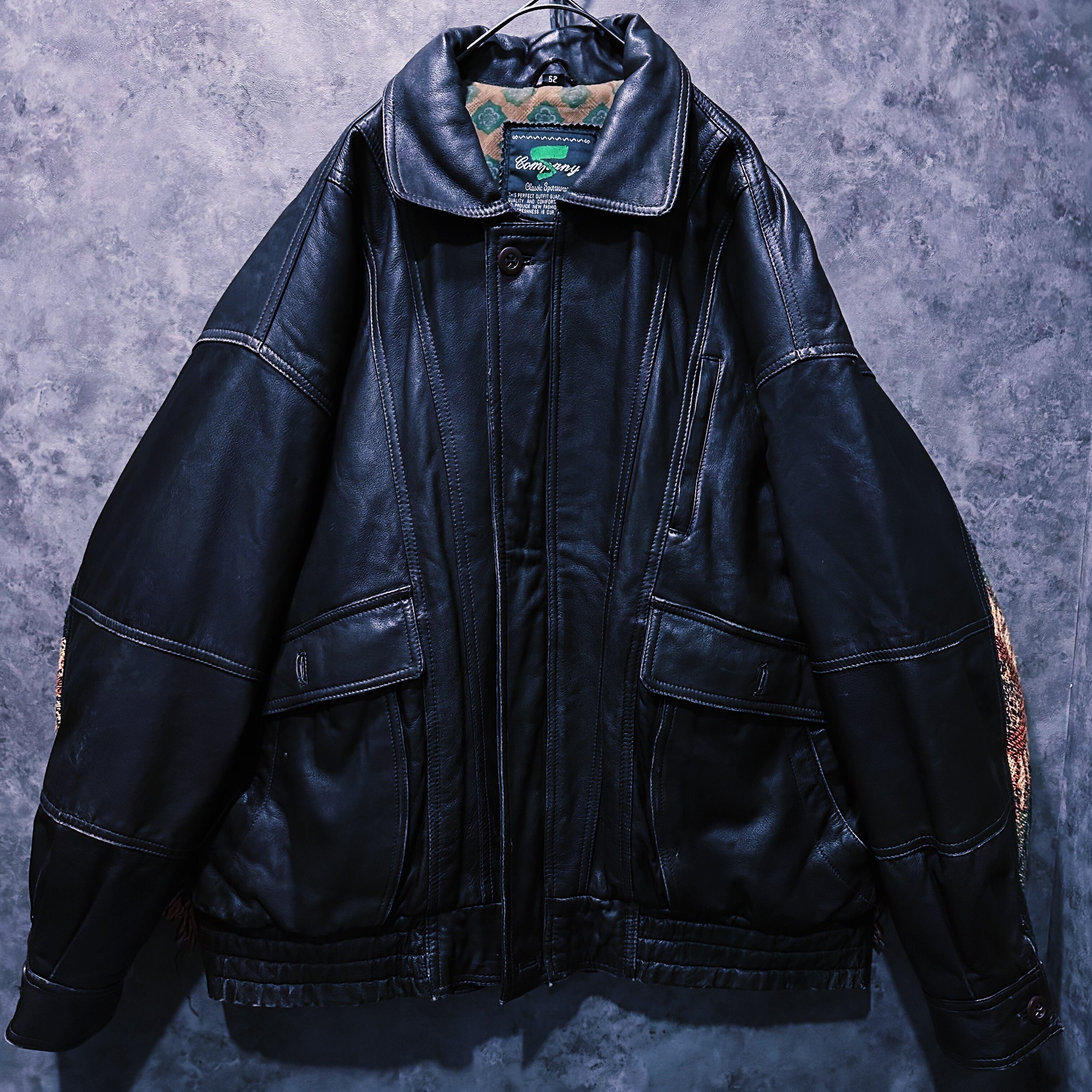 【 doppio】special "original re:make" antique rug × fringe design leather jacket