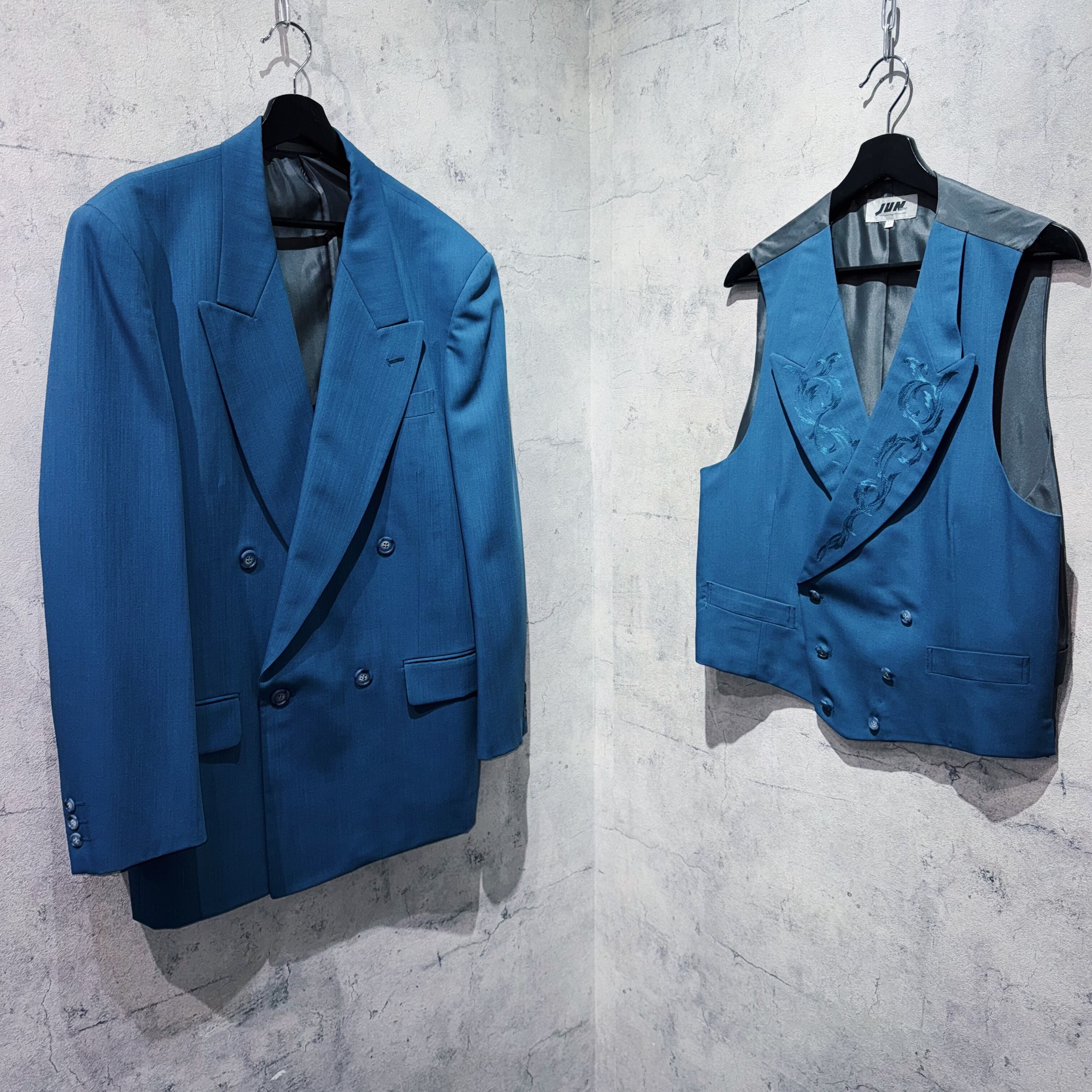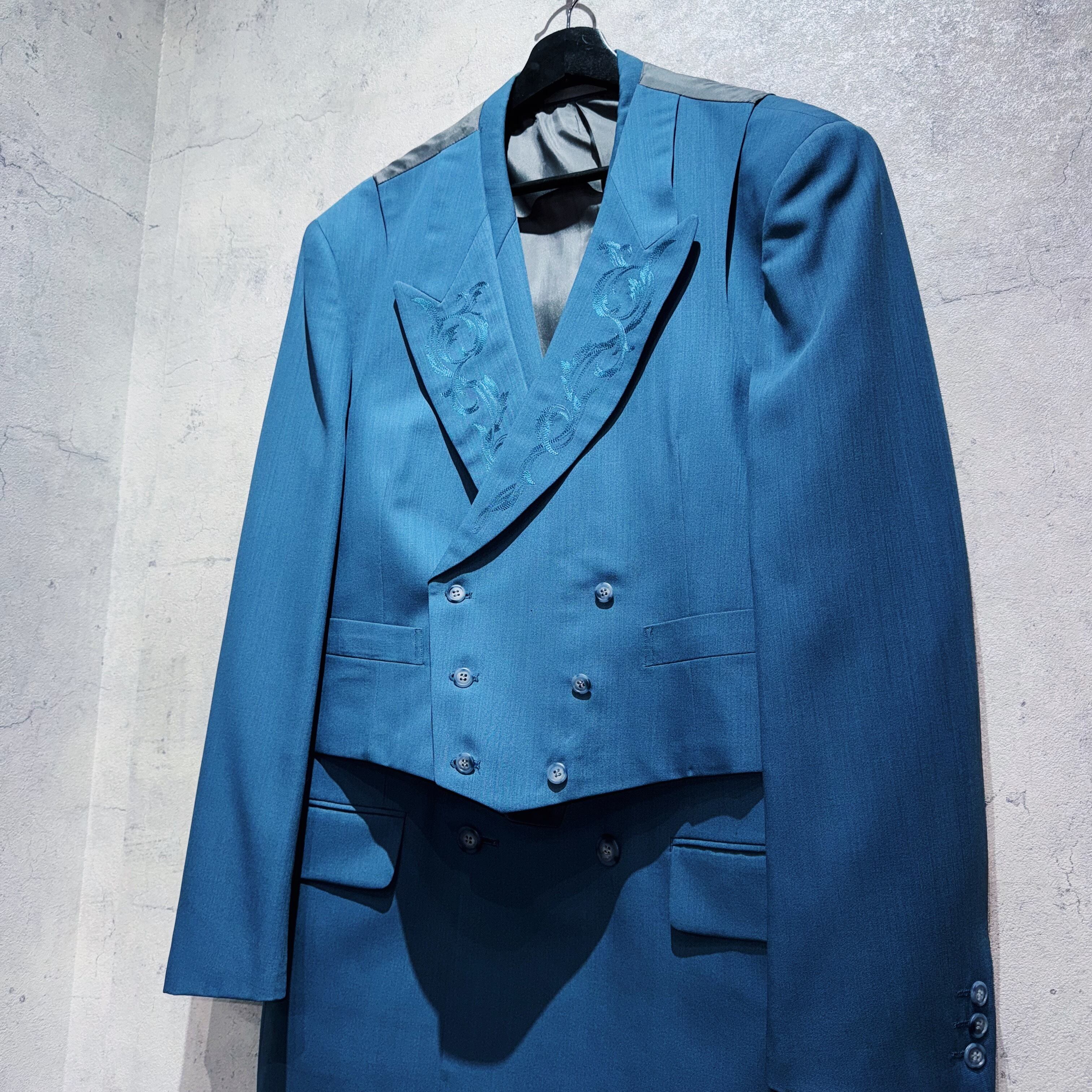 スペシャル90年代スリーピースシアンブルーカラーエンブロイダリーダブルブレストセットアップ