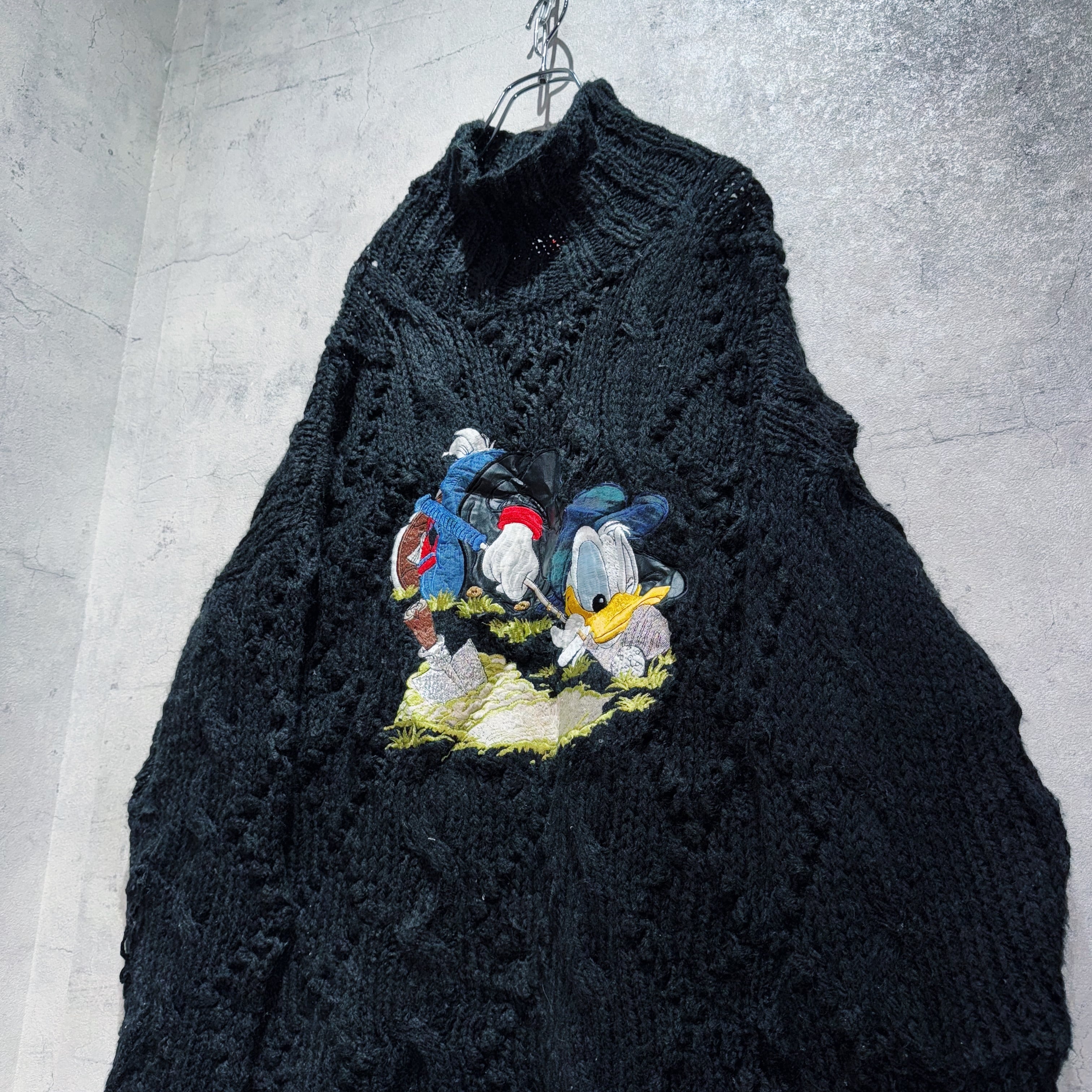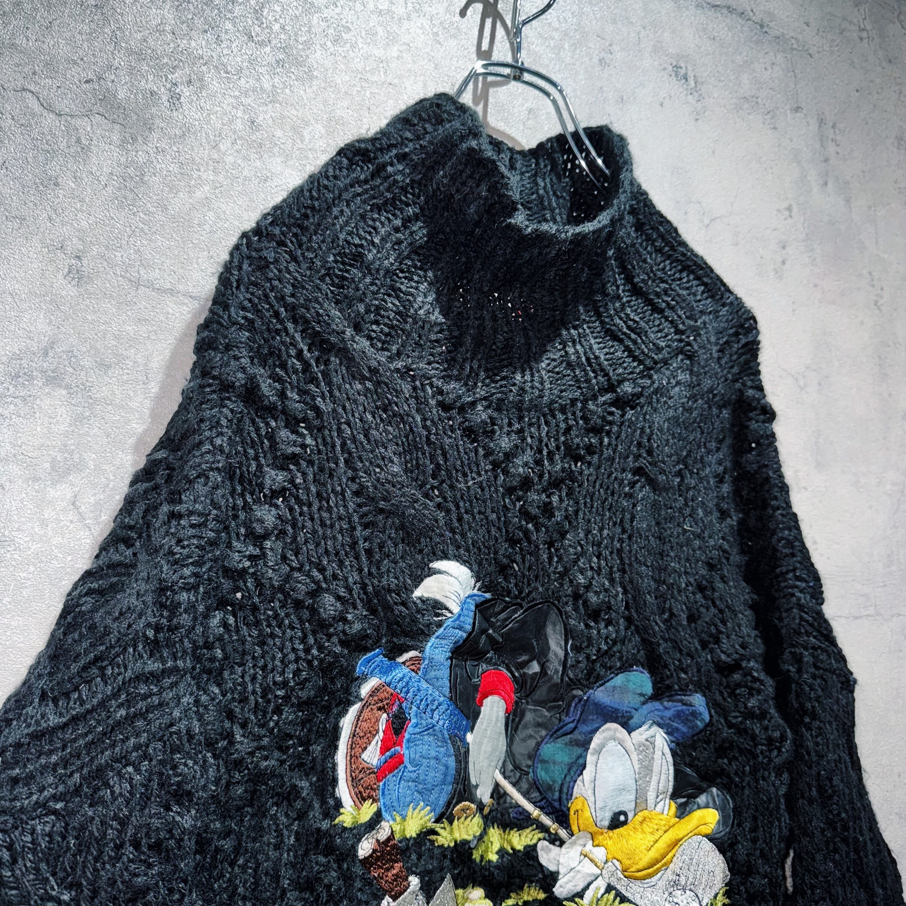 90's"Disney"Donald Duck embroidery design turtle neck knit