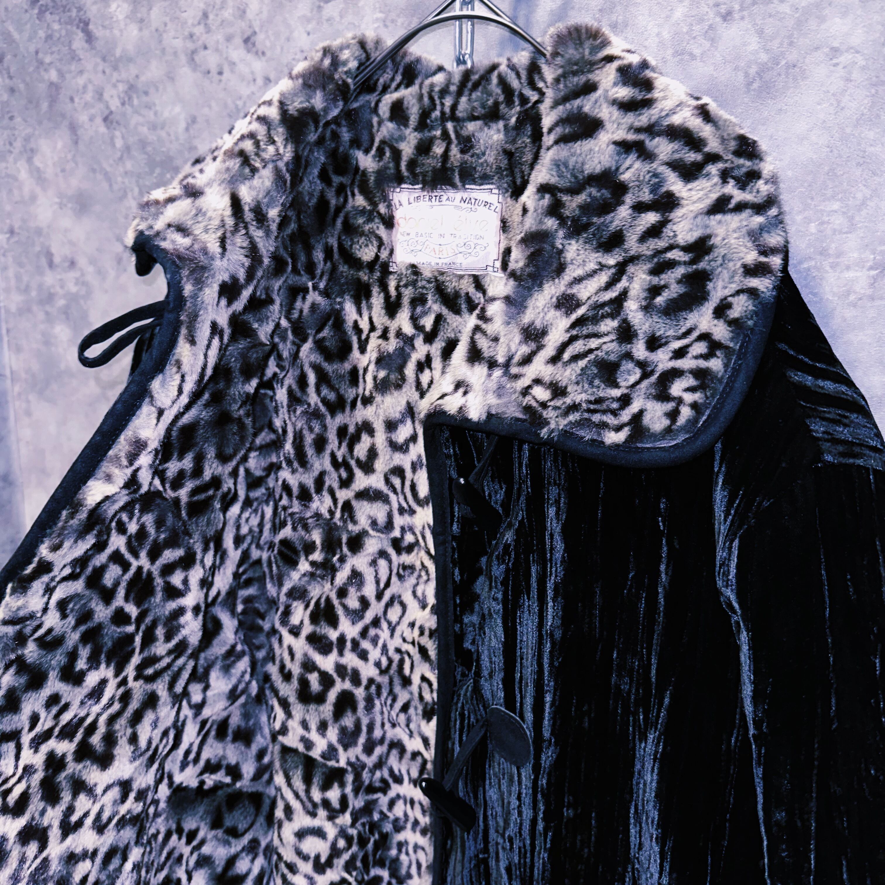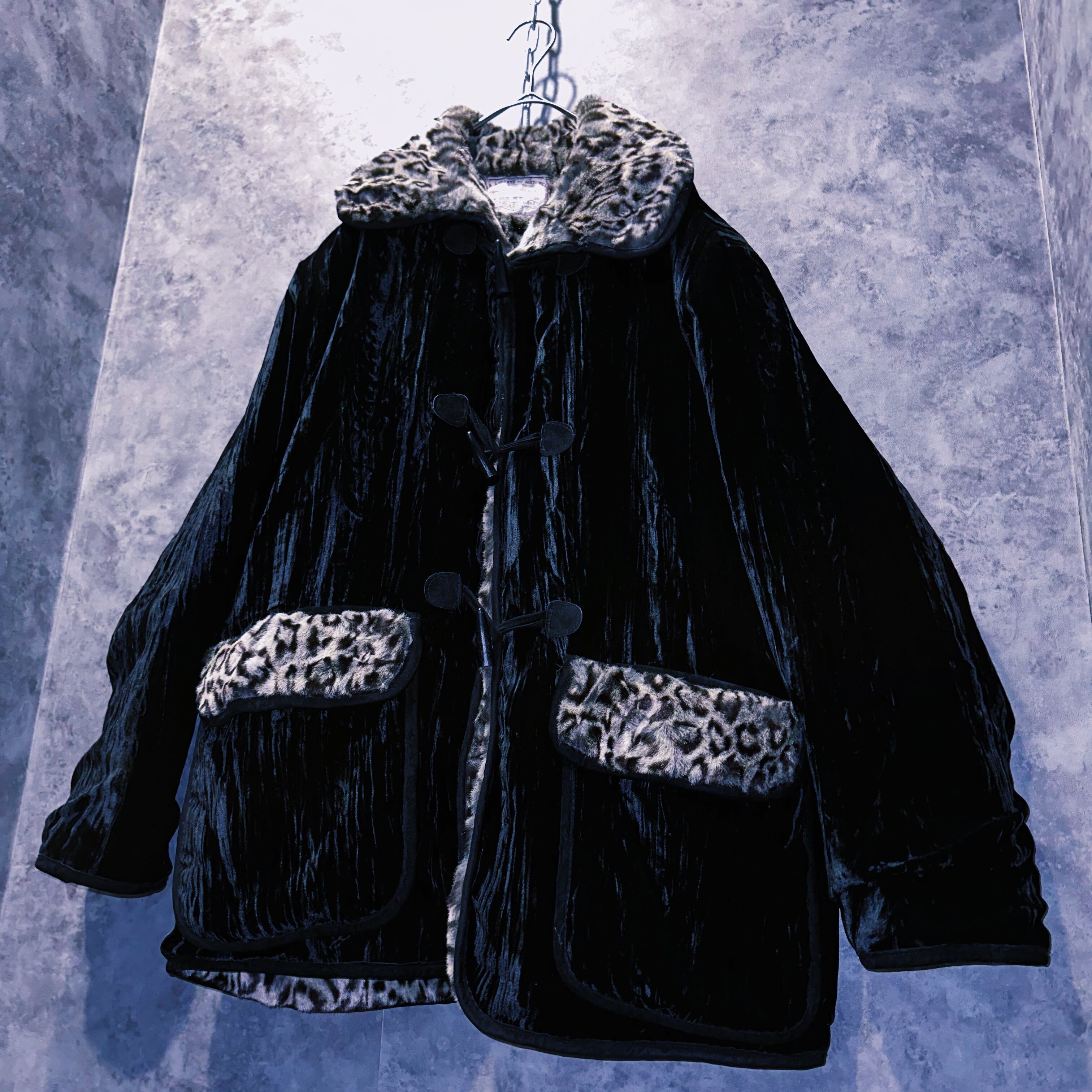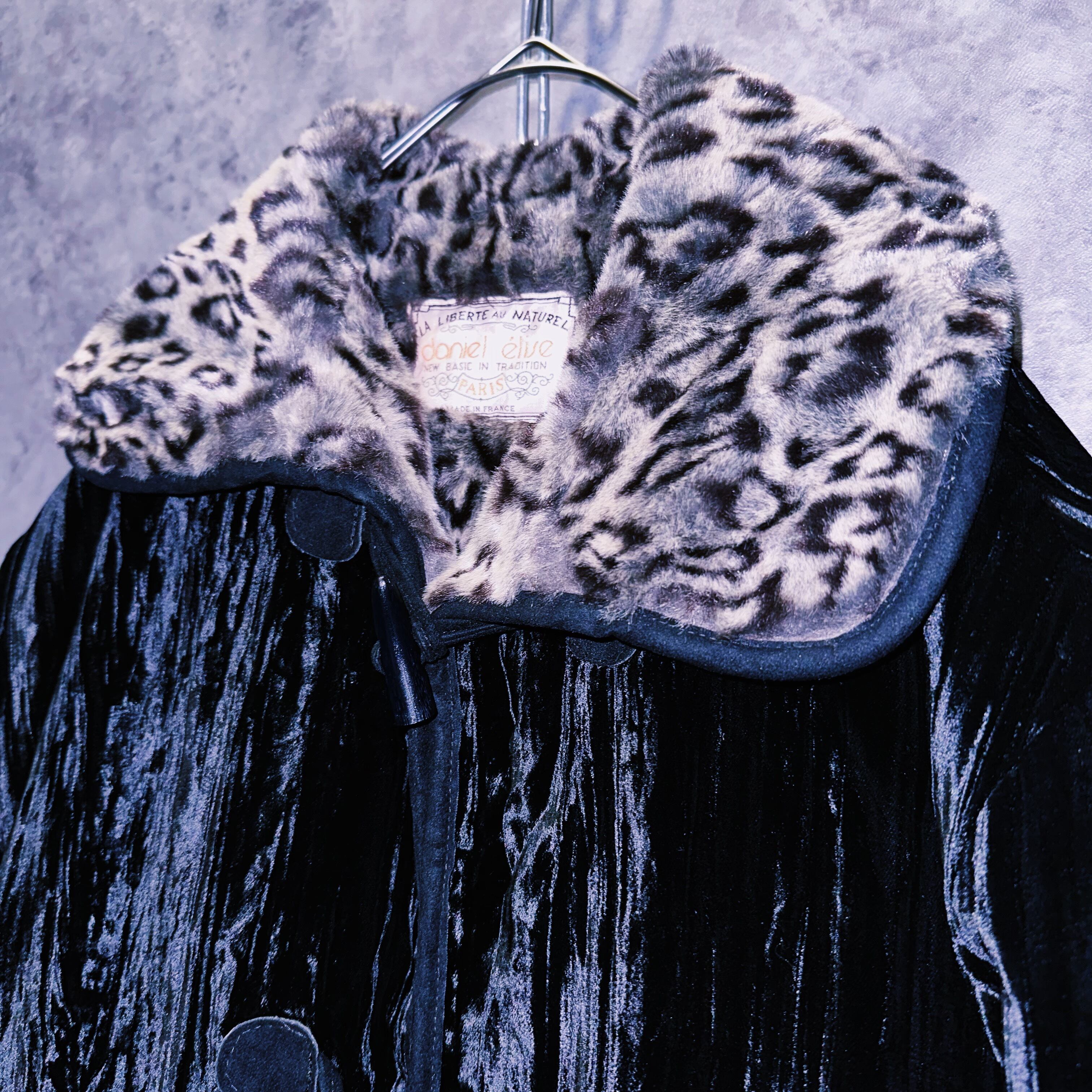 ヴィンテージレオパードパターンスウィッチングデザインベルベットミドルジャケット