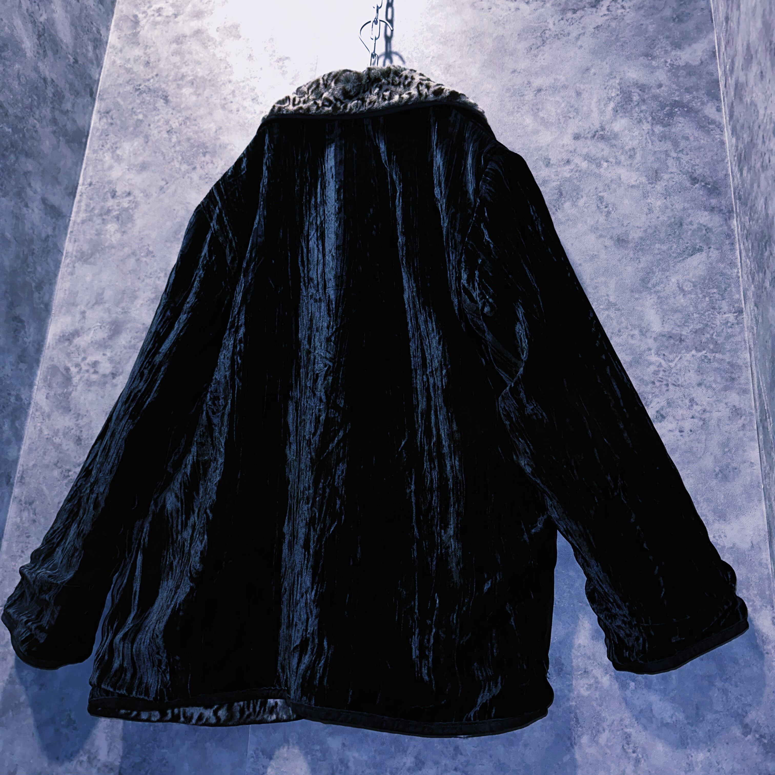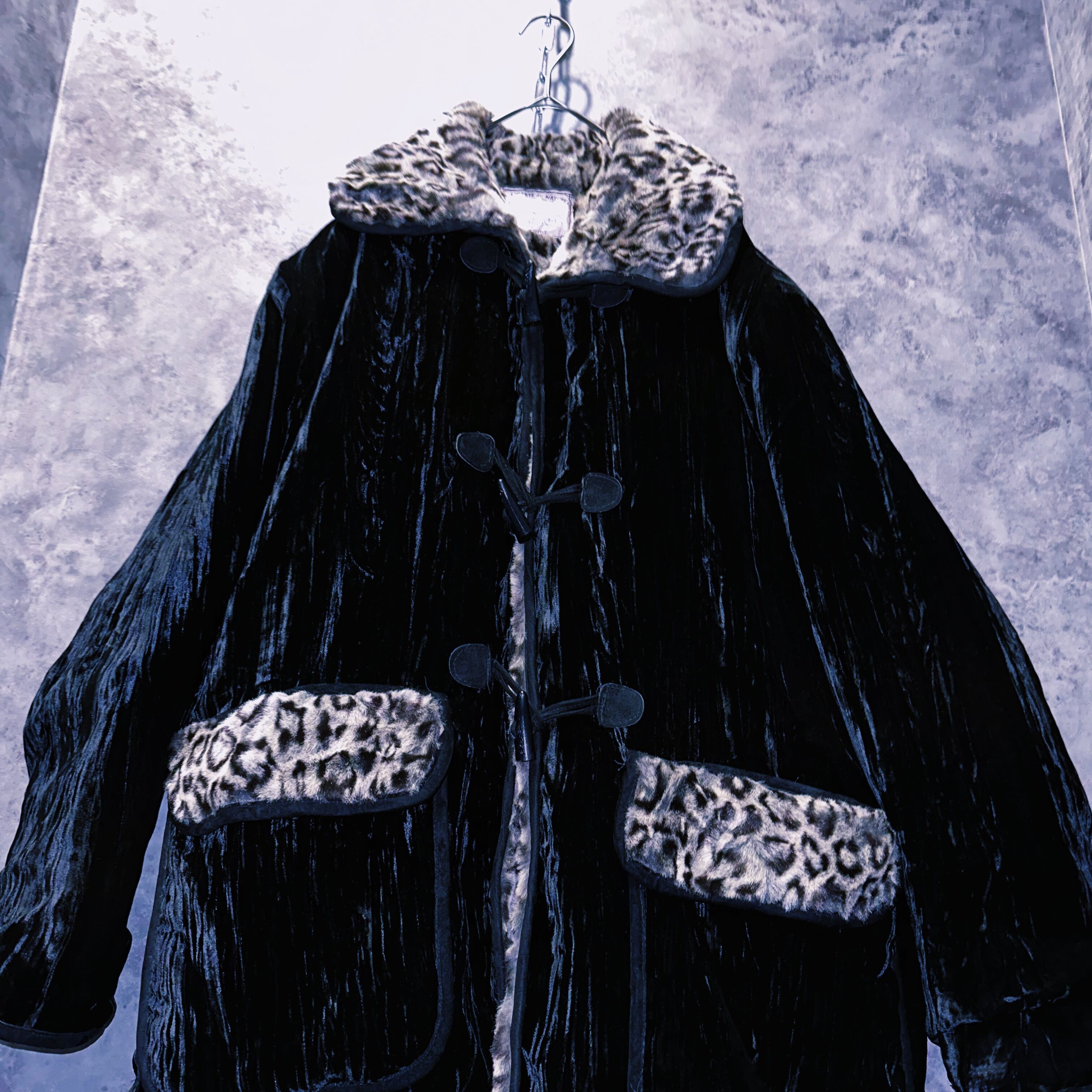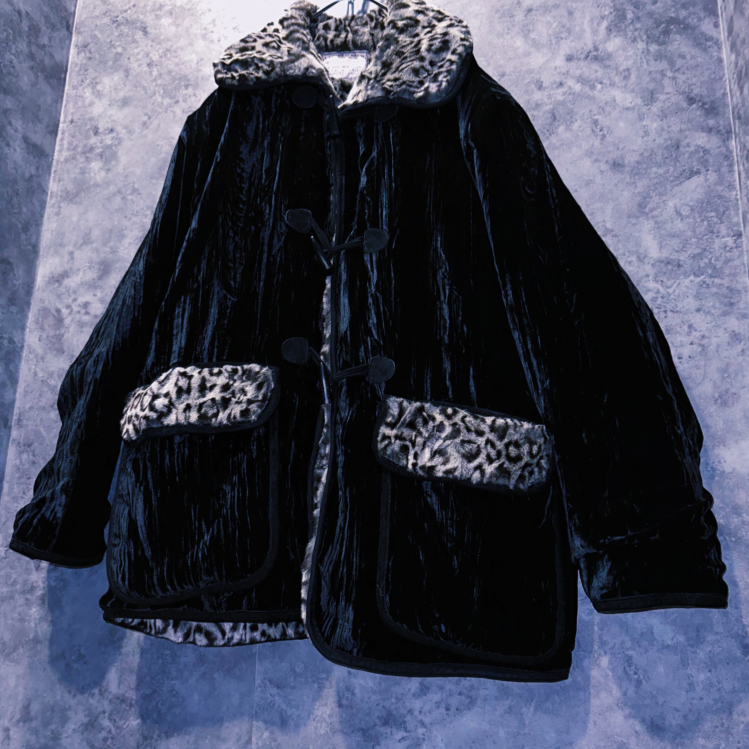 ヴィンテージレオパードパターンスウィッチングデザインベルベットミドルジャケット
