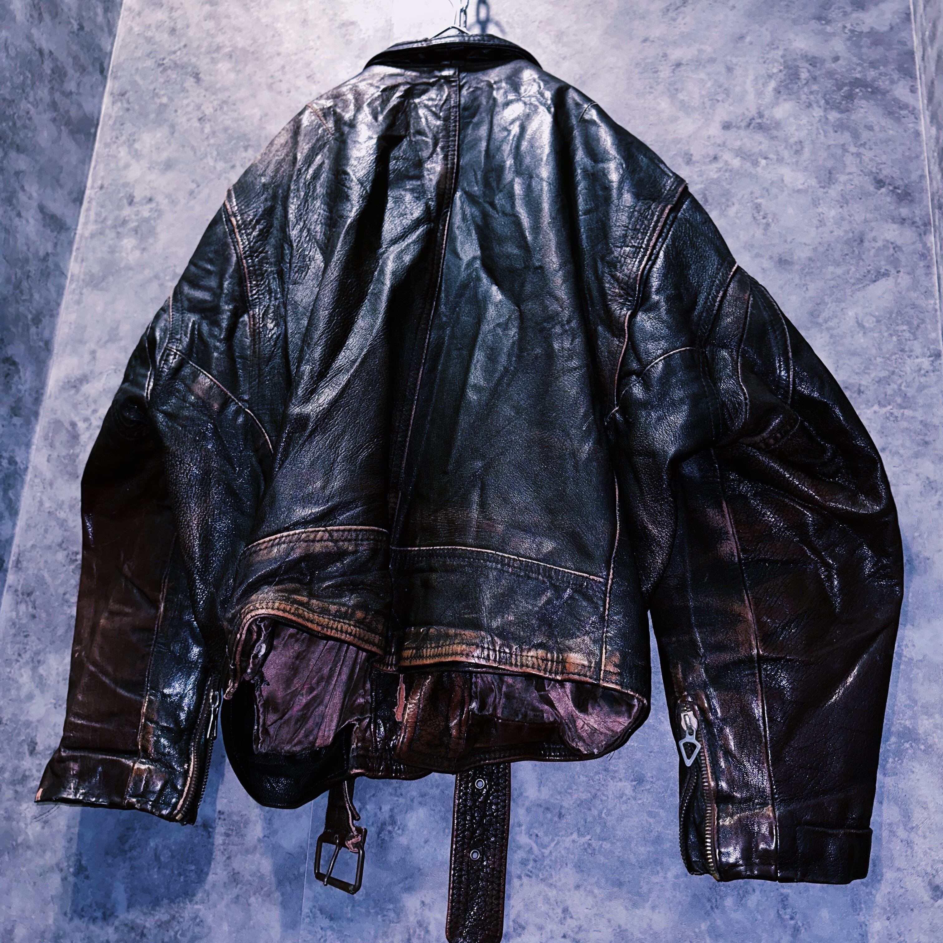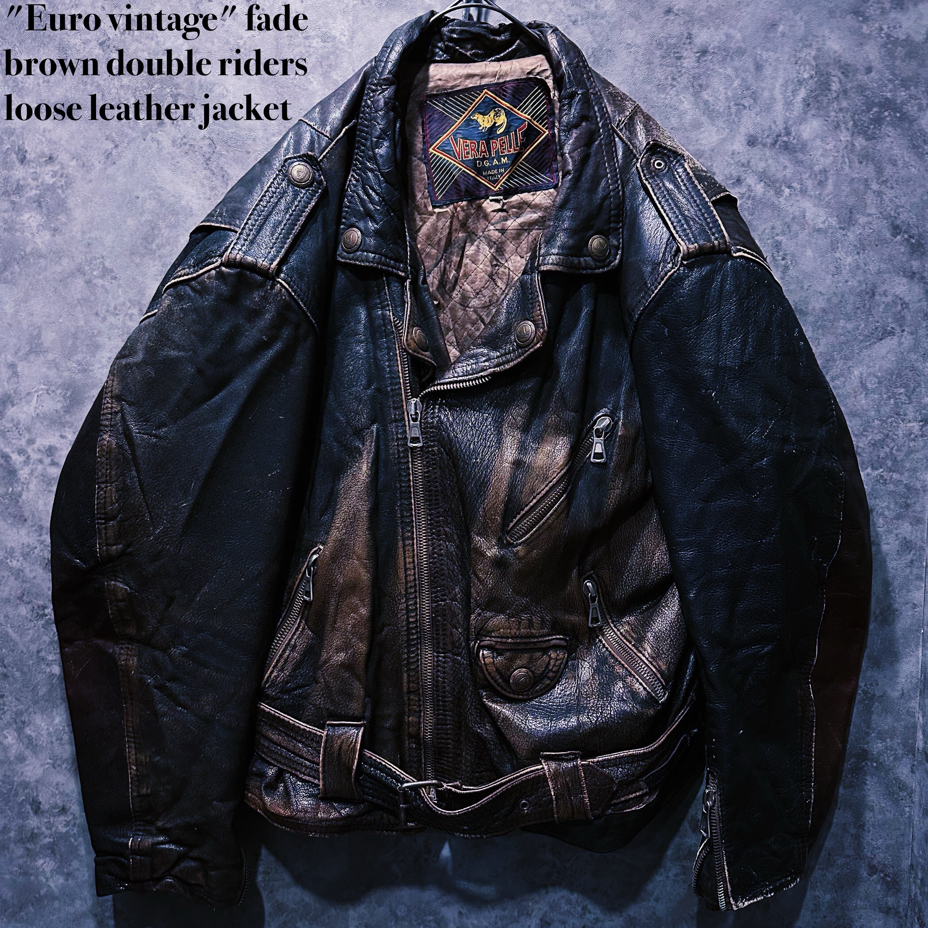 "Euro vintage"フェードブラウンダブルライダースルーズレザージャケット