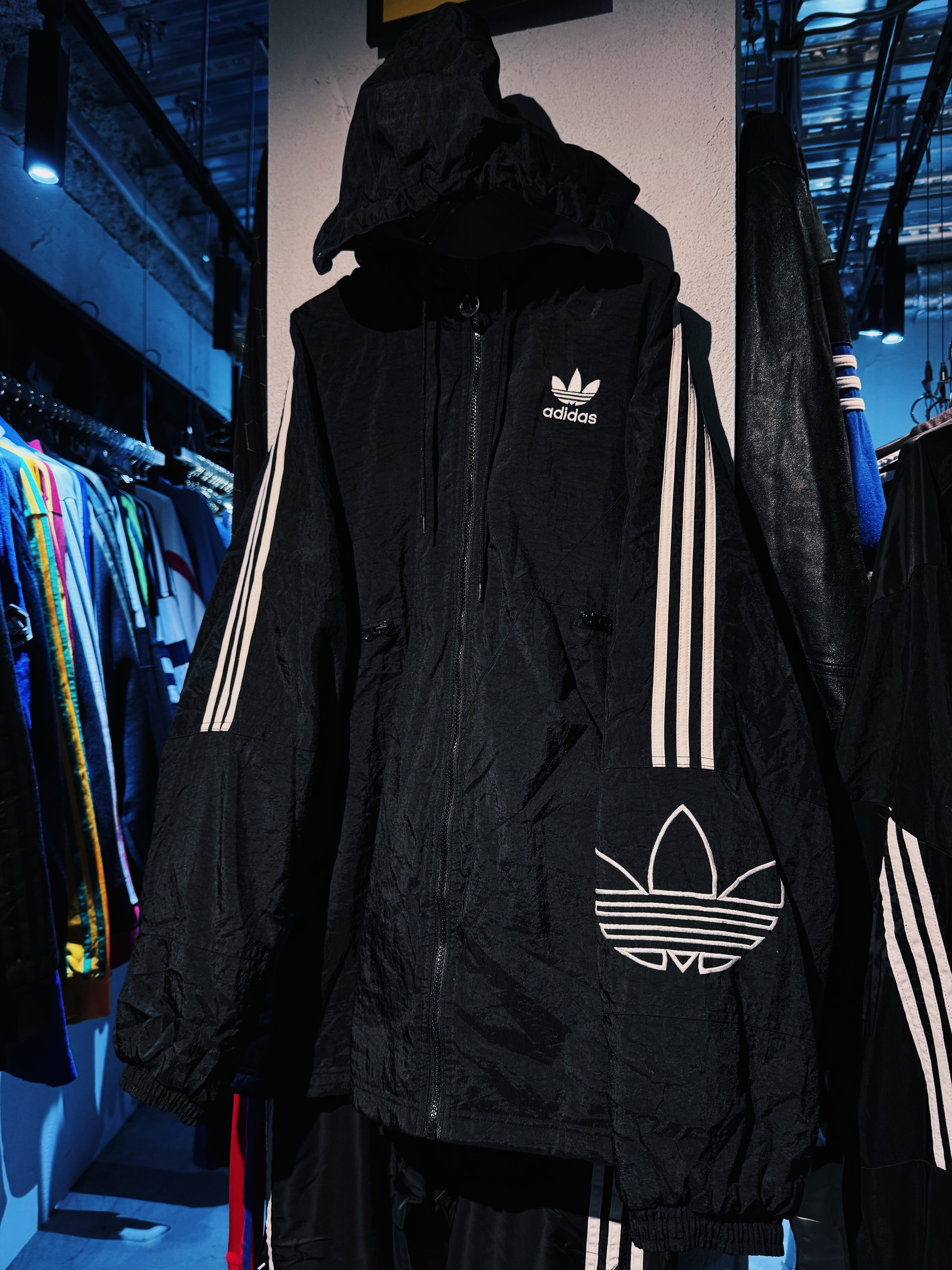 毎度即完が相次ぐフーディータイプのトラックジャケット。今回は中々お目にかかれないジップデザインで、さらに袖元にもトレフォイルロゴが施されているデザインとかなり稀有な一着です。