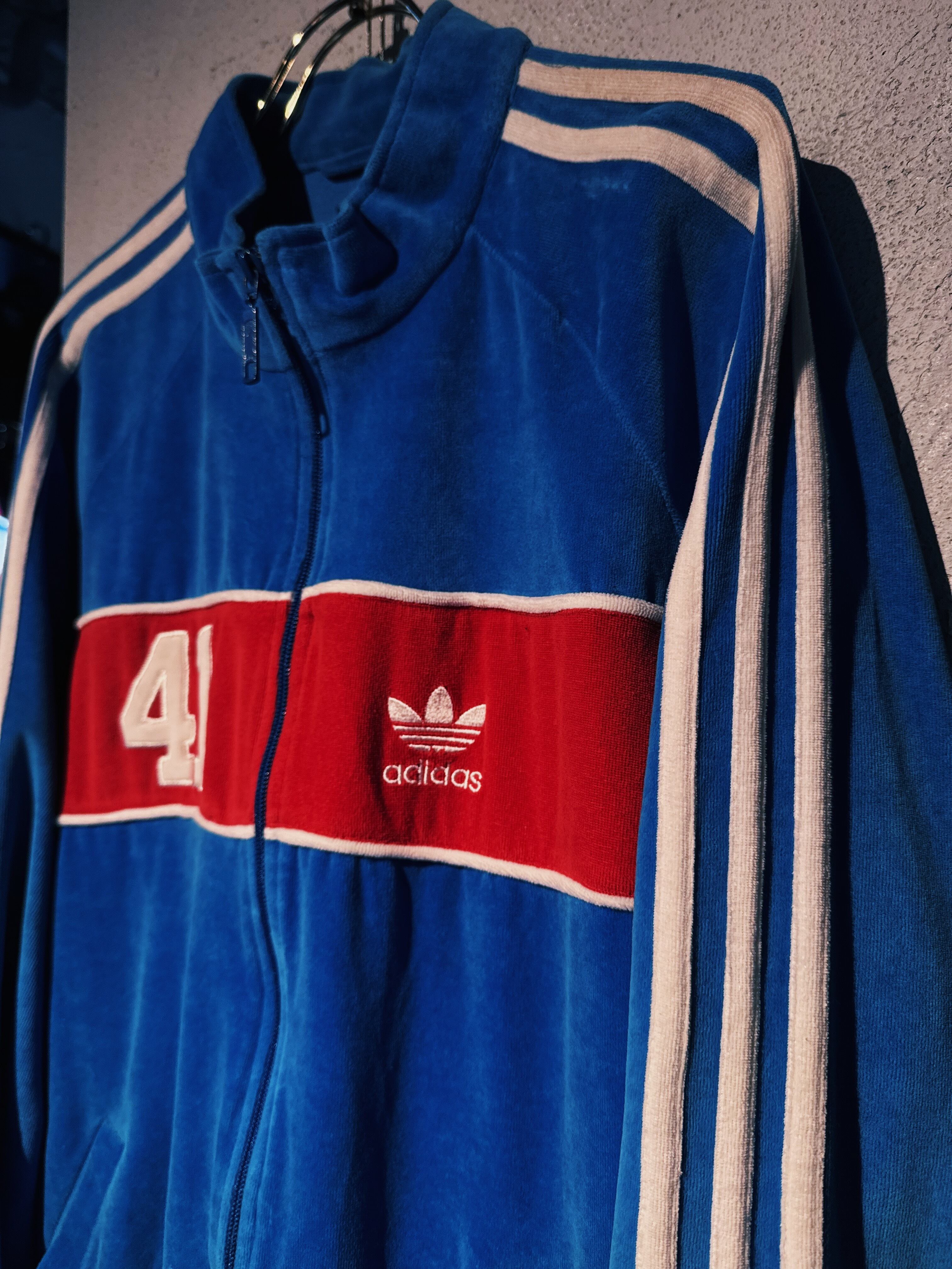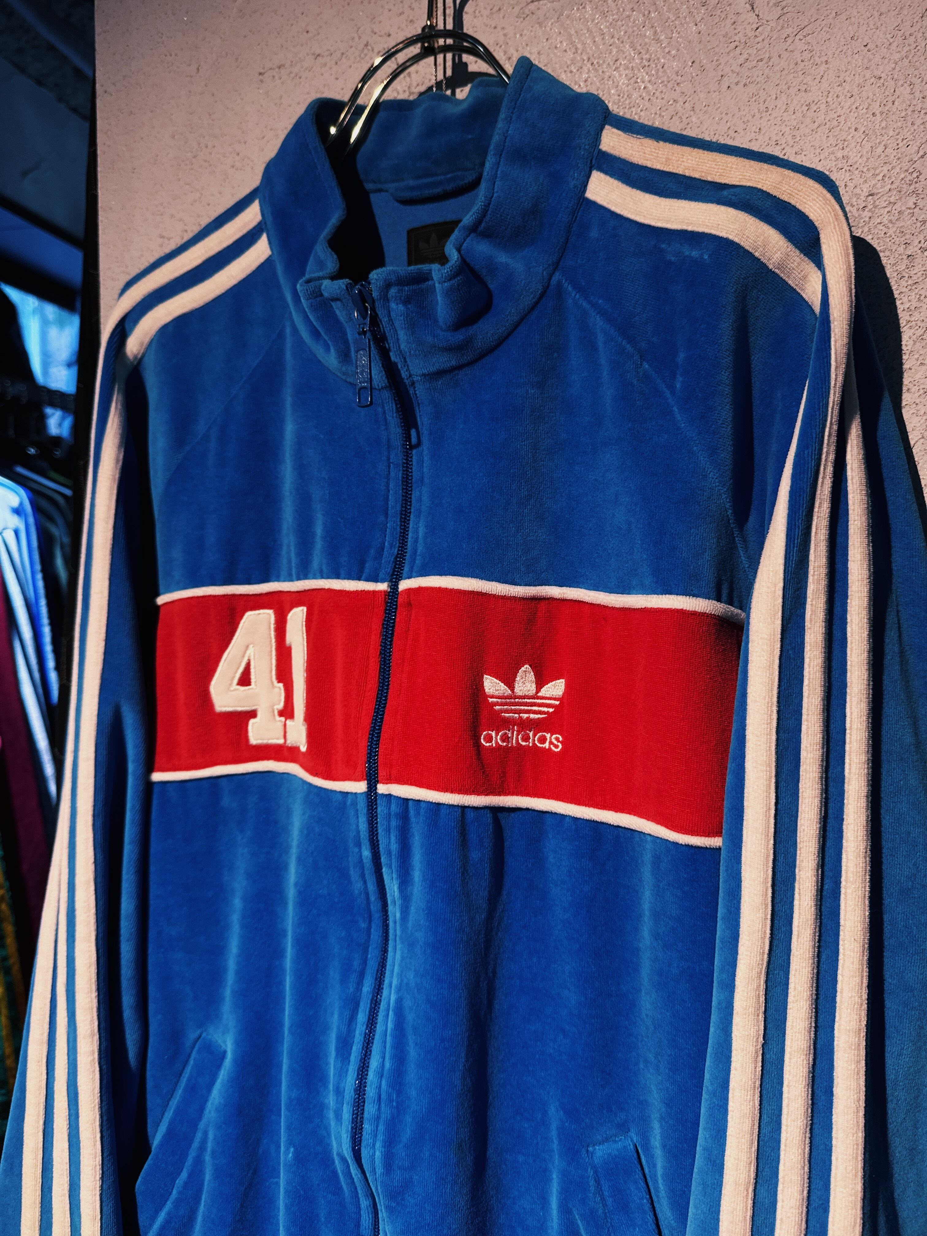 90年代ヴィンテージ"ADIDAS"3ストライプススイッチングデザインベロアマテリアルトラックジャケット