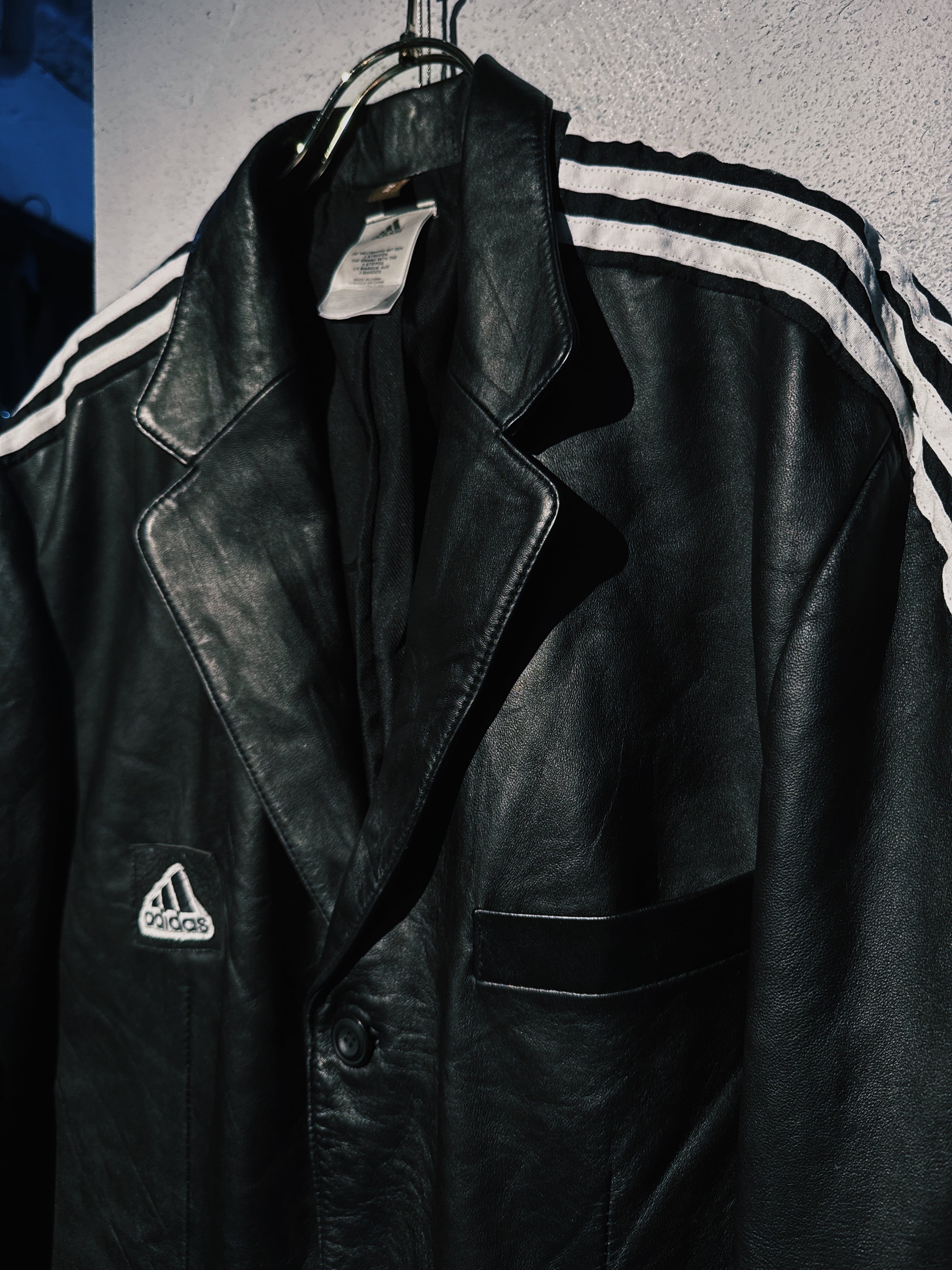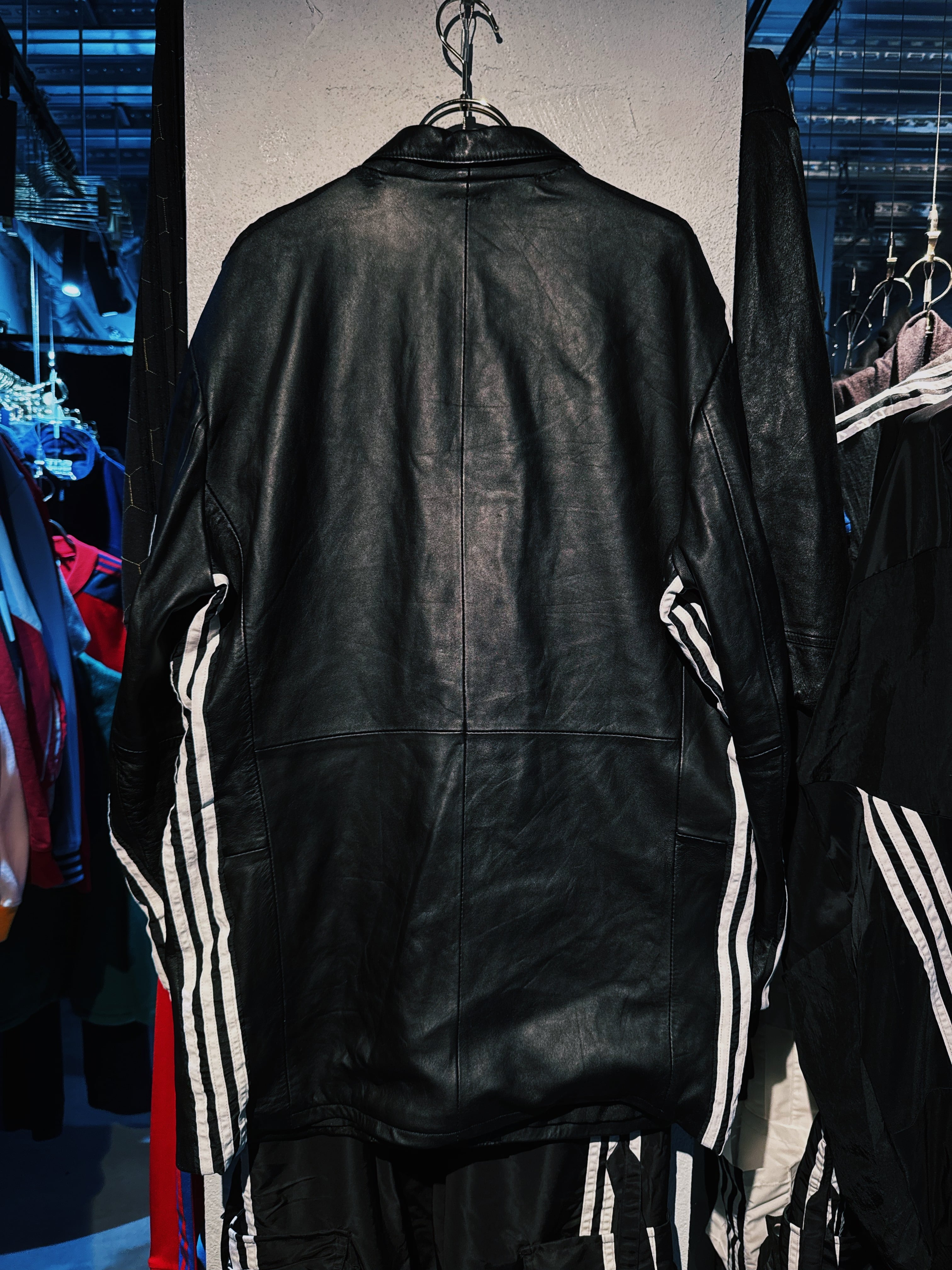 special "original re:make" three stripe design vintage leather jacket three stripe edition