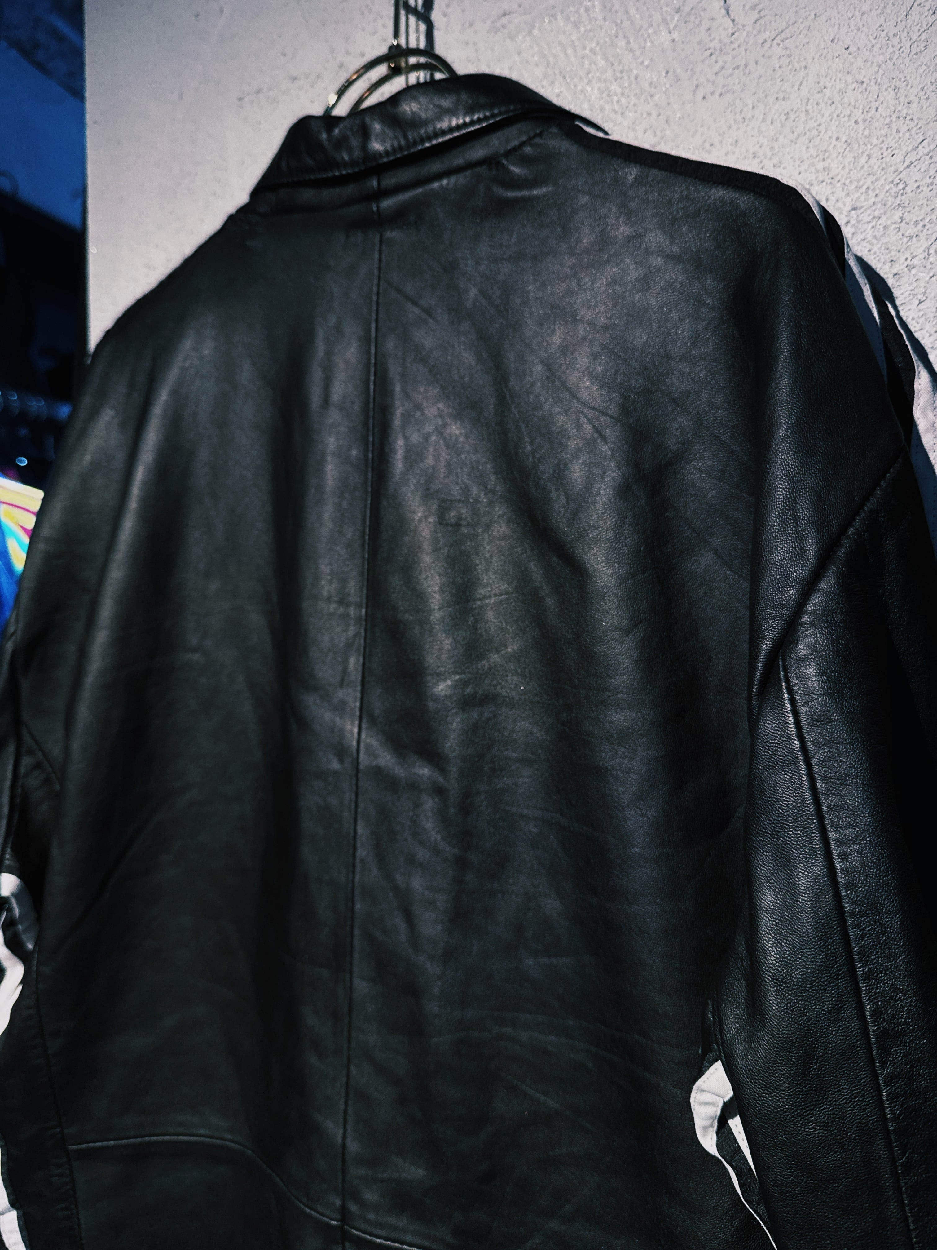 オールブラックで合わせてもよし、ルーズなシルエット感なので90'sポップスタイルなヴィンテージライクなファッションに落とし込んでだりロックな雰囲気をそのまま活かしクールなスタイルなんて最高にかっこいいこと間違いなしの全てのジャンルにもハマる事のできる史上最高のレザージャケット。