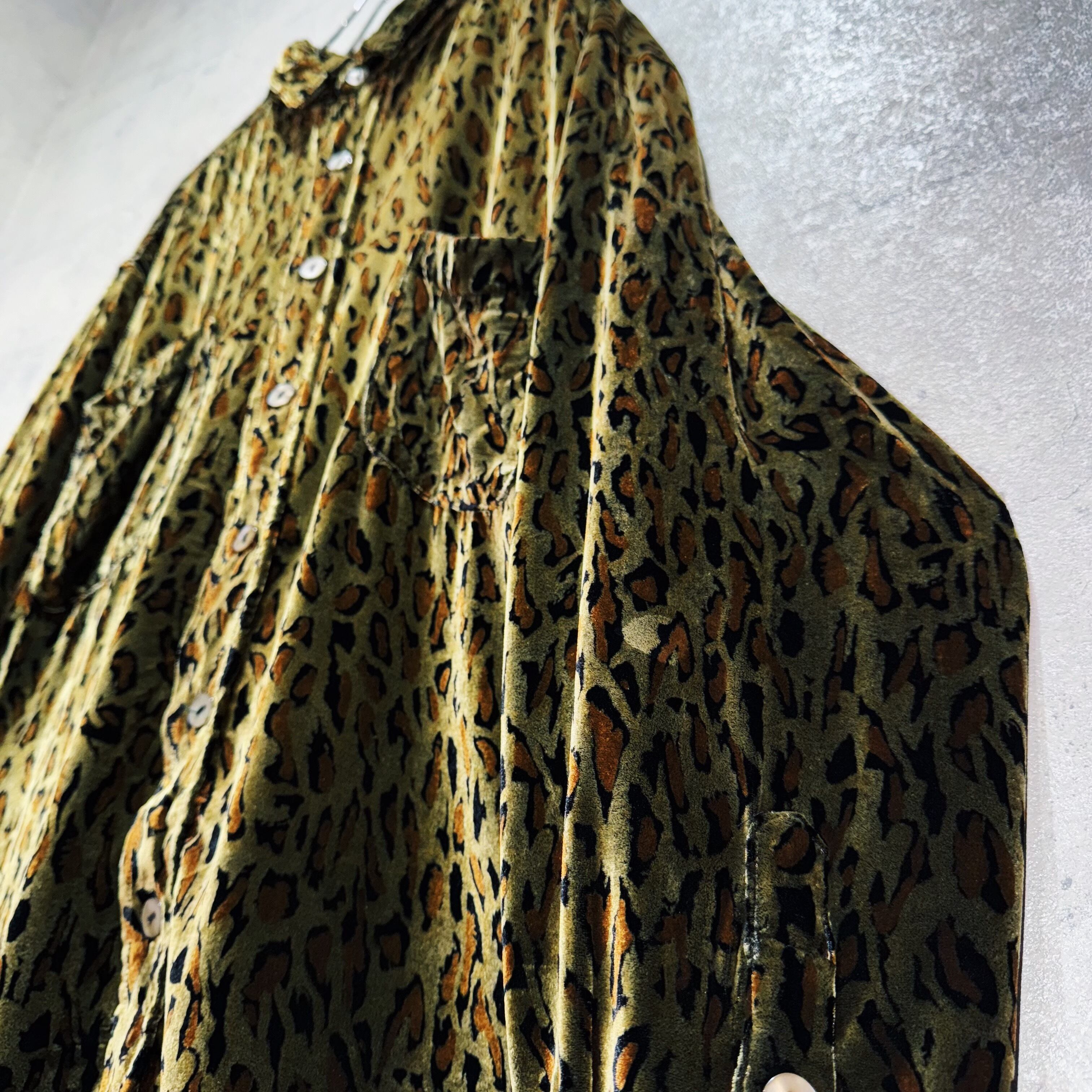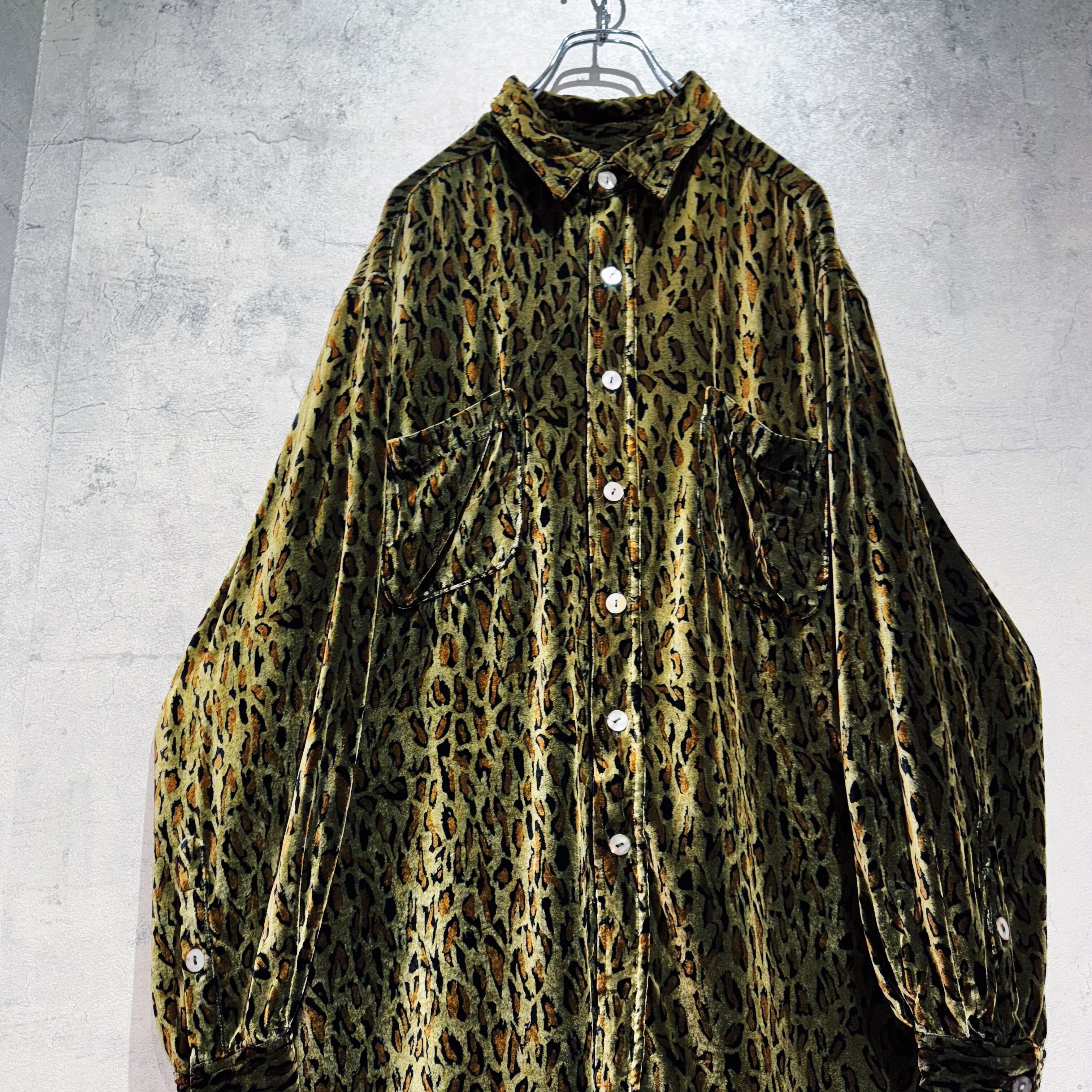 ”デッドストック”ベルベットマテリアルレオパードパターンデザインシャツ