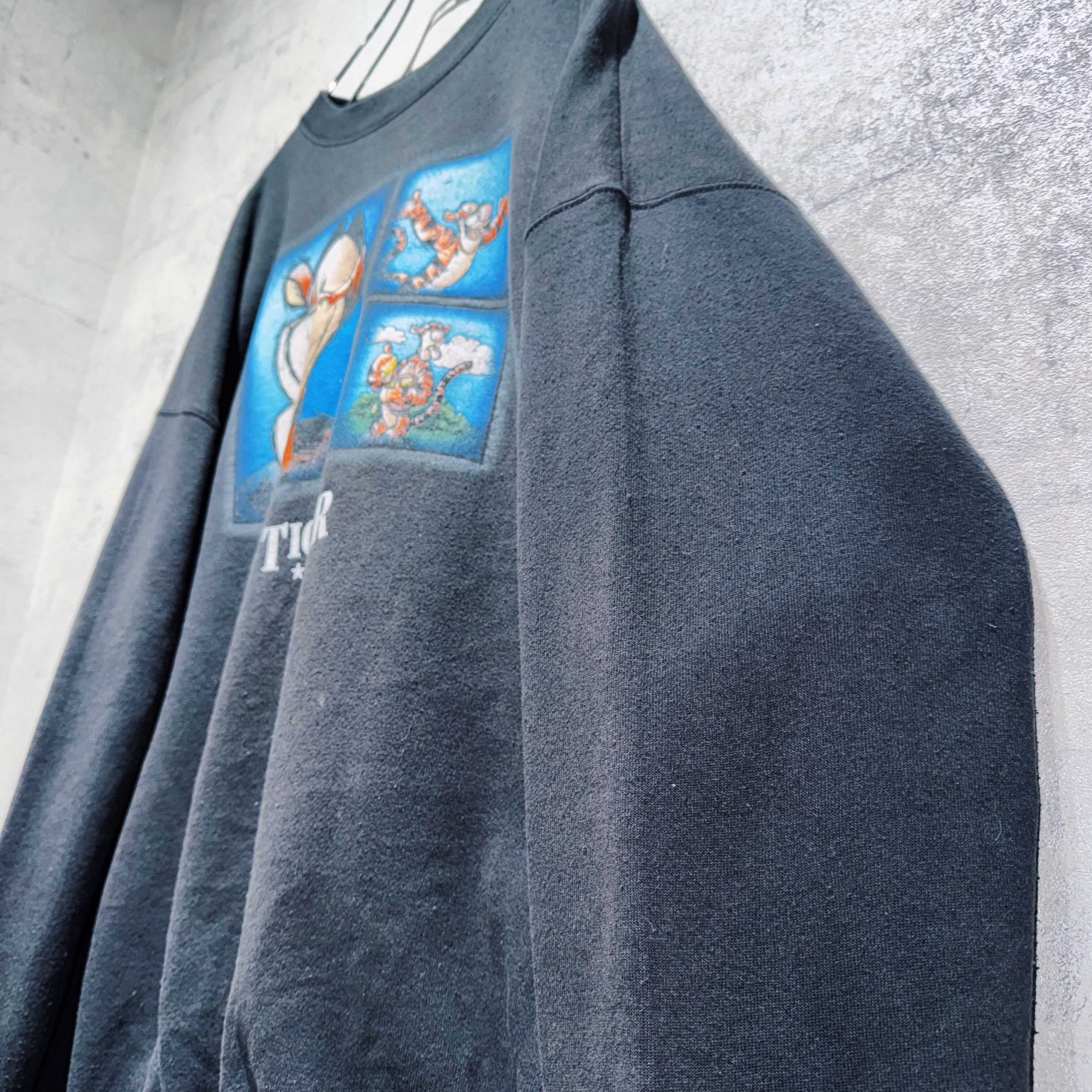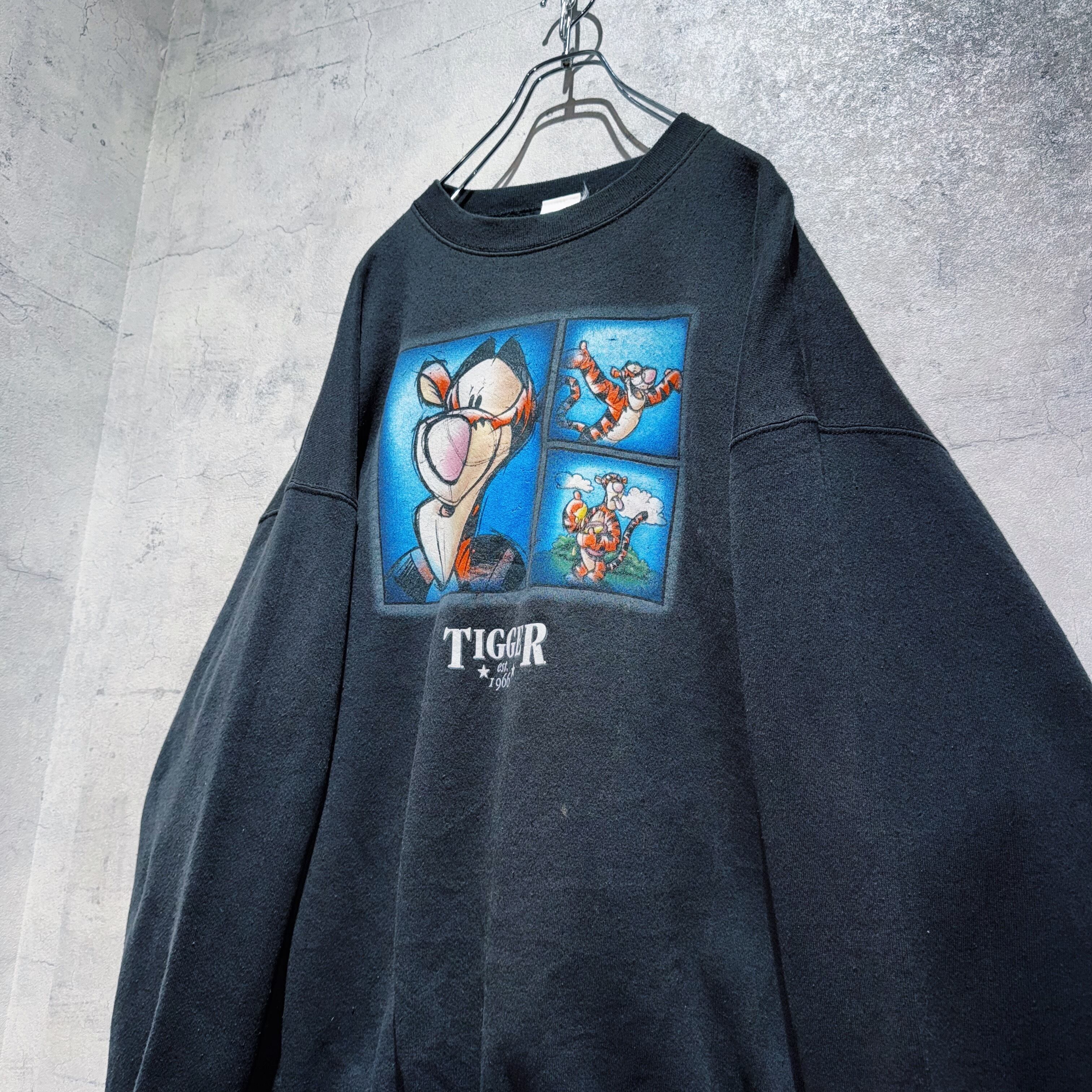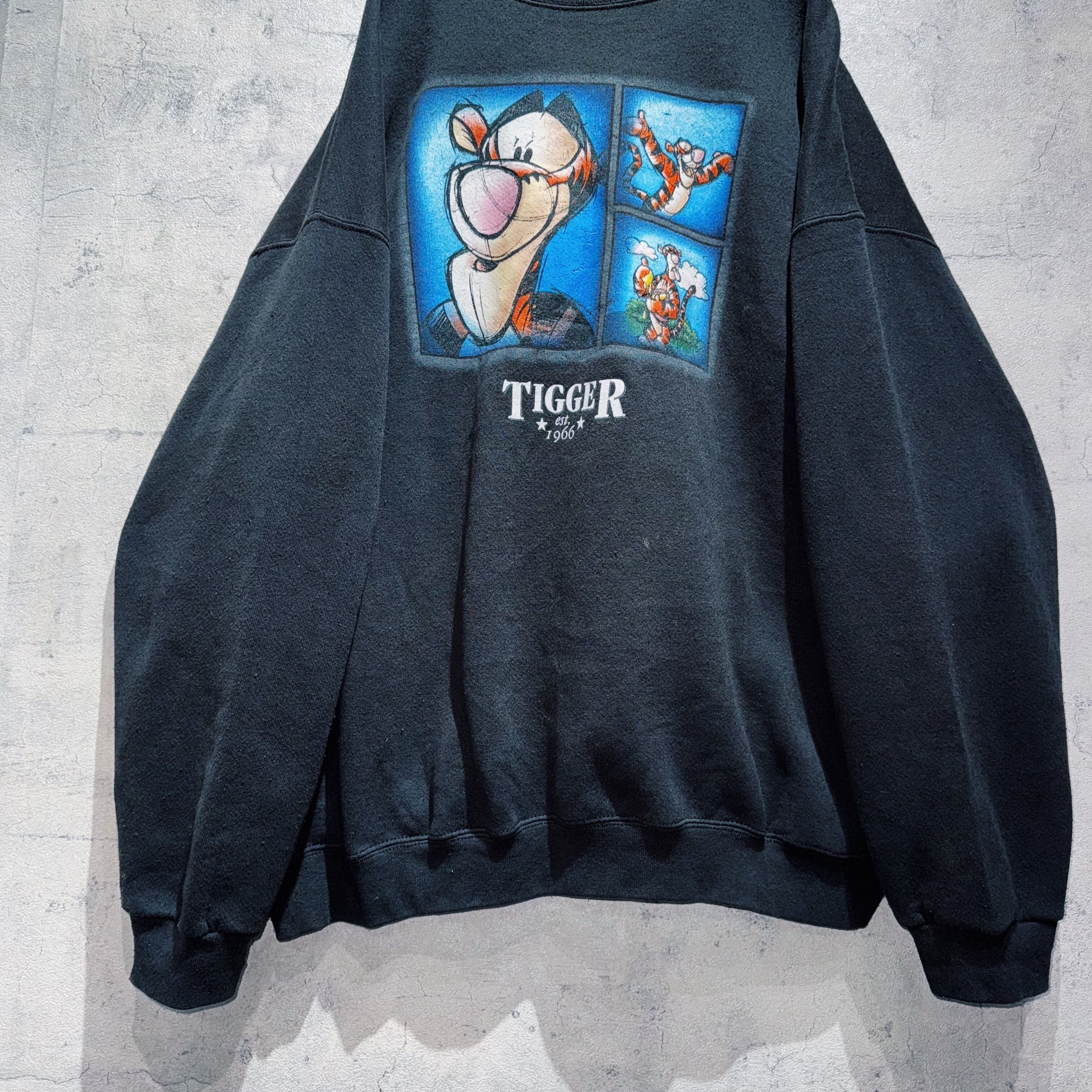 90年台"ディズニー"ティガーイラストレーションプリントデザインプルオーバースウェット